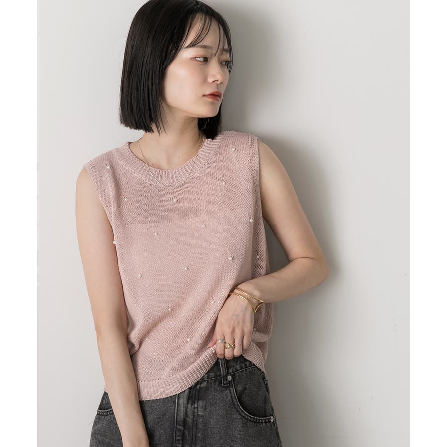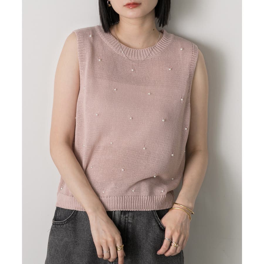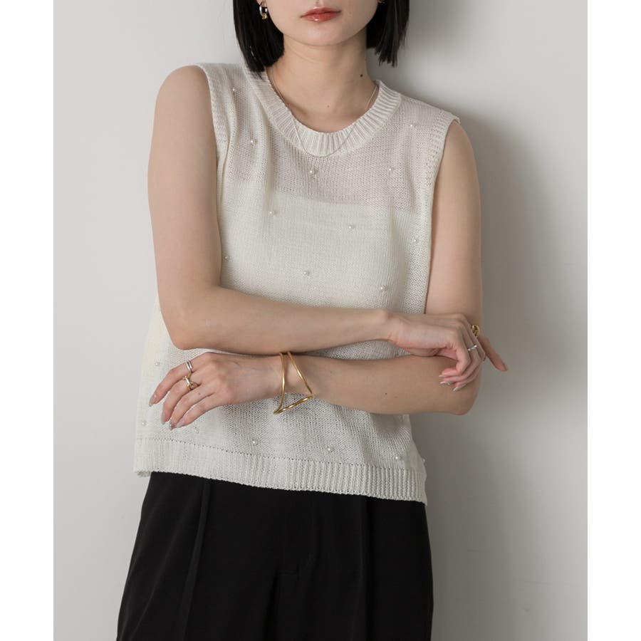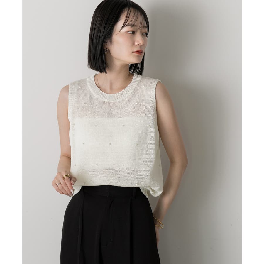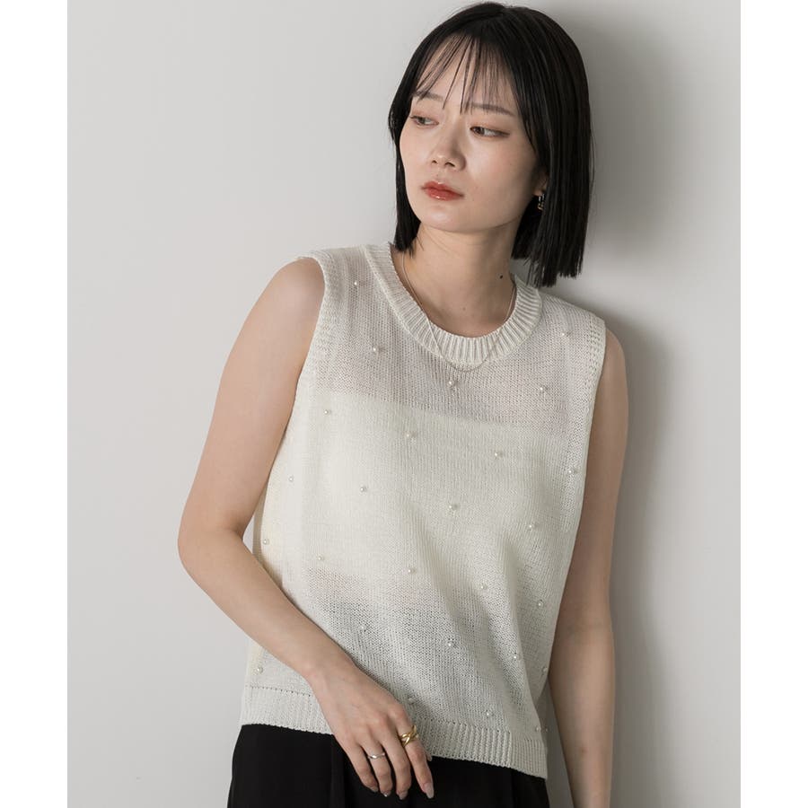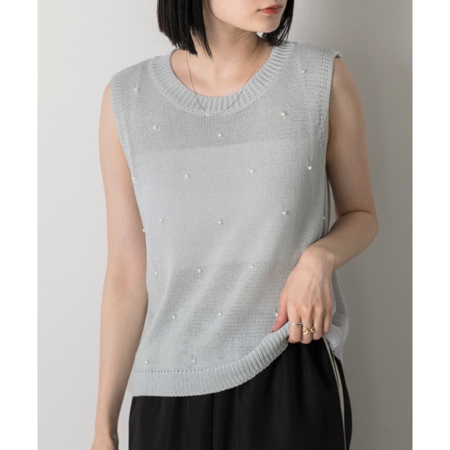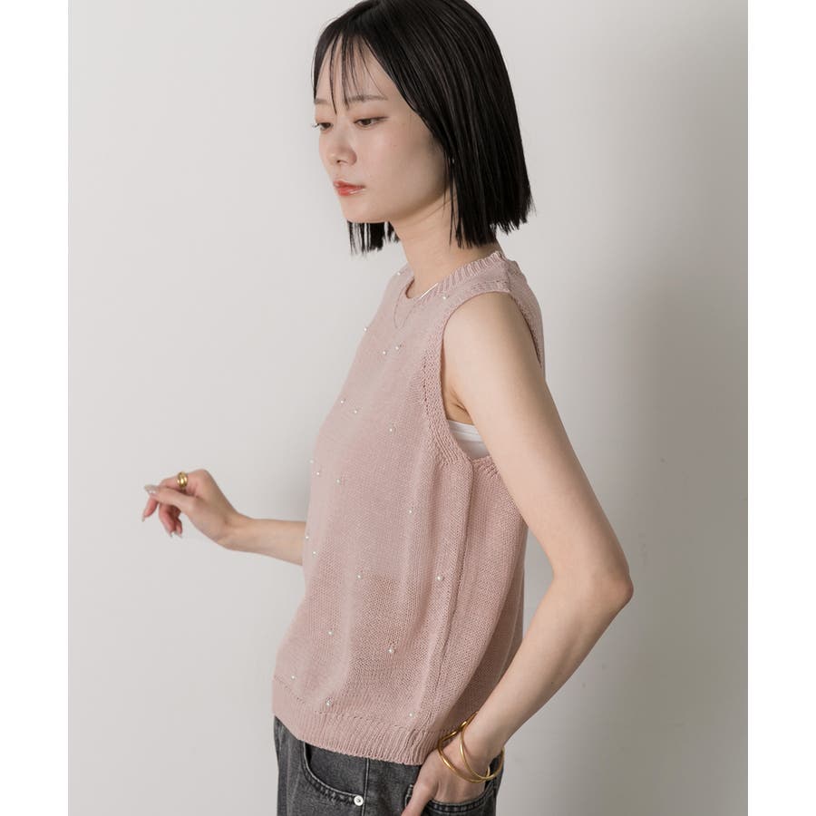 パール付き ノースリーブニット
