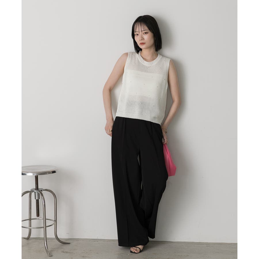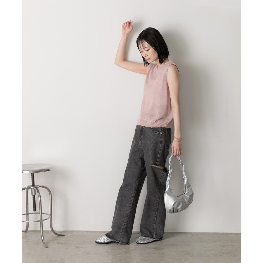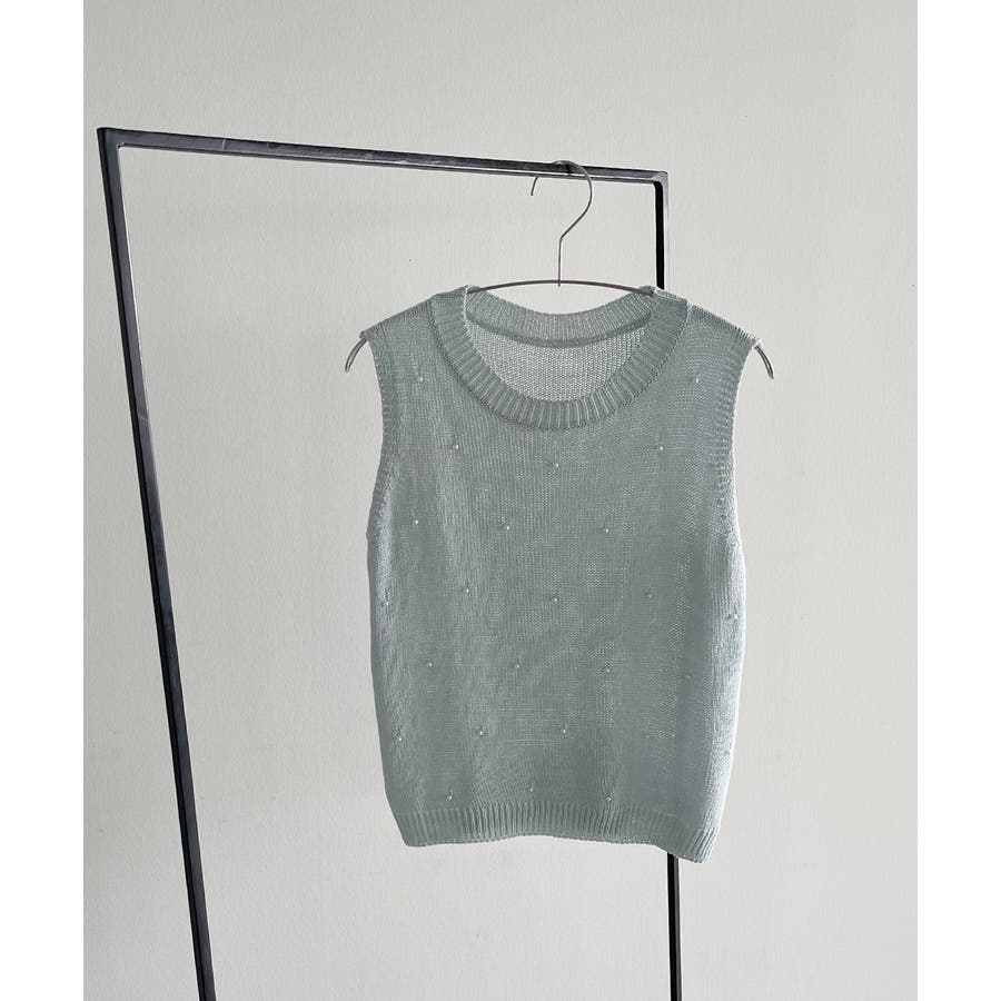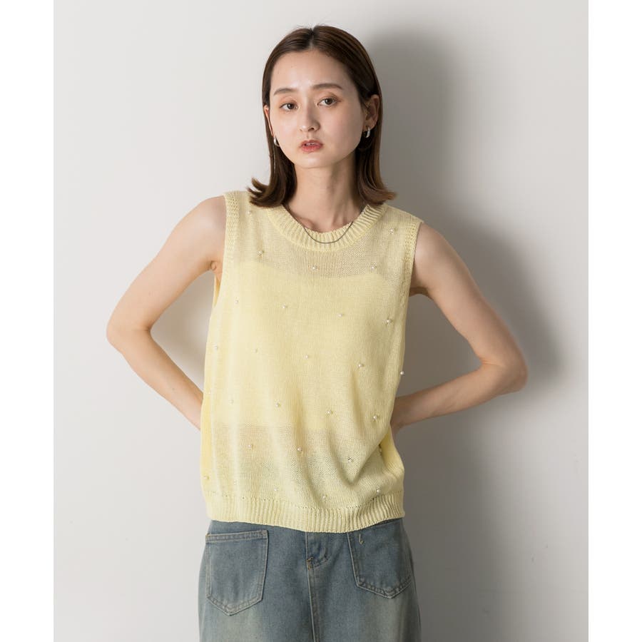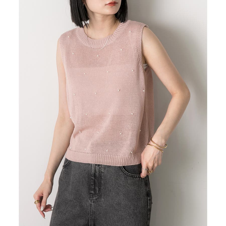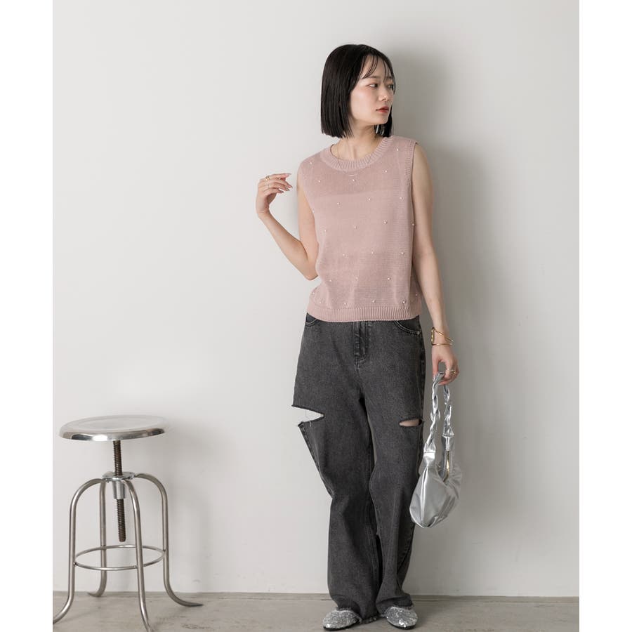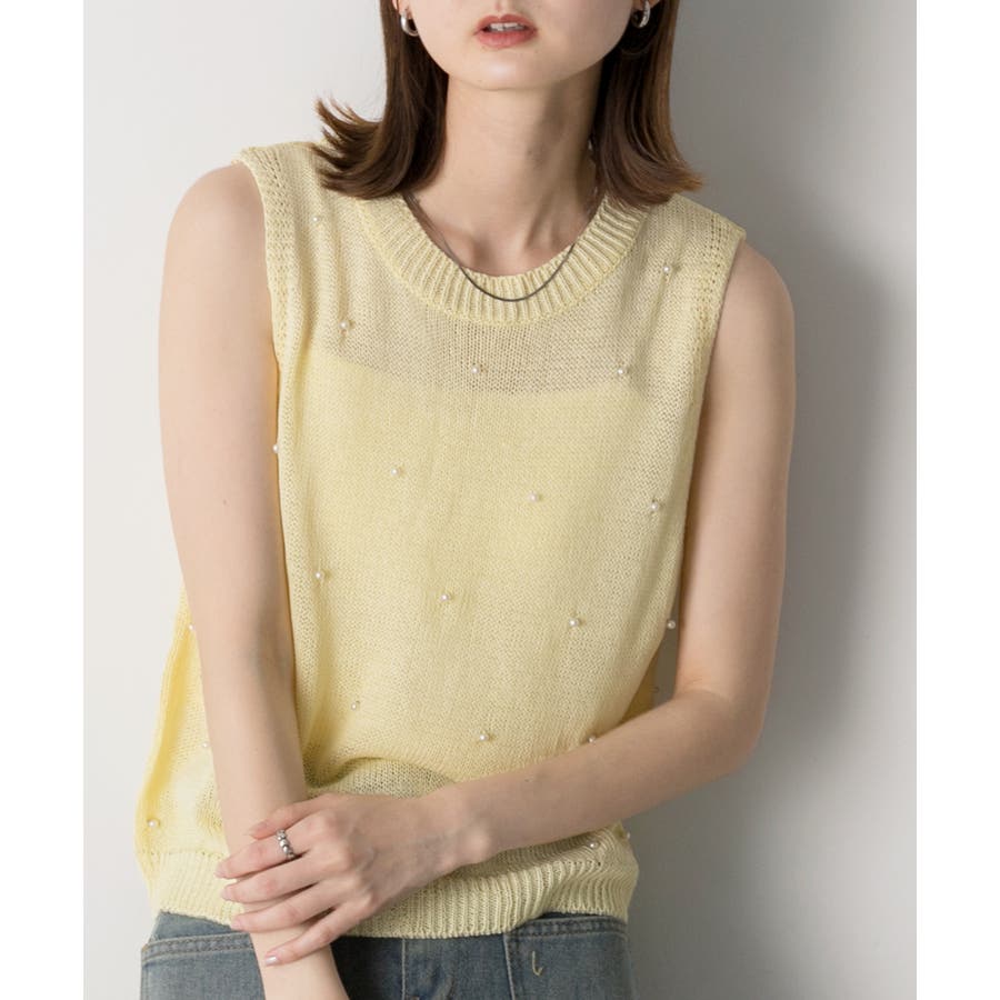 パール付き ノースリーブニット