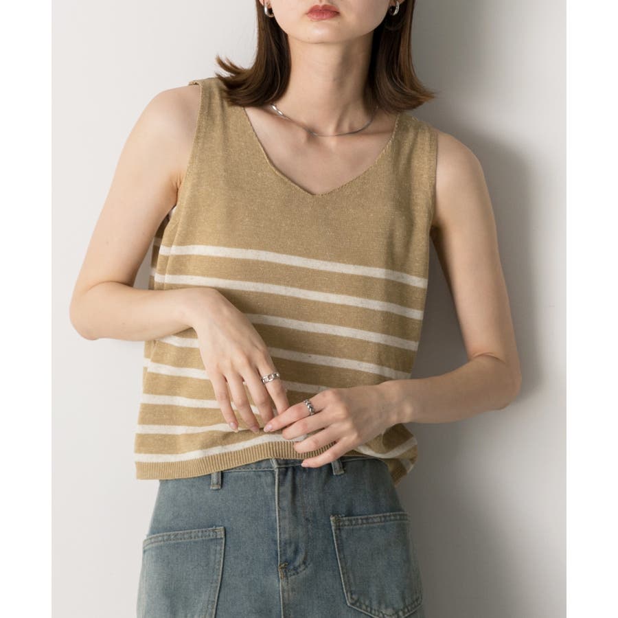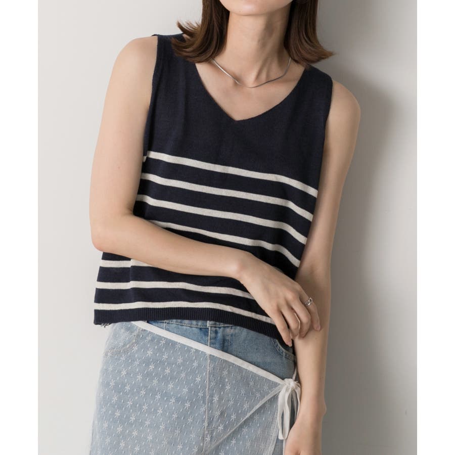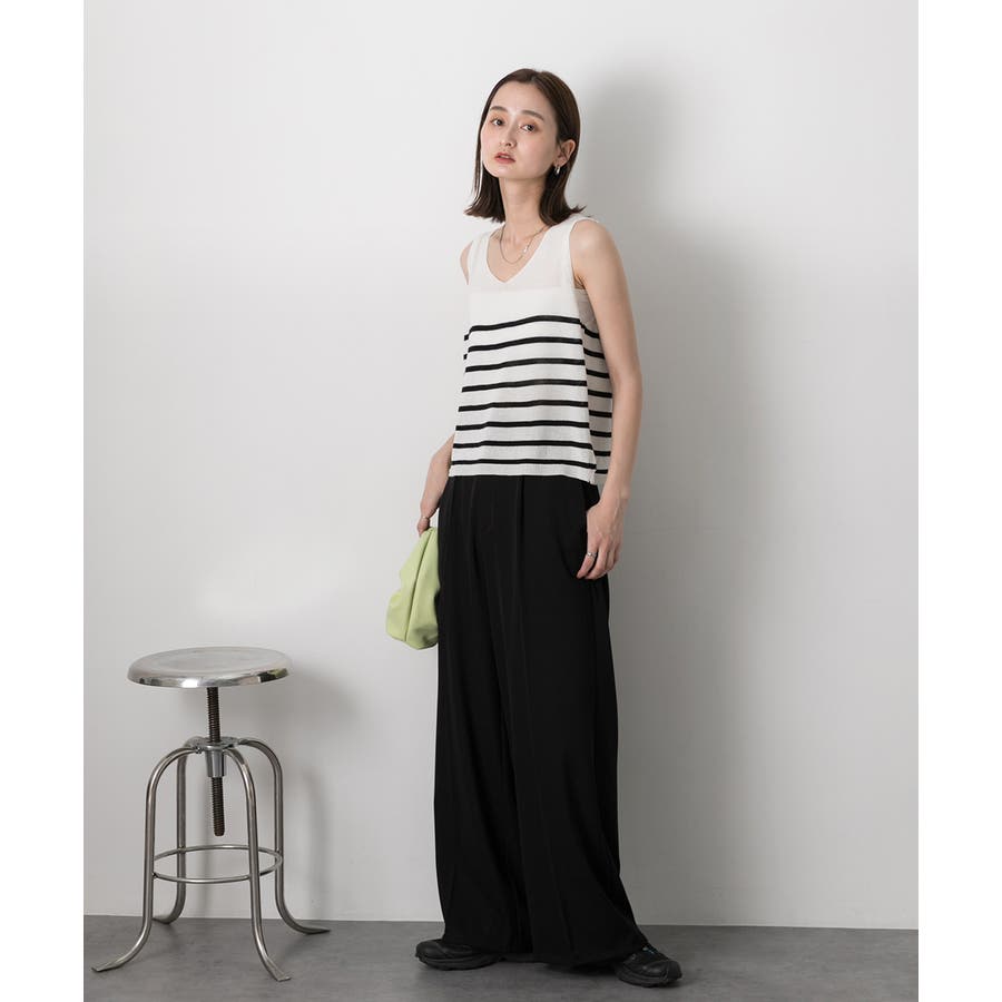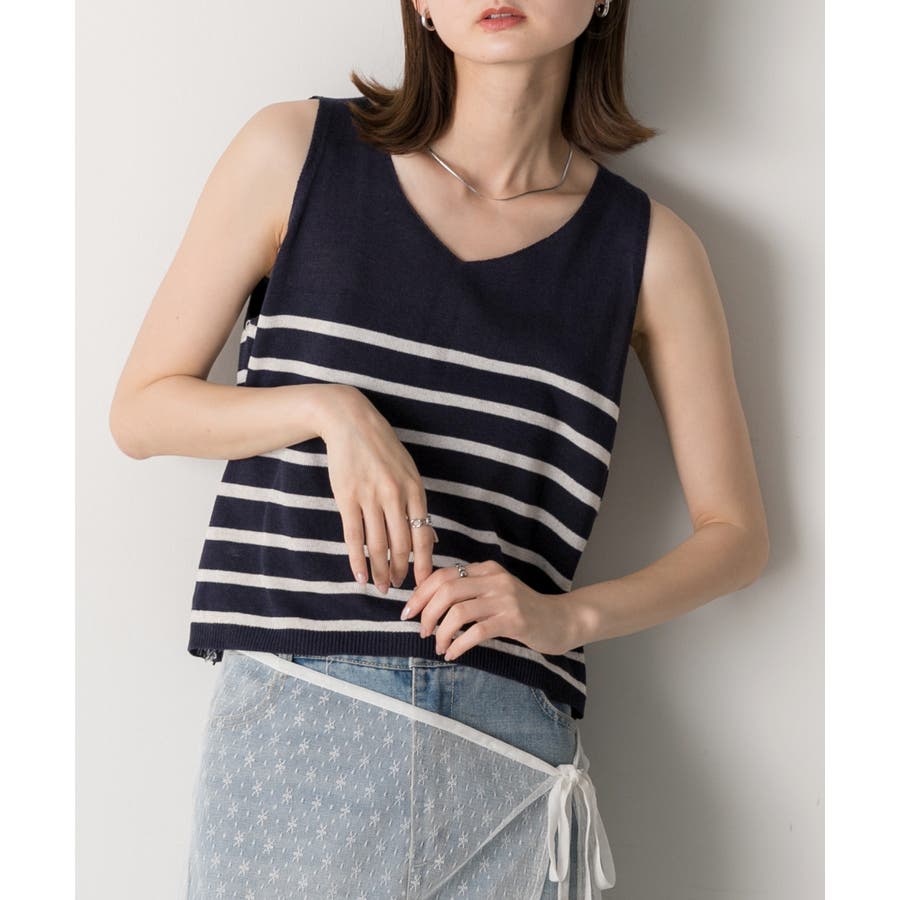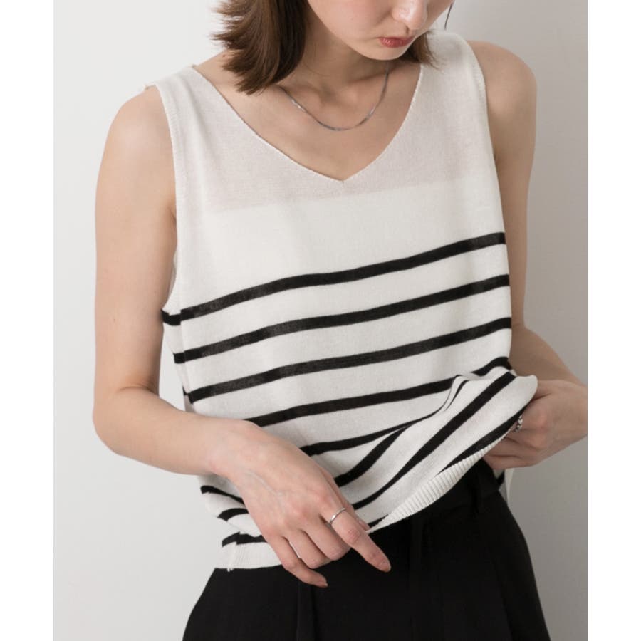 シーズンムードたっぷりのボーダーノースリーブニット