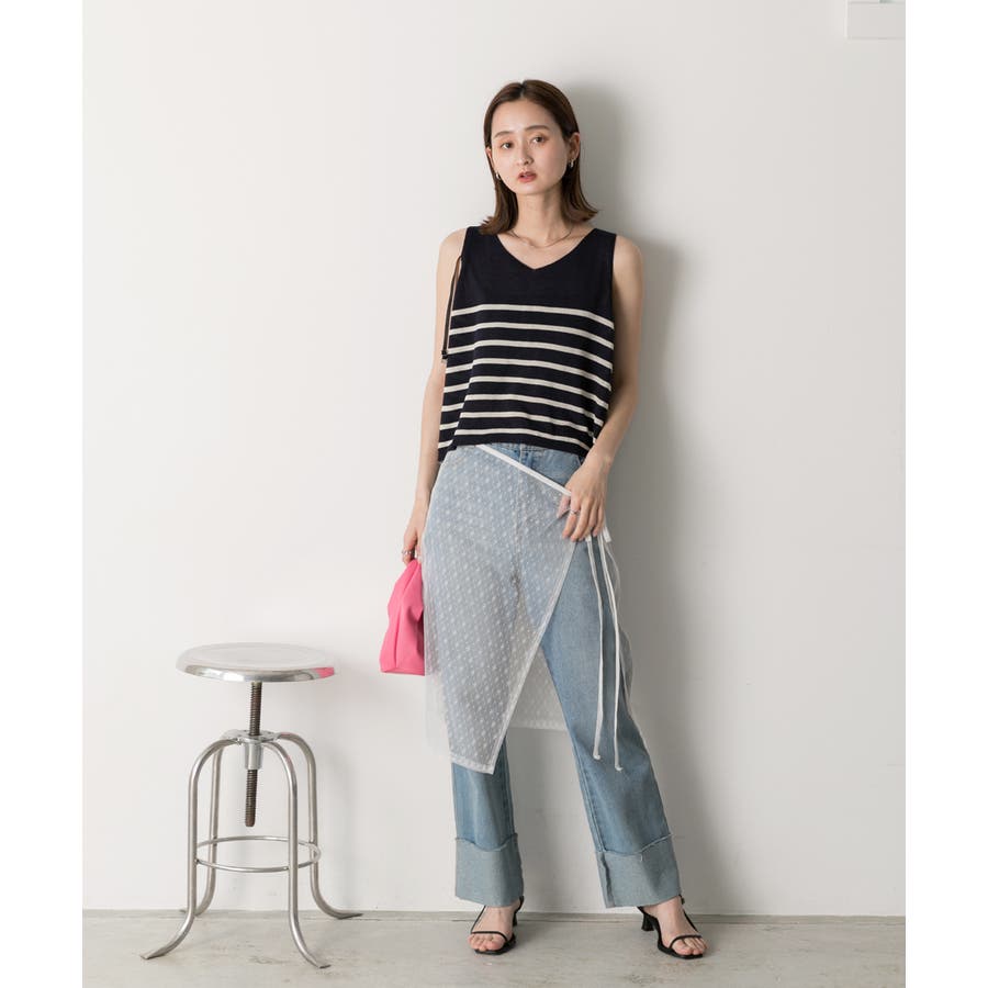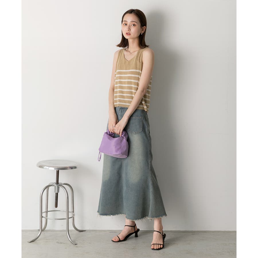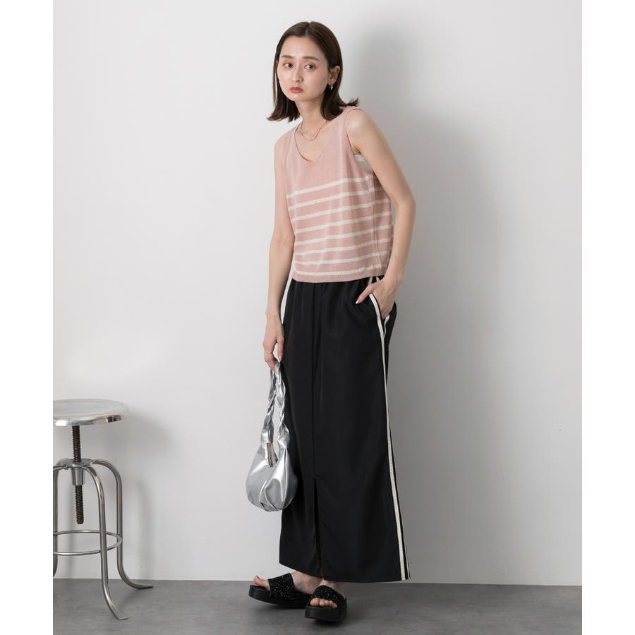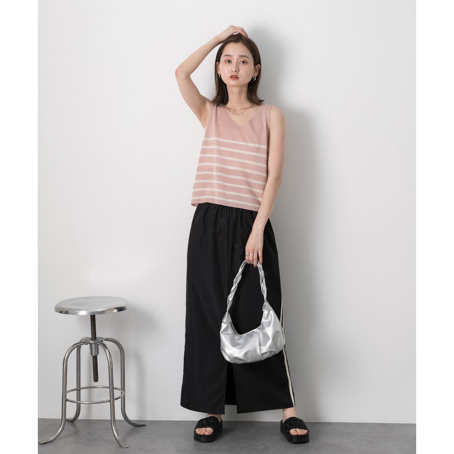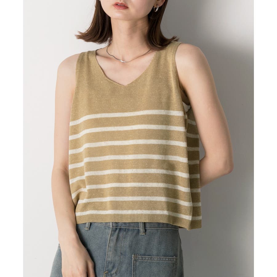 シーズンムードたっぷりのボーダーノースリーブニット