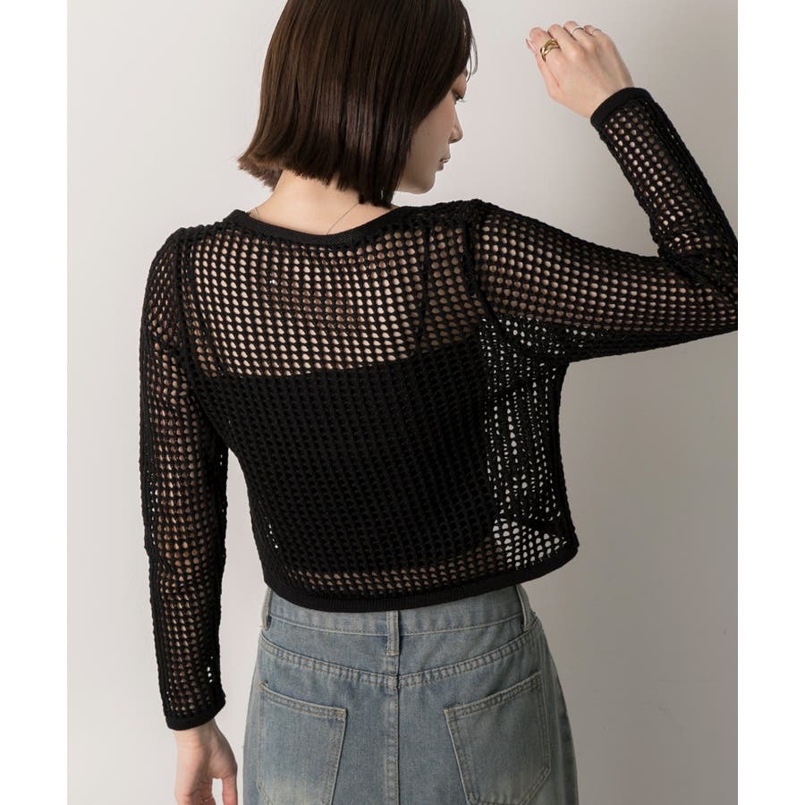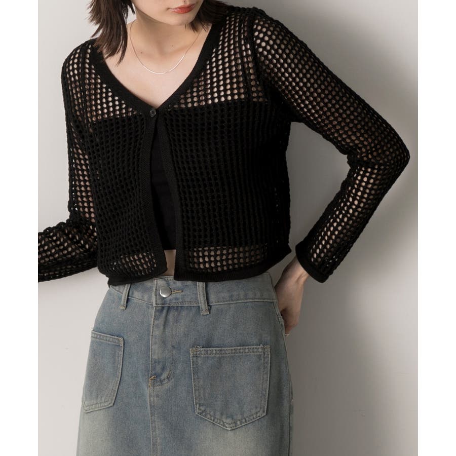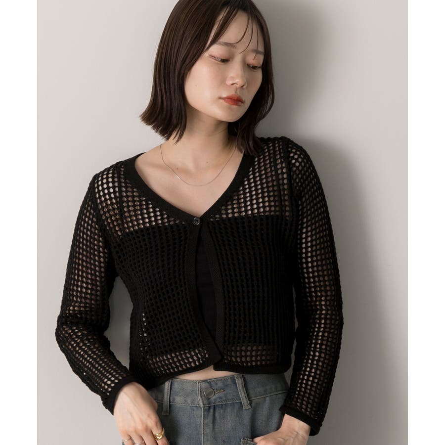 トレンドライクなレイヤードコーデが楽しめる透かし編みショートカーディガン