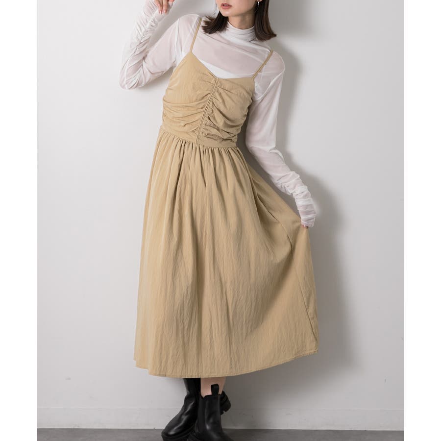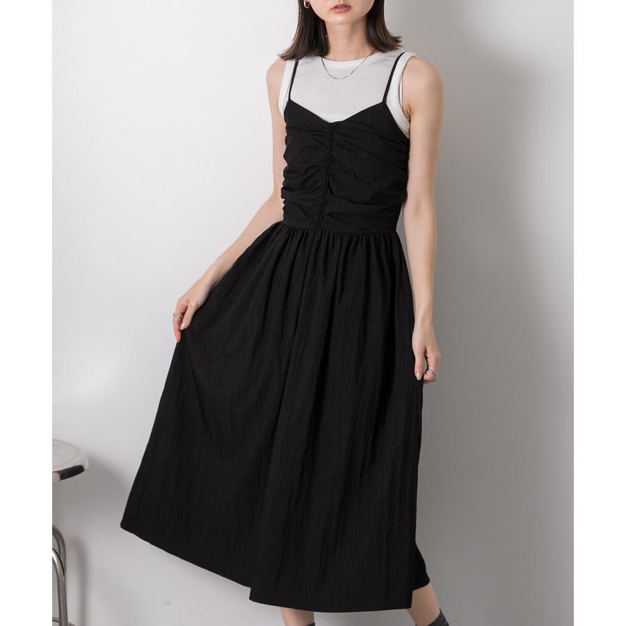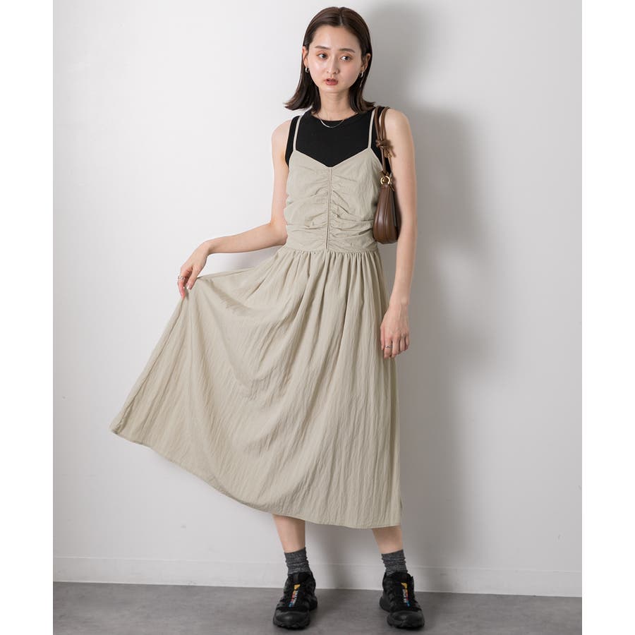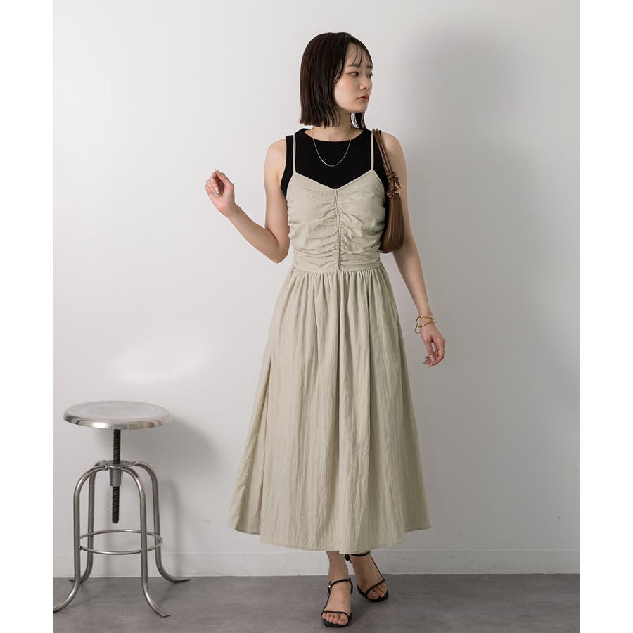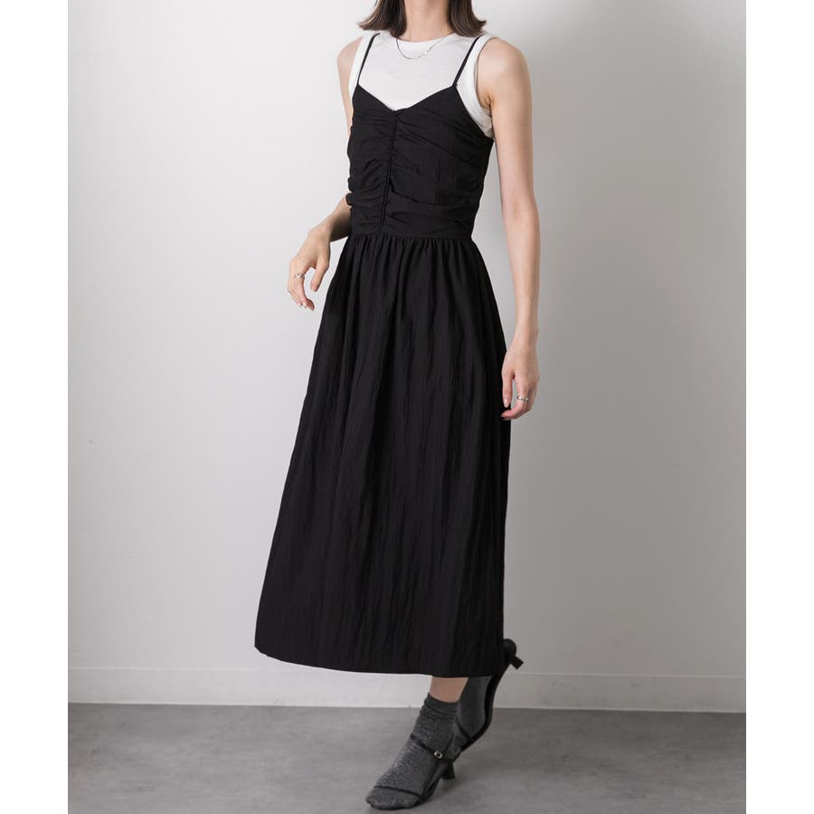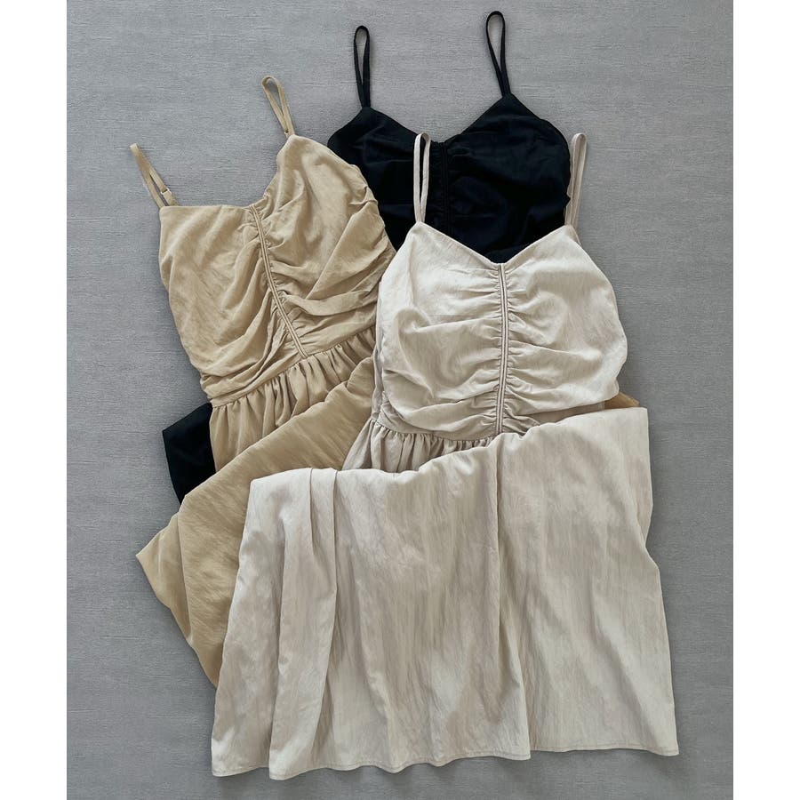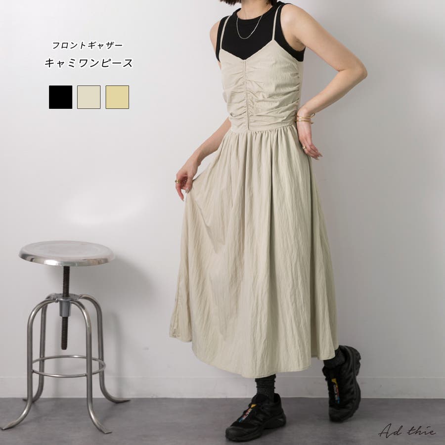 フロントギャザー キャミワンピース