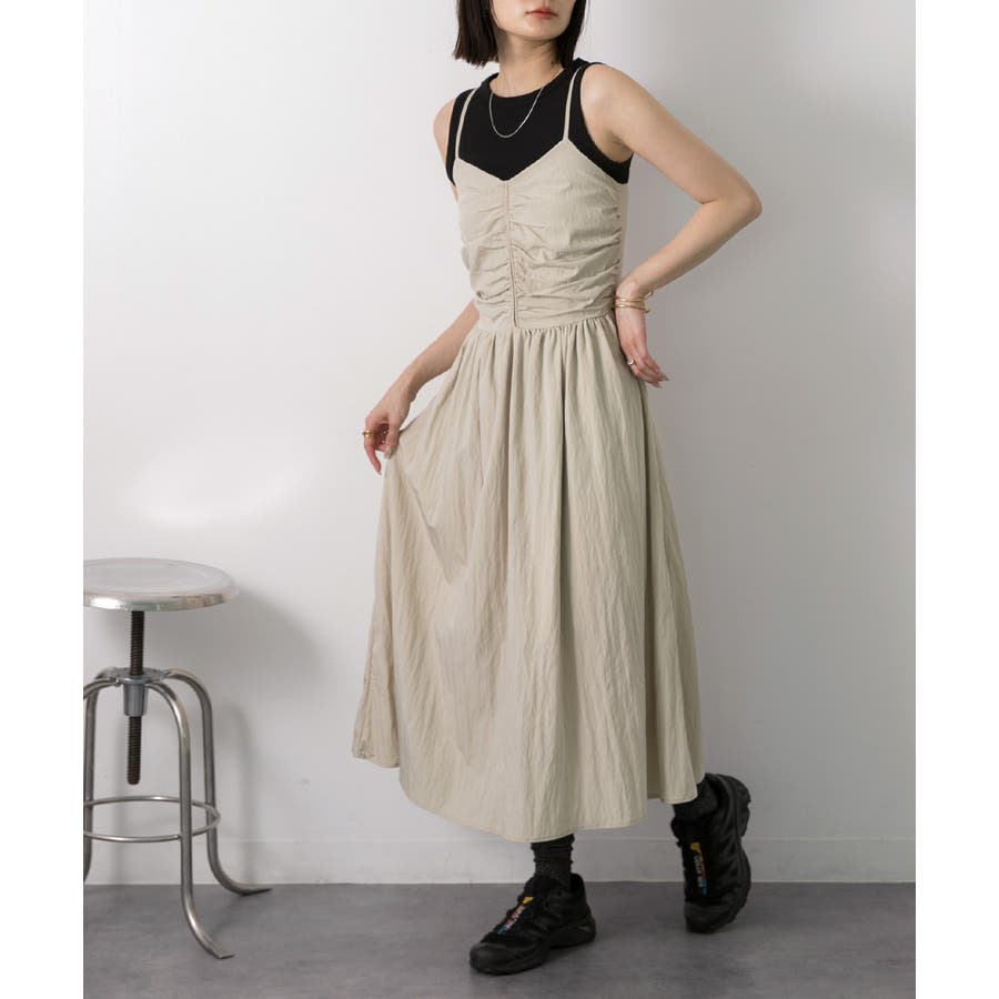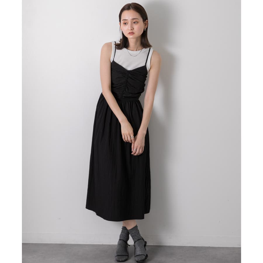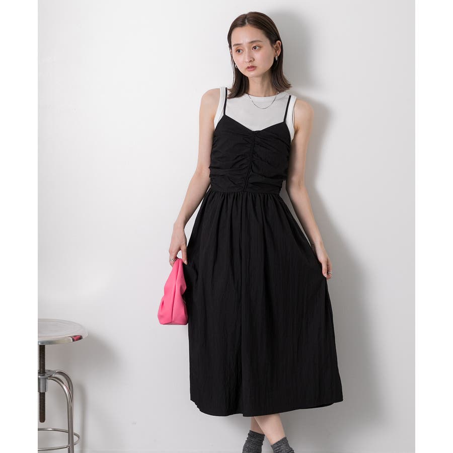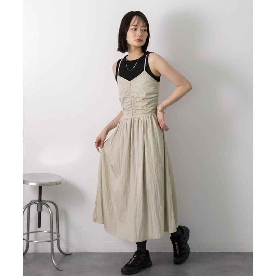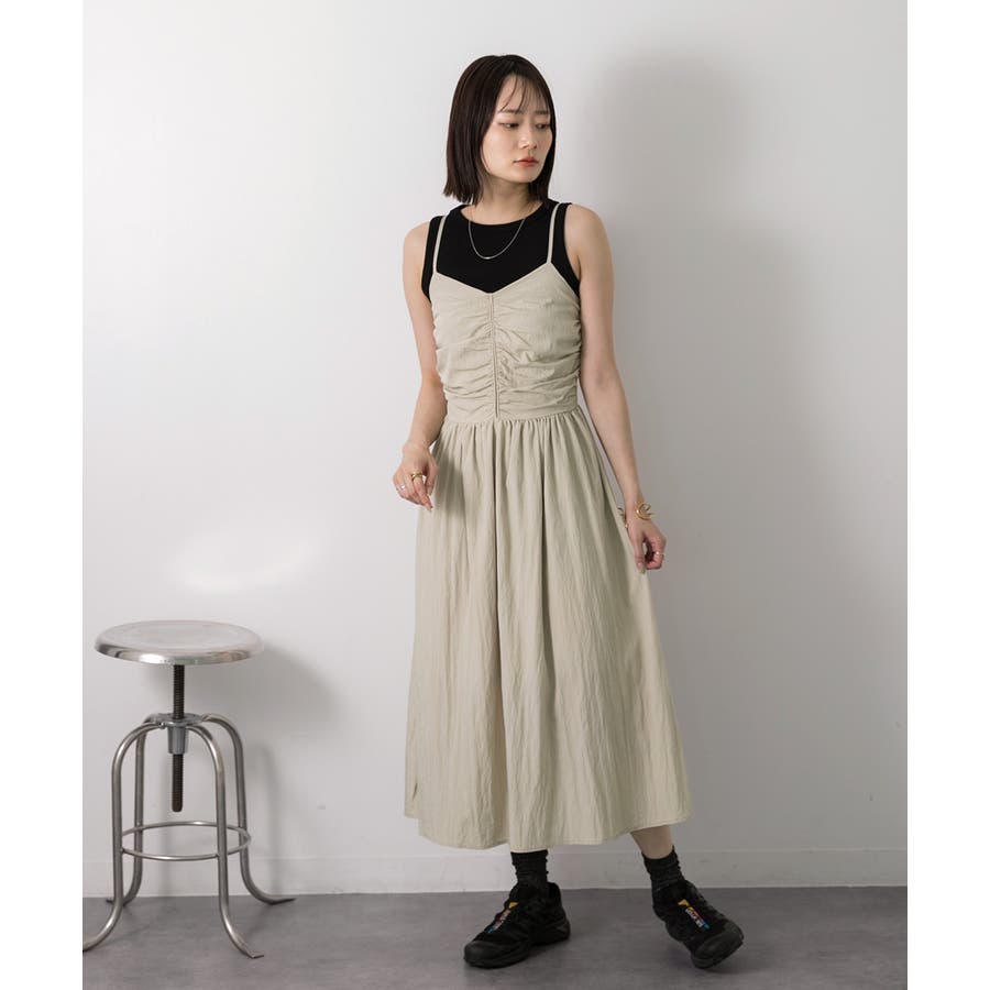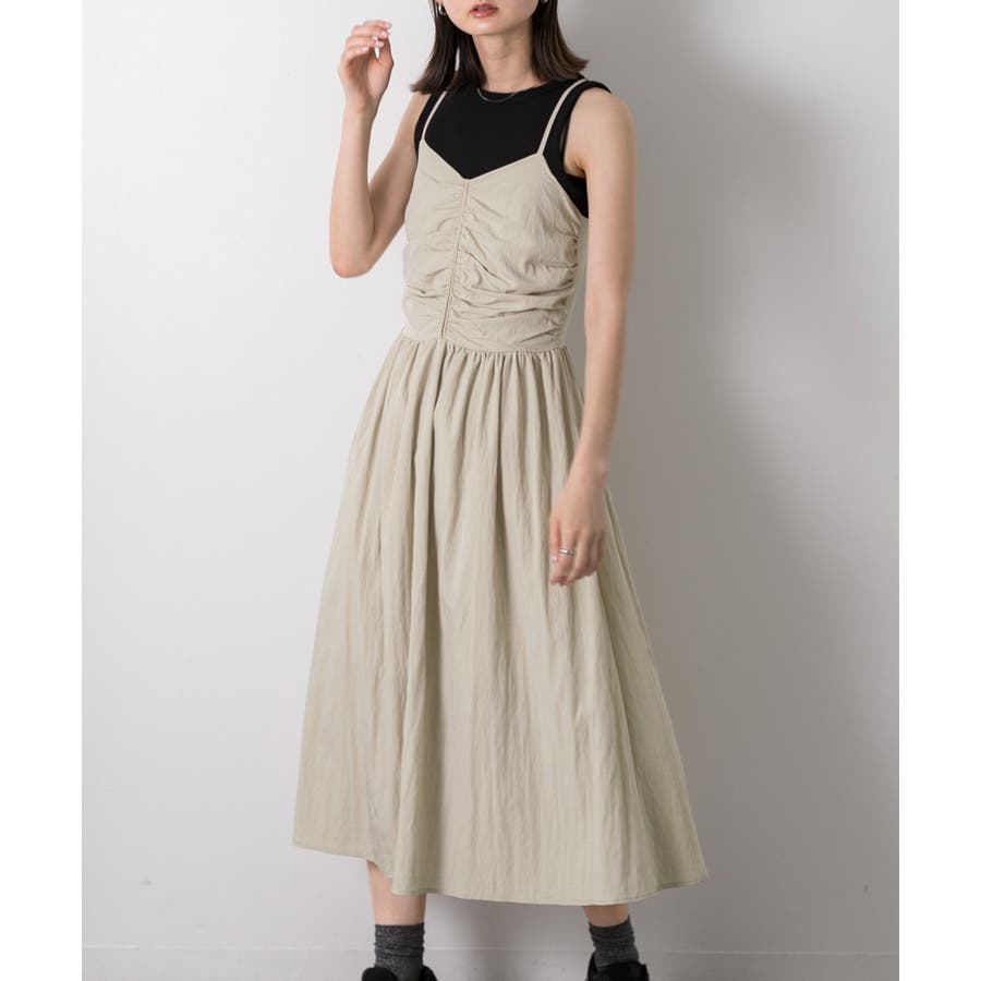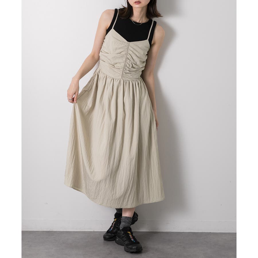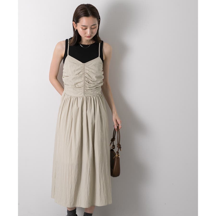 フロントギャザー キャミワンピース