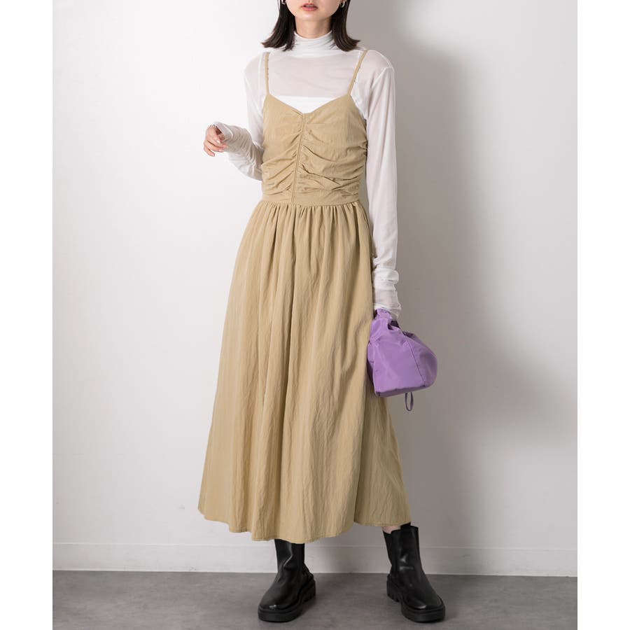 春 春コーデ 春ファッション 春服 冬 冬コーデ 冬ファッション 冬服 カジュアル カジュアルコーデ 大人 大人カジュアル オフィスカジュアル オフィス オフィスファッション オフィススタイル 韓国 韓国ファッション 韓国コーデ プチプラ プチプラファッション レディース Y2K 量産型 キレイめ 綺麗め きれい きちんと ワンピース キャミソールワンピース キャミワンピ ボリュームワンピ ミディ丈 レイヤード レイヤー 重ね着 リラックス 旅行 リゾート フレア ギャザー ラグジュアリー ナチュラル ブラック 黒 ベージュ