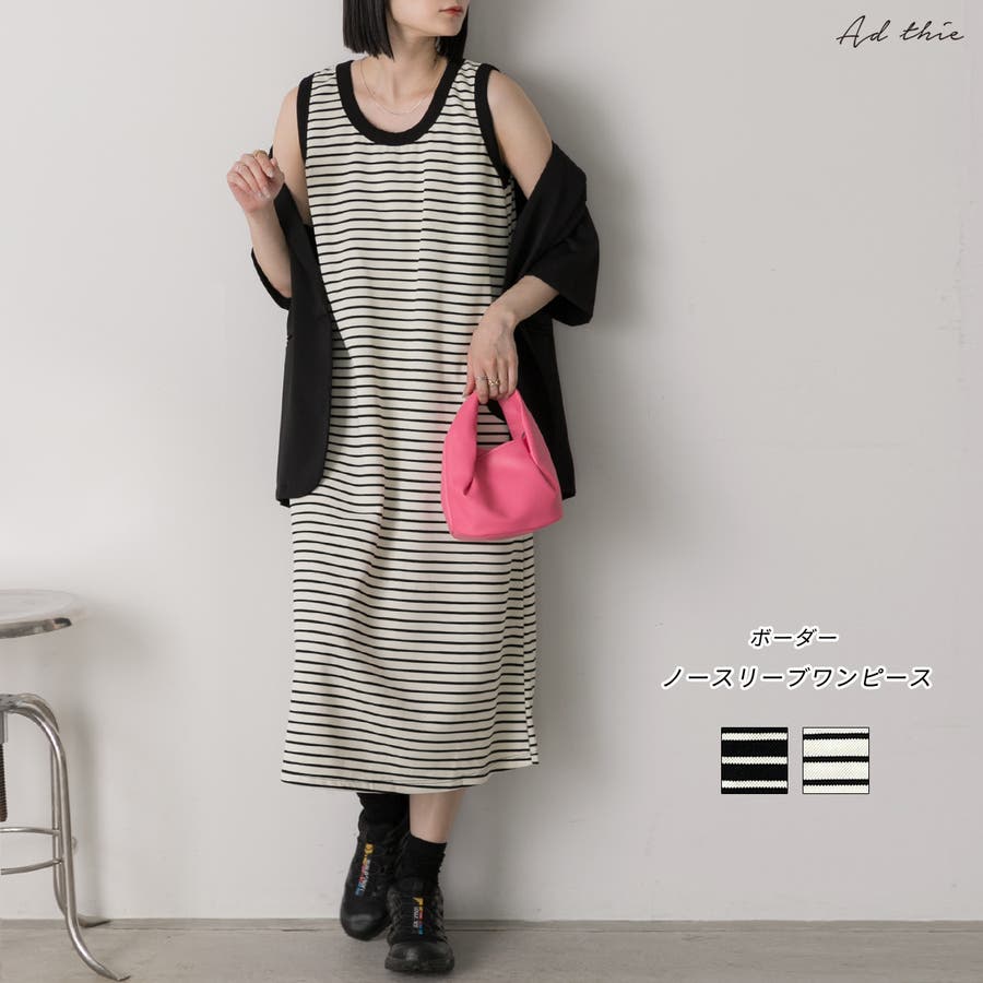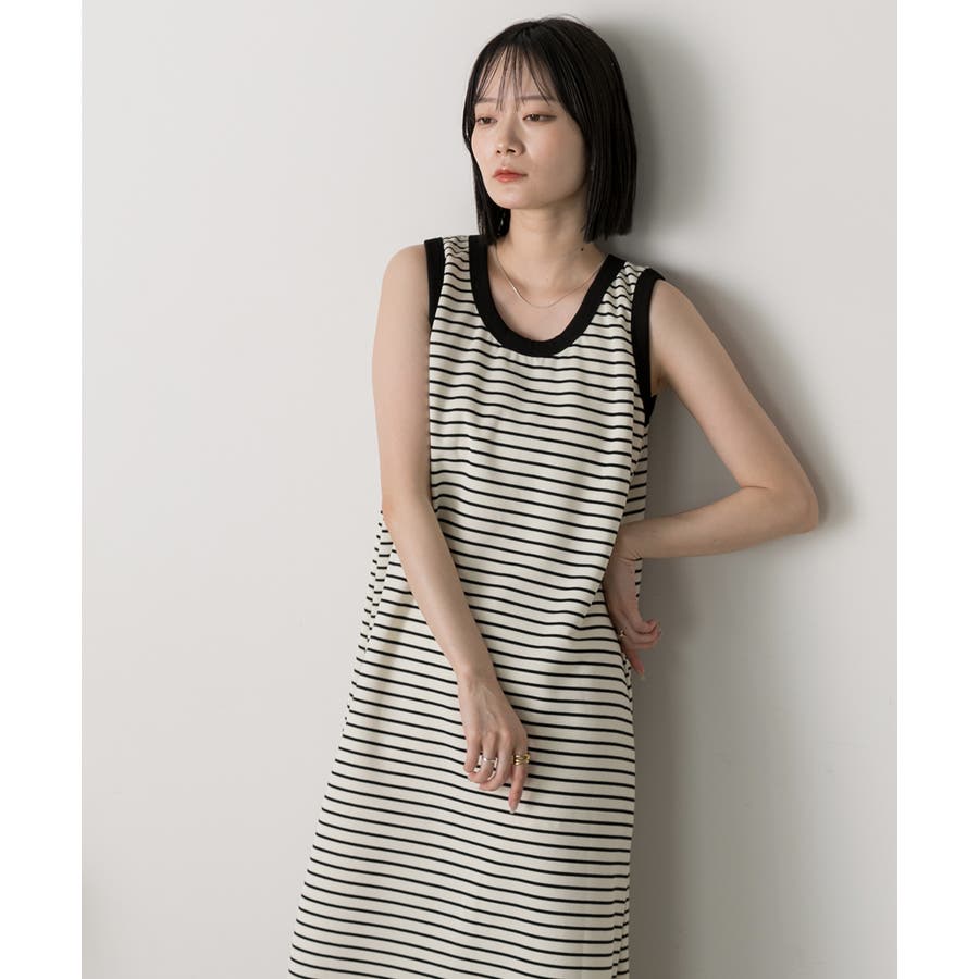 ボーダー ノースリーブワンピース