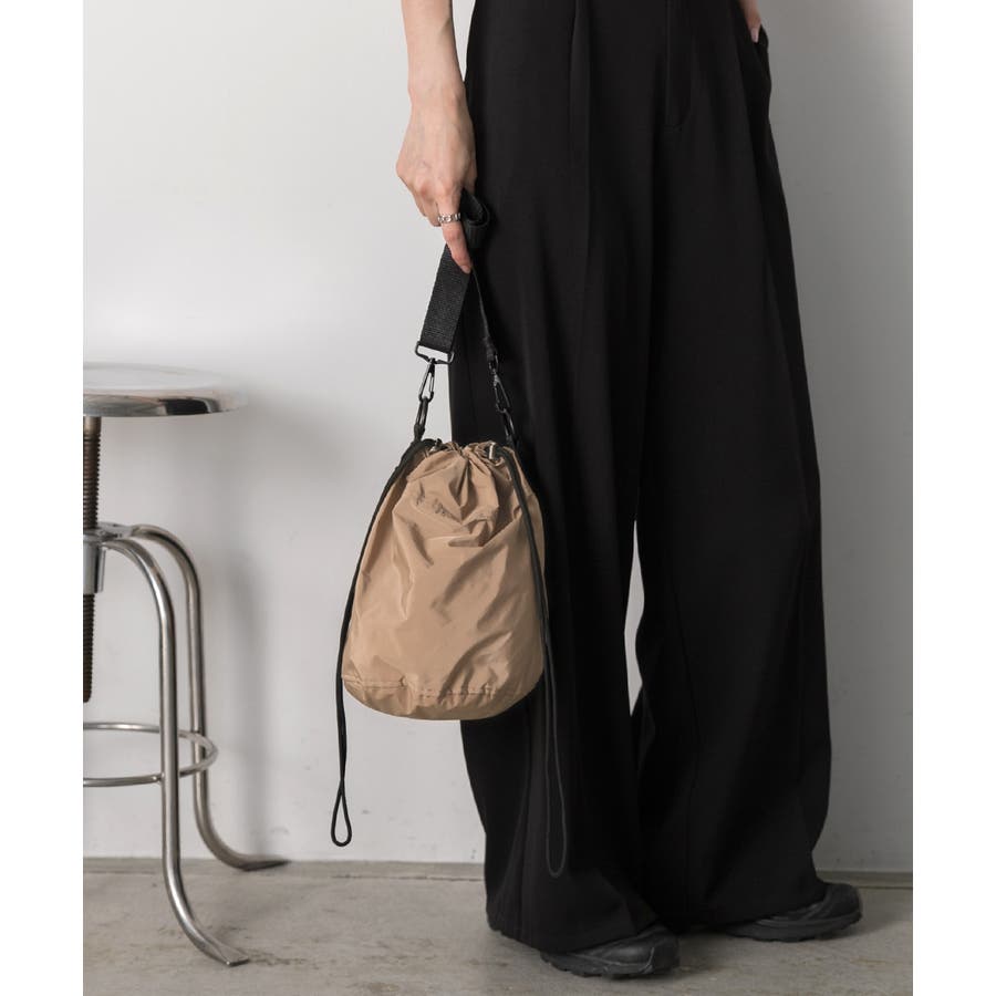 ドロストコードがポイントになる使い勝手抜群のバケットショルダーバッグ