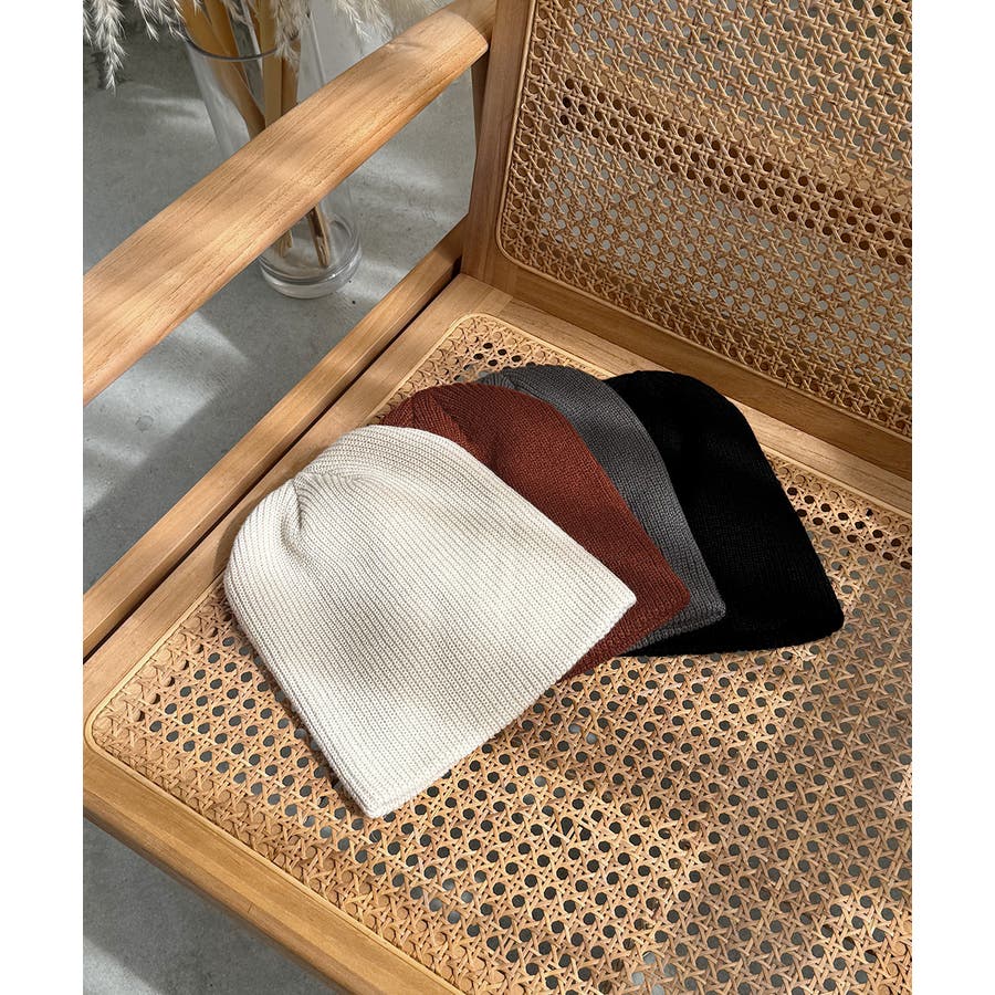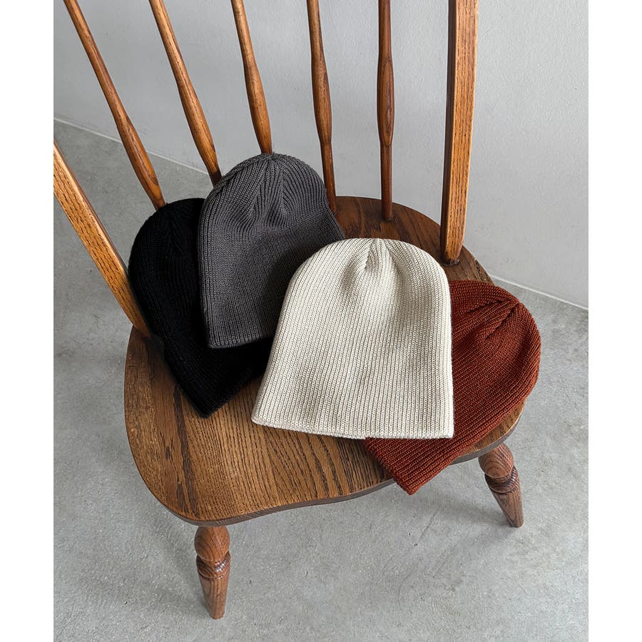 シンプルなデザインとベーシックカラーが魅力のリブニットビーニー