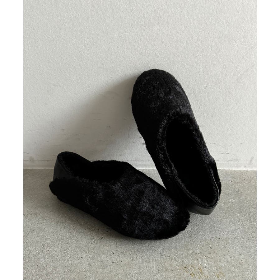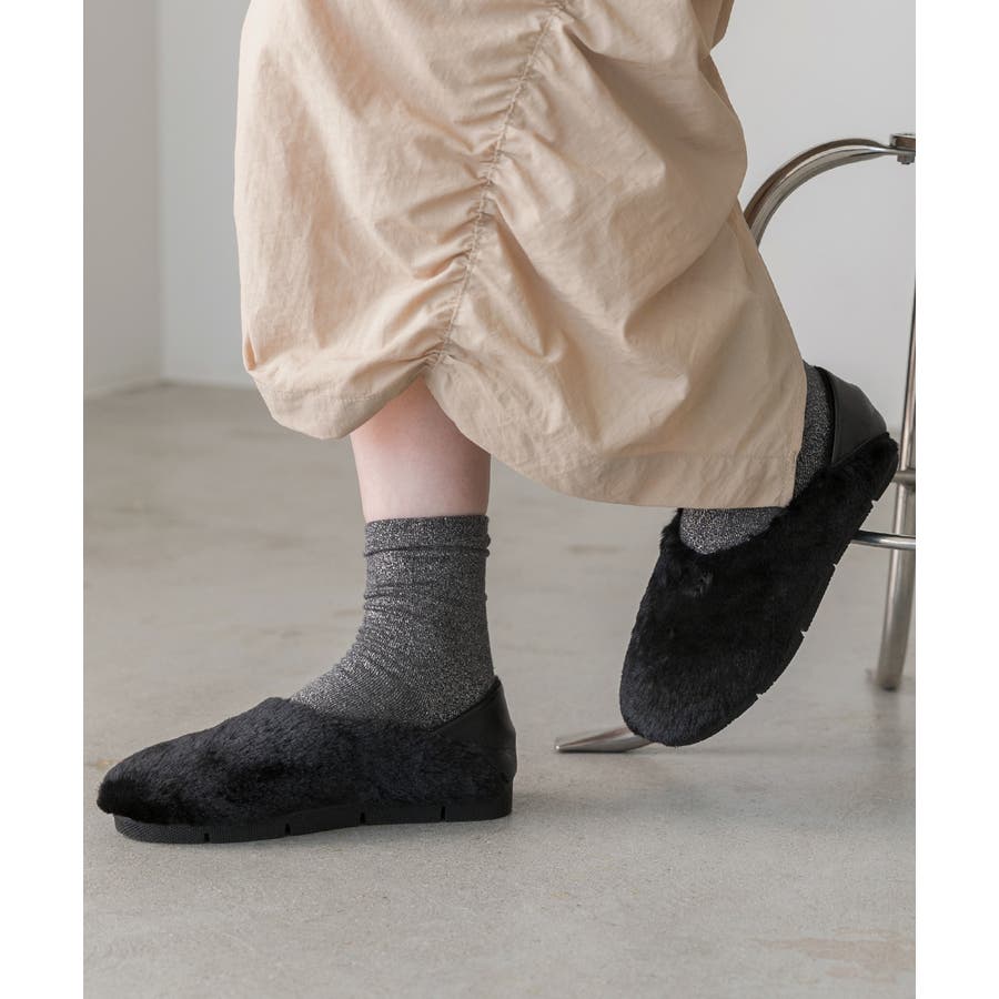 シーズンムードたっぷりのもこもこボアが、足もとを華やかにしてくれる主役級シューズ