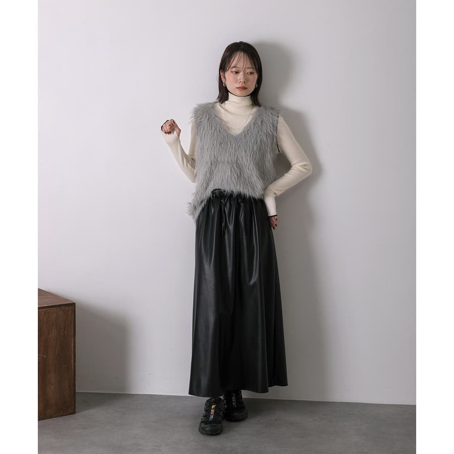 トレンドライクな着こなしが叶う、レザータッチロングスカート