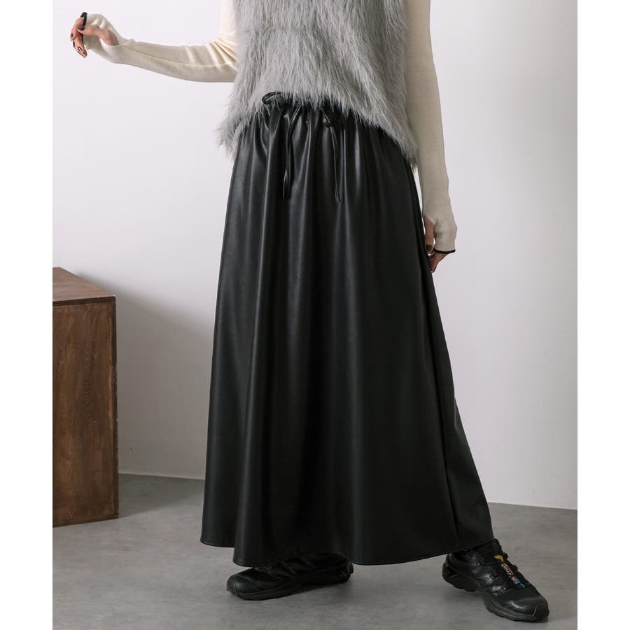 春 春コーデ 春ファッション 春服 冬 冬コーデ 冬ファッション 冬服 カジュアル カジュアルコーデ 大人 大人カジュアル オフィスカジュアル オフィス オフィスファッション オフィススタイル 韓国 韓国ファッション 韓国コーデ プチプラ プチプラファッション レディース Y2K 量産型 キレイめ 綺麗め きれい きちんと スカート フェイクレザー 合成皮革 合皮 レザー ロングスカート ギャザー ウエストゴム リラックス 楽 楽ちん Aライン 黒 ブラック ブラウン アイボリー