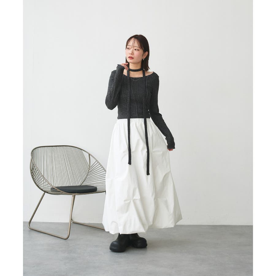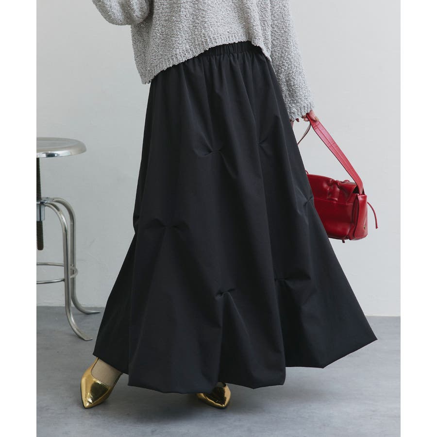 春 春コーデ 春ファッション 春服 夏 夏コーデ 夏ファッション 夏服 カジュアル カジュアルコーデ 大人 大人カジュアル オフィスカジュアル オフィス オフィスファッション オフィススタイル 韓国 韓国ファッション 韓国コーデ プチプラ プチプラファッション レディース Y2K 量産型 キレイめ 綺麗め きれい きちんと モード スカート マキシ丈 ロング丈 ミディアム丈 ウエストゴム 楽ちん 楽 ストレスフリー 個性的 ランダムタック ランダムピック ボリューム フレアスカート バルーンスカート アシンメトリー アシメ 体系カバー シンプル ブラック 黒 オフホワイト 白 グレー