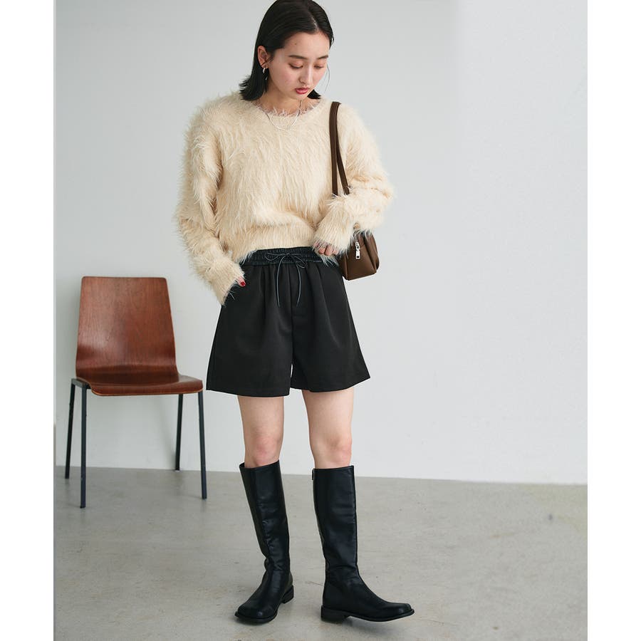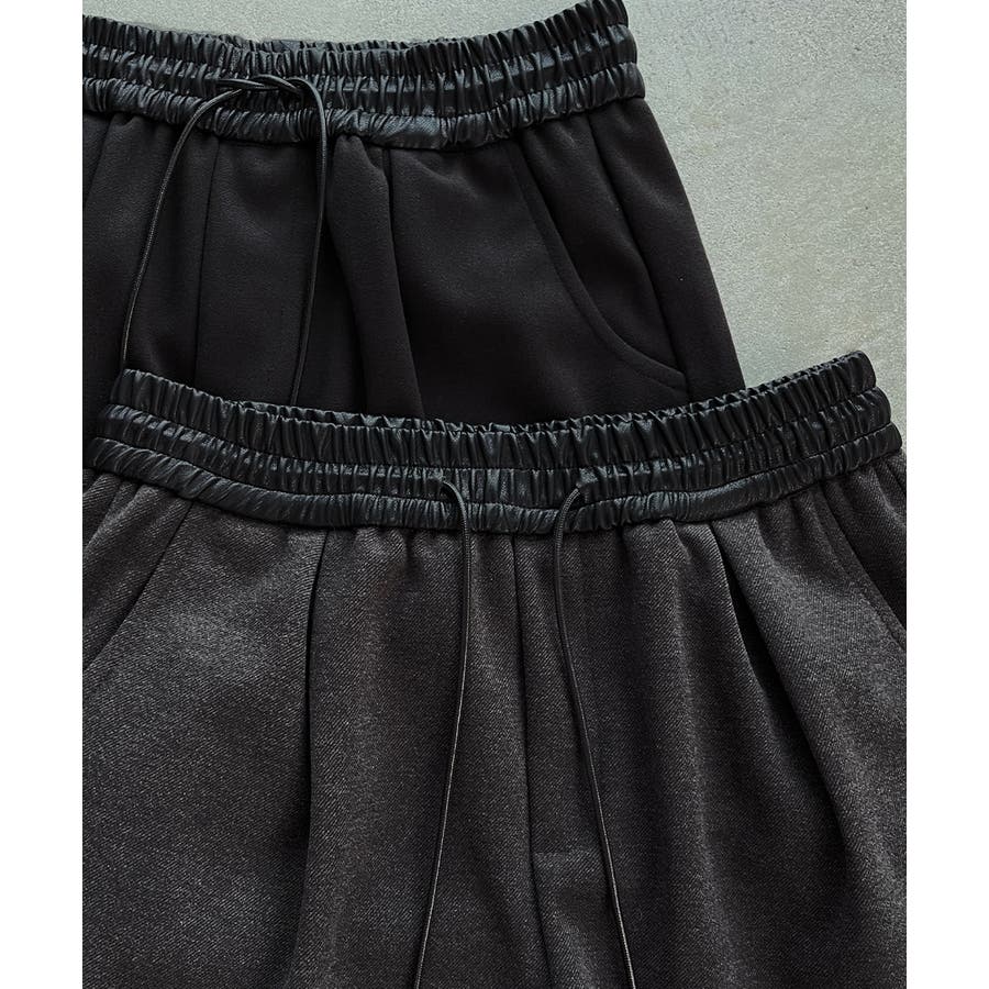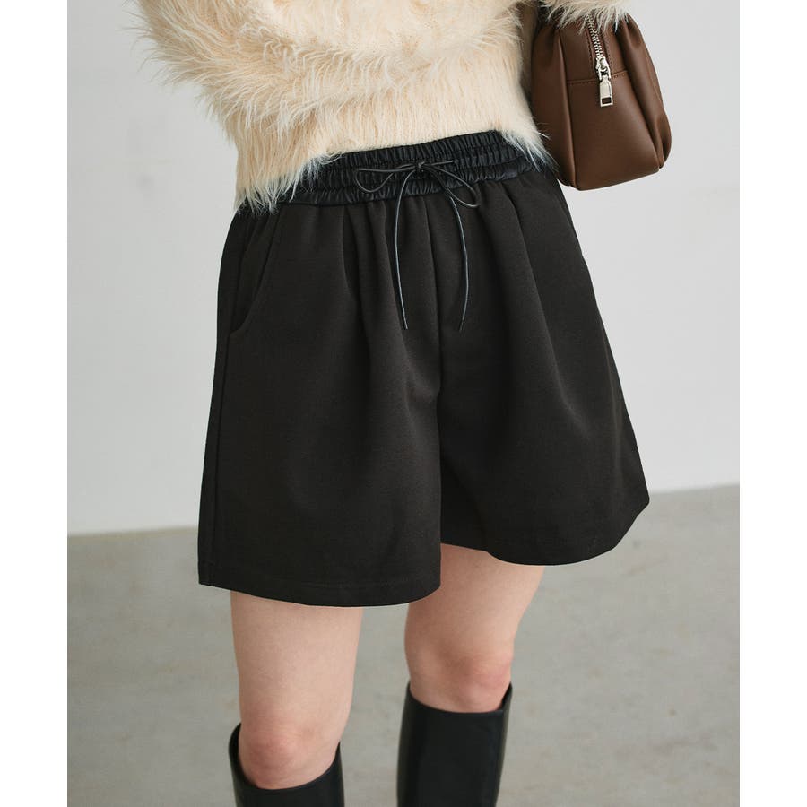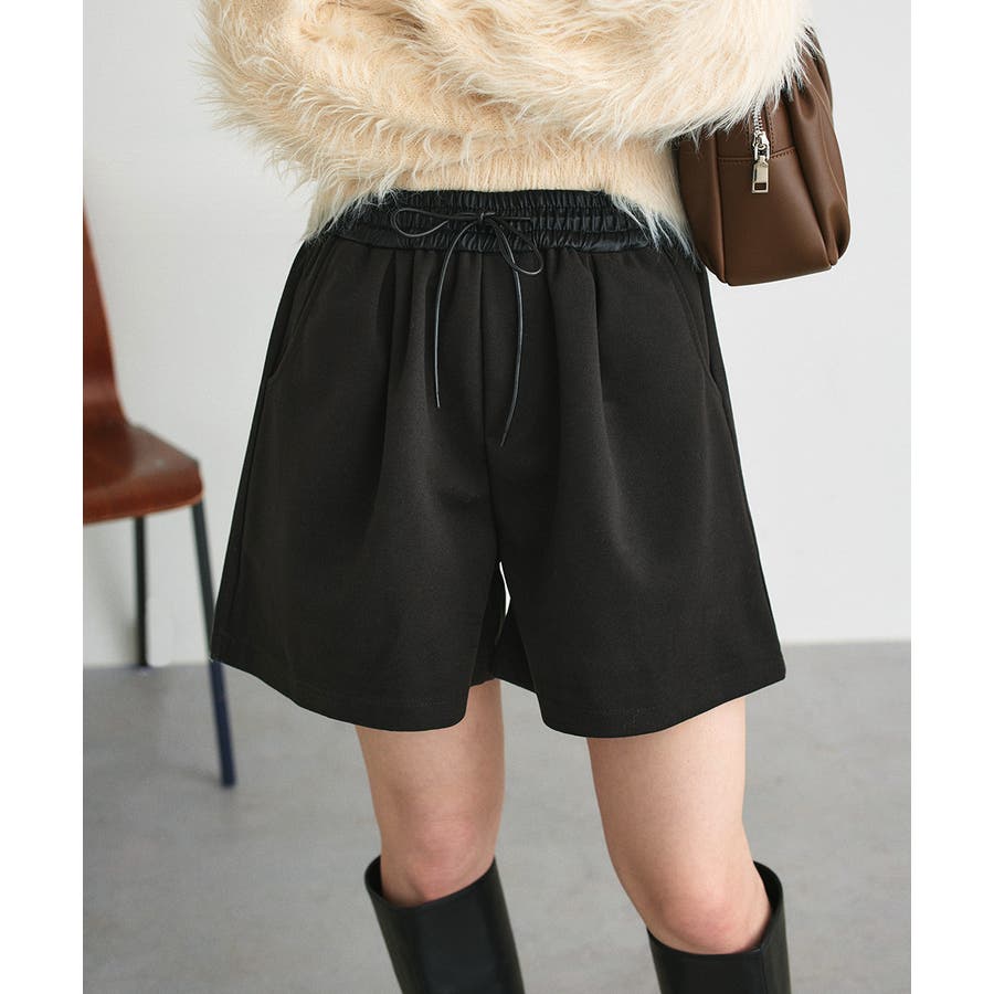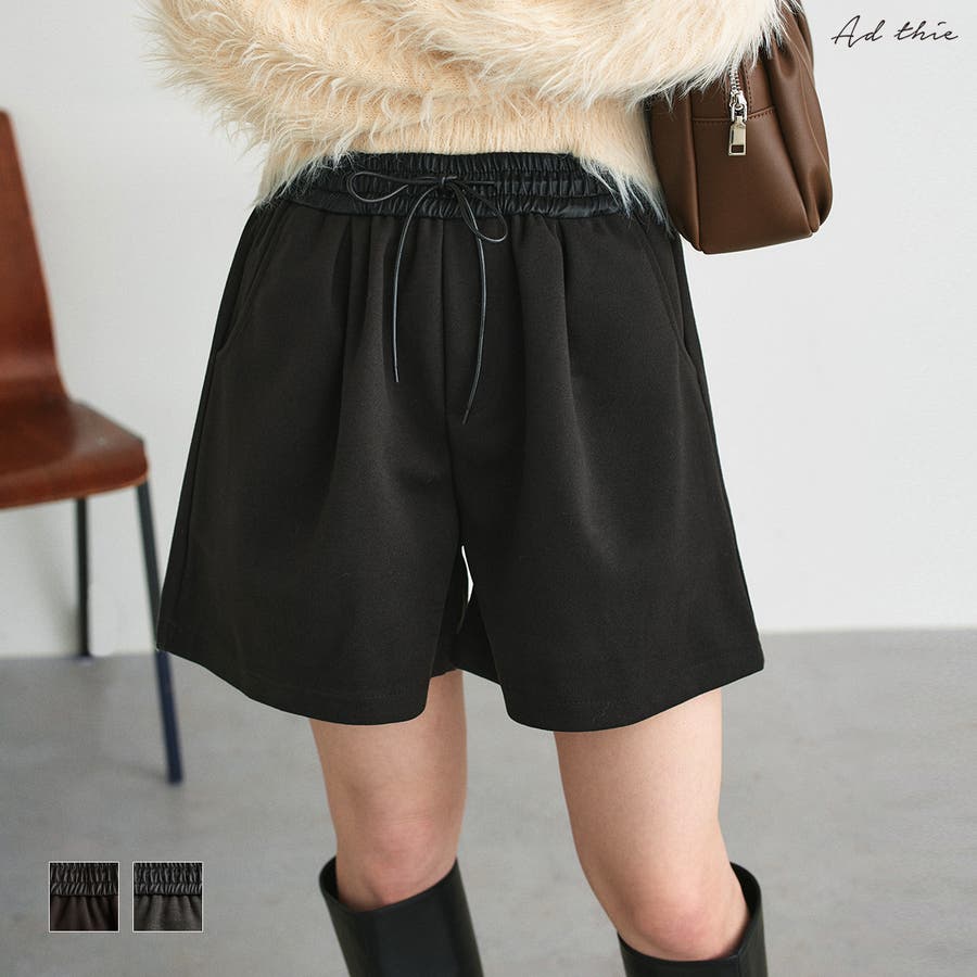 春 春コーデ 春ファッション 春服 冬 冬コーデ 冬ファッション 冬服 カジュアル カジュアルコーデ 大人 大人カジュアル オフィスカジュアル オフィス オフィスファッション オフィススタイル 韓国 韓国ファッション 韓国コーデ プチプラ プチプラファッション レディース Y2K 量産型 キレイめ 綺麗め きれい きちんと ハーフパンツ ウエスト切替 ウエスト切替パンツ 切替パンツ 切替ハーフパンツ ウエスト切替ハーフパンツ 合成皮革 合皮 ドロスト ドロストコード ドローコード きれいめカジュアル きれいめハーフパンツ グレー ダークグレー ブラック 黒