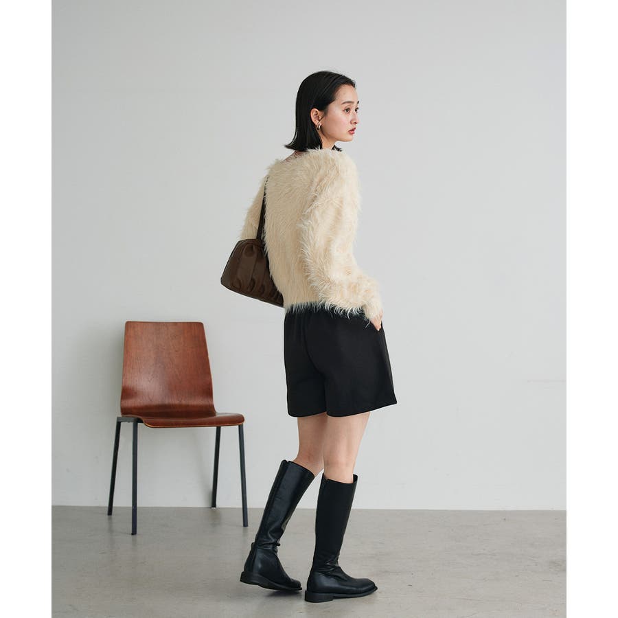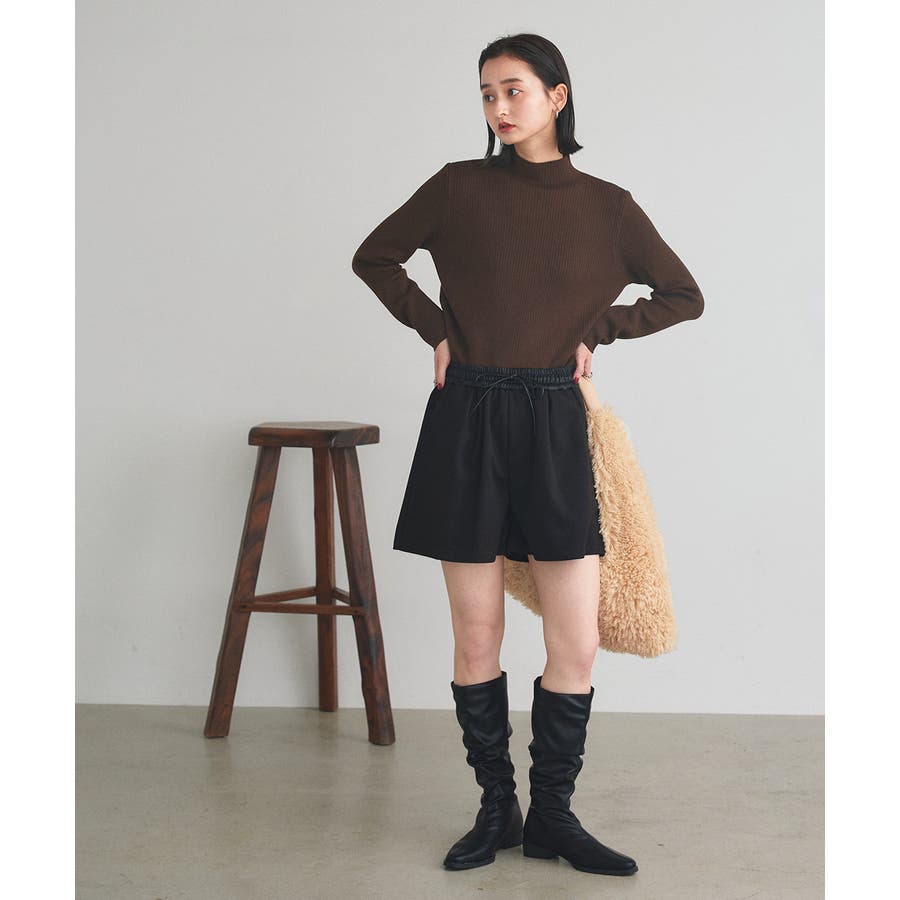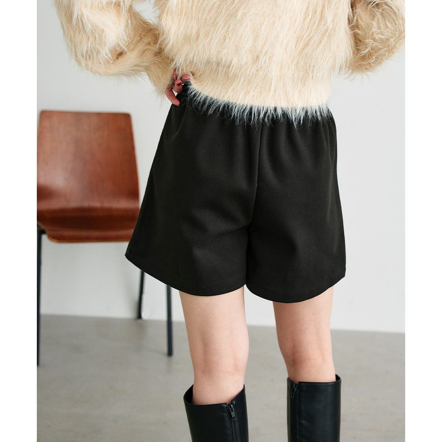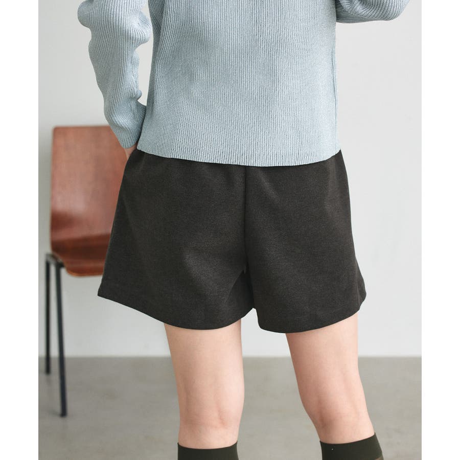 レザータッチのウエスト切替がポイントになり、履くだけでウエストマークができるきれいめハーフパンツ