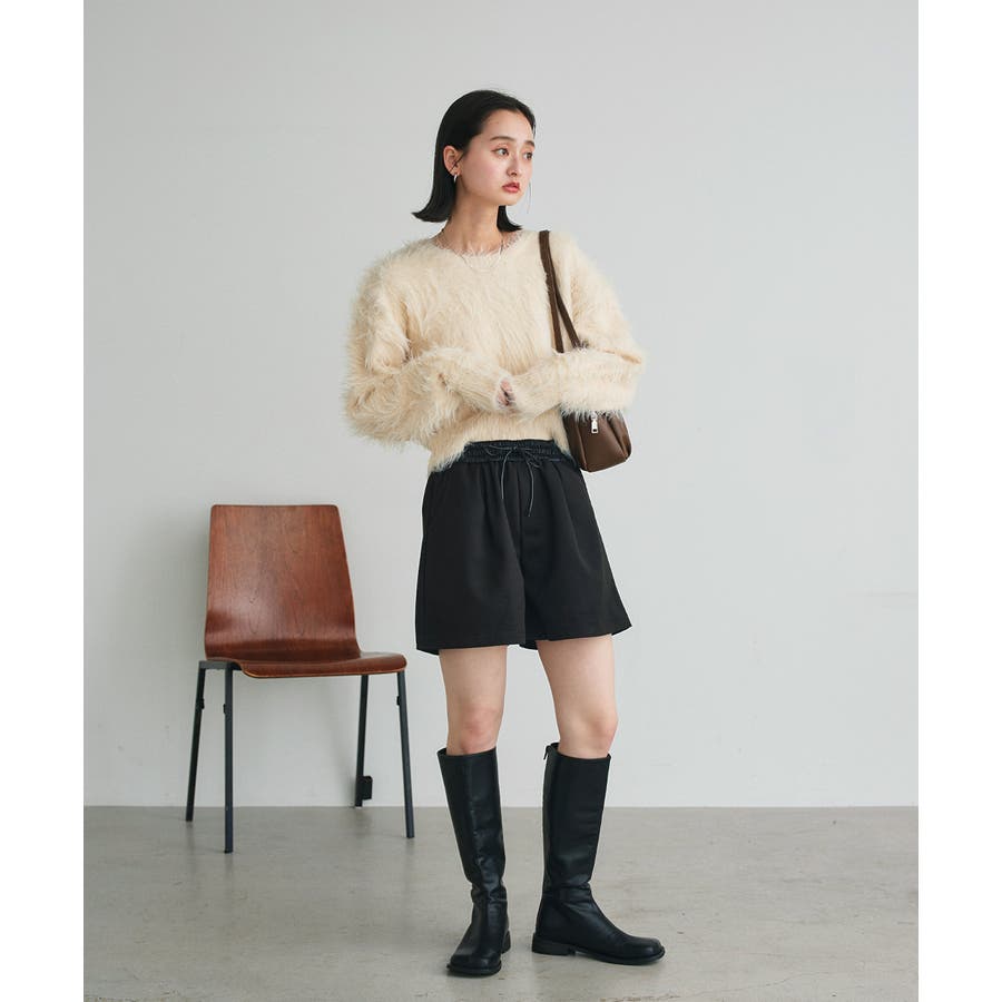 洗練された印象のウエスト切替がポイントになるハーフパンツ