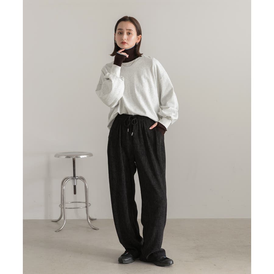 合わせるアイテム次第で、様々な表情を見せてくれるので1着あるとコーデの幅が広がるパンツです。