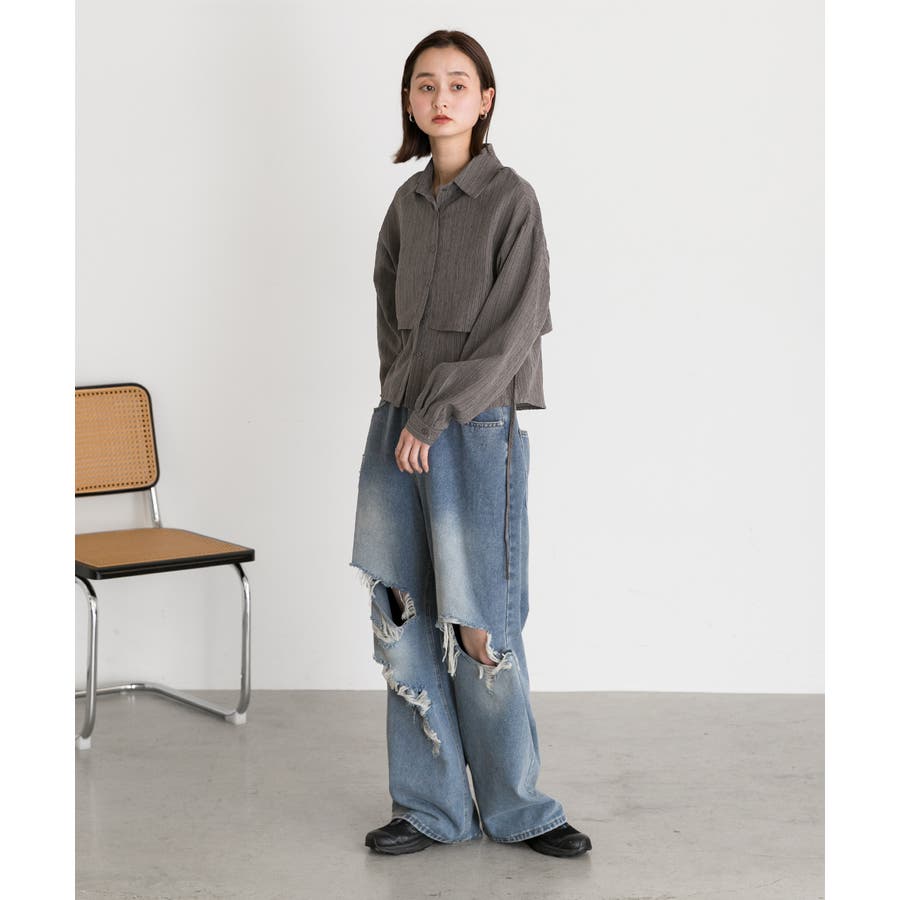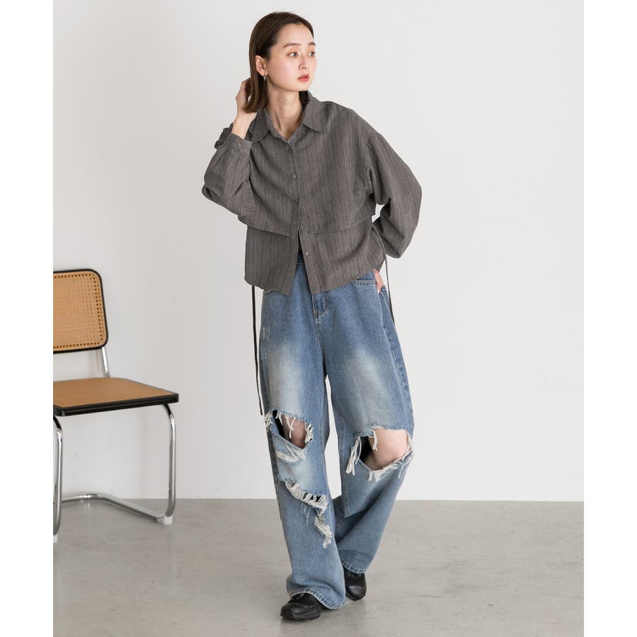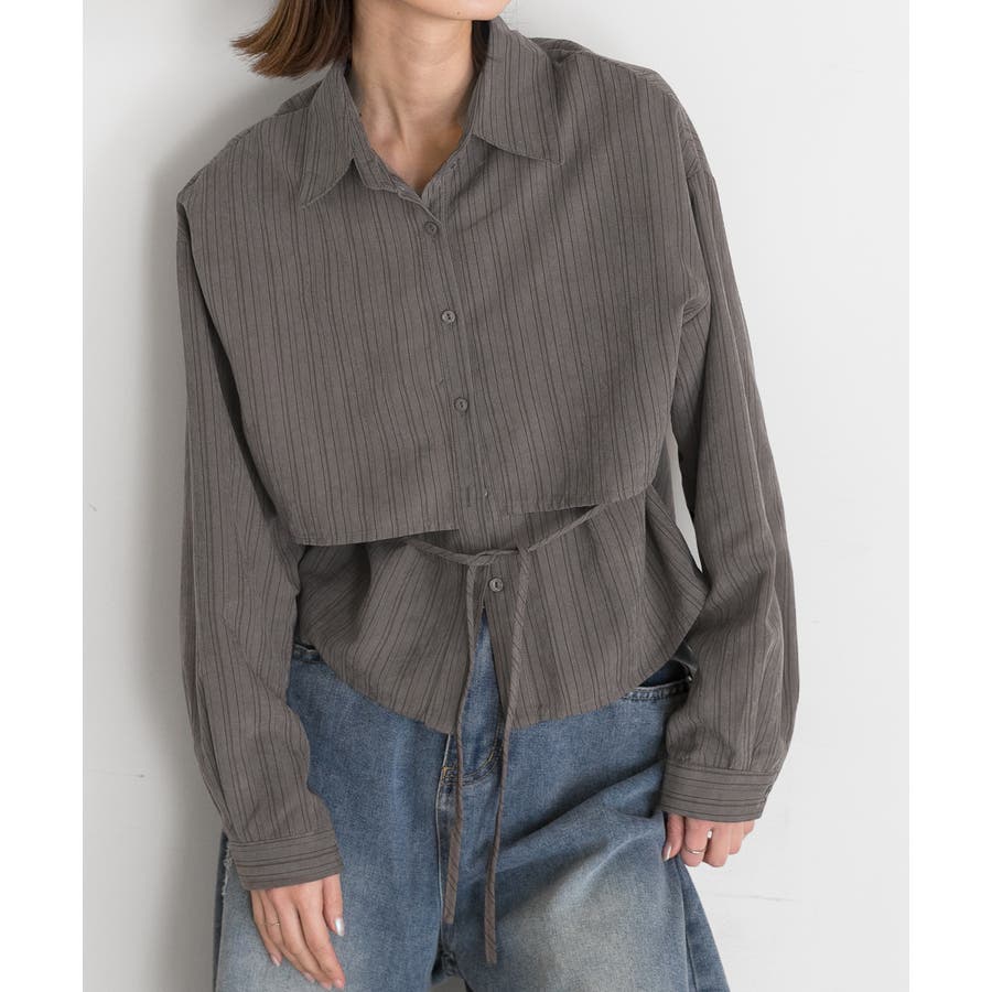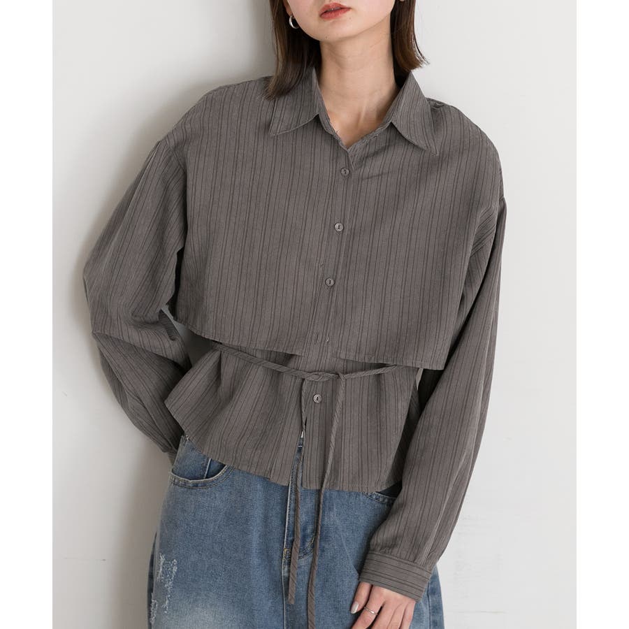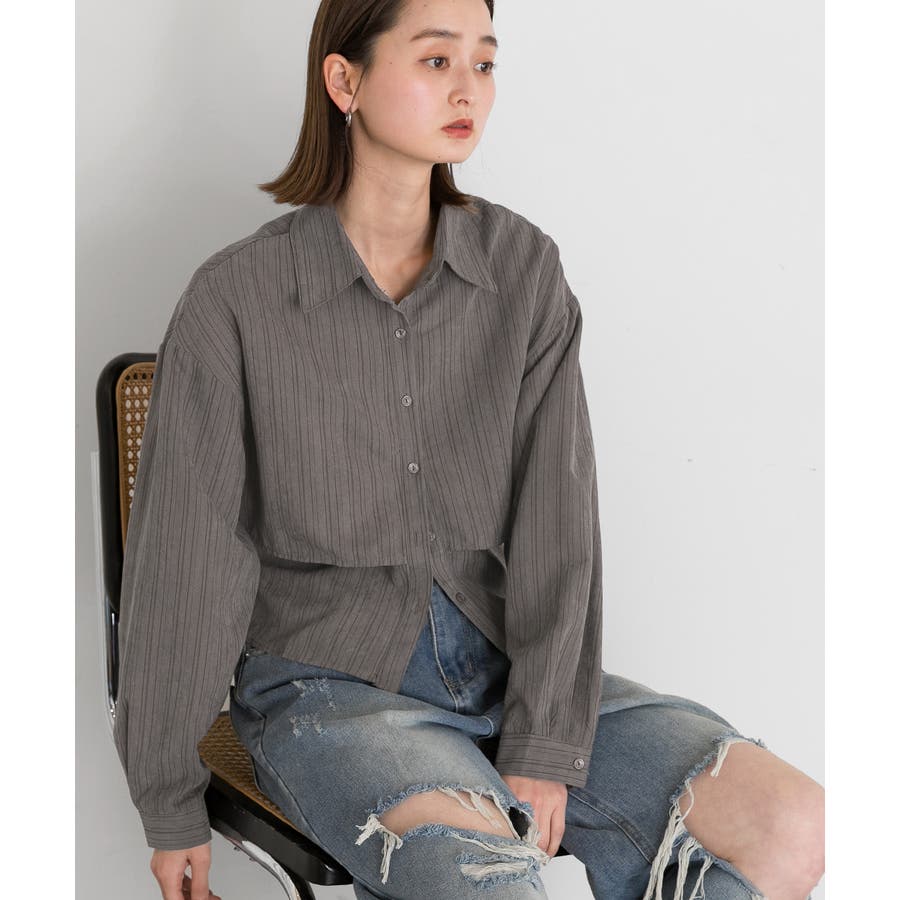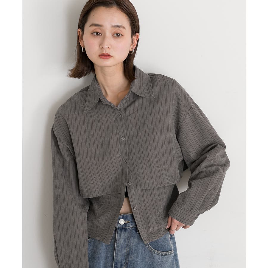 秋 秋コーデ 秋ファッション 秋服 夏 夏コーデ 夏ファッション 夏服 モード カジュアル カジュアルコーデ 大人 大人カジュアル オフィスカジュアル オフィス オフィスファッション オフィススタイル 韓国 韓国ファッション 韓国コーデ プチプラ プチプラファッション レディース Y2K 量産型 キレイめ 綺麗め きれい きちんと 長袖 長袖トップス 長袖シャツ シャツ ブラウス デザインシャツ レイヤード 重ね着 ショート クロップド ストライプ マルチストライプ 柄シャツ 個性的 グレー ライトブラウン