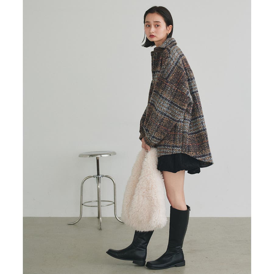 程よい厚みのブークレ生地とニュアンスカラーなチェック柄がシーズンムードを高めてくれる1着
