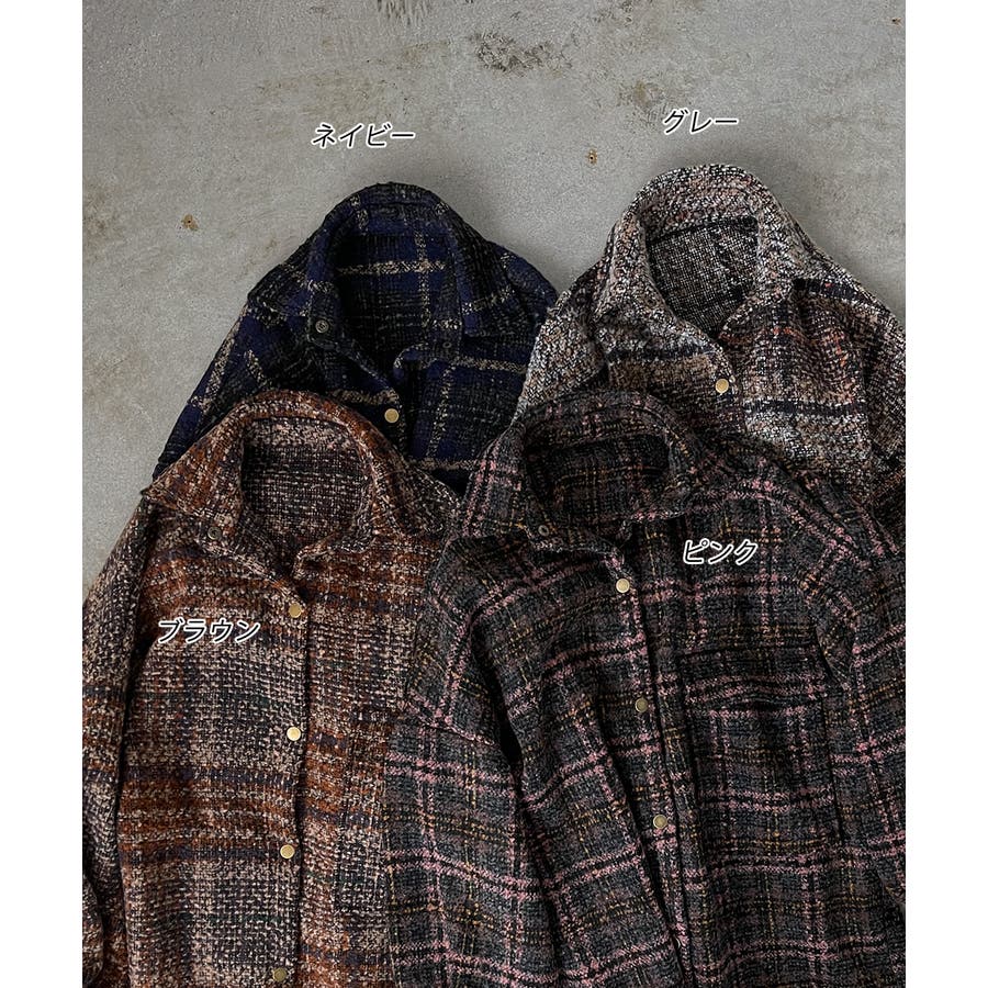 春 春コーデ 春ファッション 春服 冬 冬コーデ 冬ファッション 冬服 カジュアル カジュアルコーデ 大人 大人カジュアル オフィスカジュアル オフィス オフィスファッション オフィススタイル 韓国 韓国ファッション 韓国コーデ プチプラ プチプラファッション レディース Y2K 量産型 キレイめ 綺麗め きれい きちんと チェックシャツ チェック チェック柄 ブークレ ブークレー ブークレジャケット ブークレージャケット チェックジャケット チェック柄ジャケット オーバーシルエット ビッグシルエット ゆったり 大きめ オーバーサイズ ポケット ライトアウター チェックアウター チェック柄アウター ピンク ブラウン グレー ネイビー