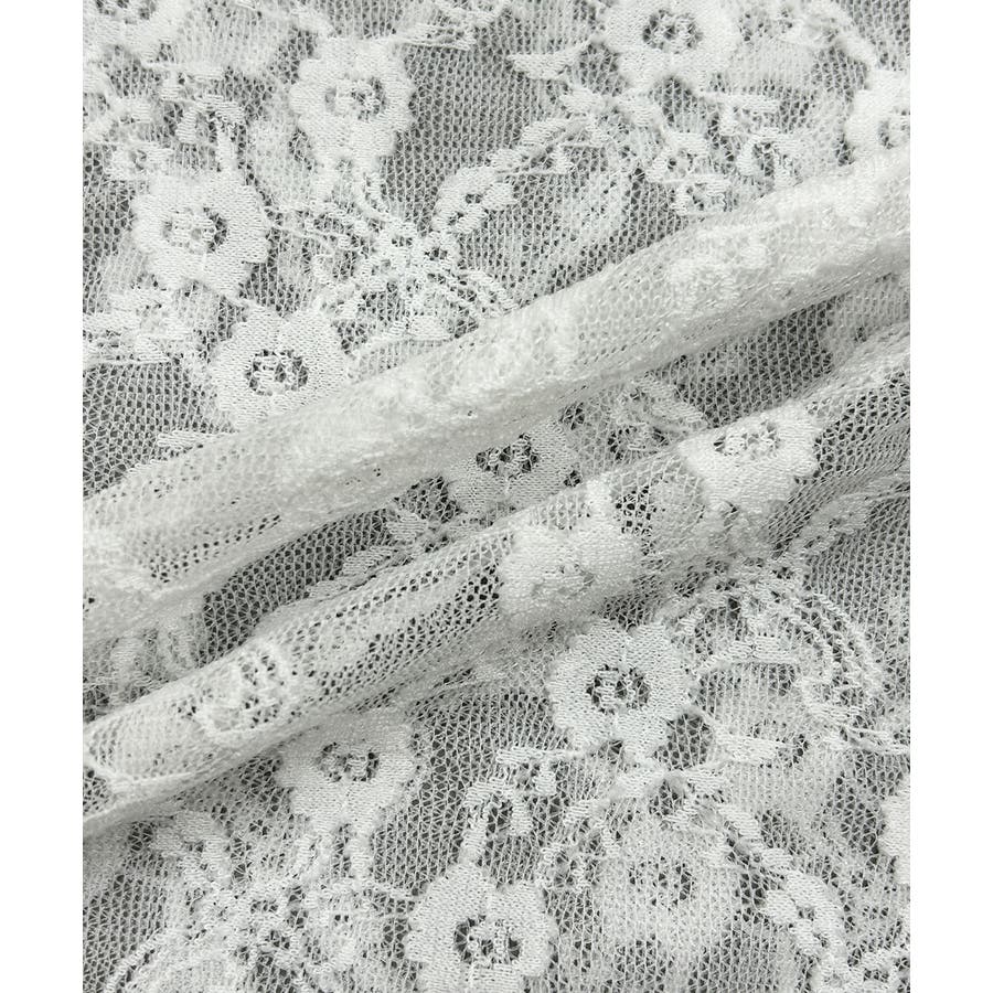 レースの透け感で露出を抑え、上品な仕上がりに。