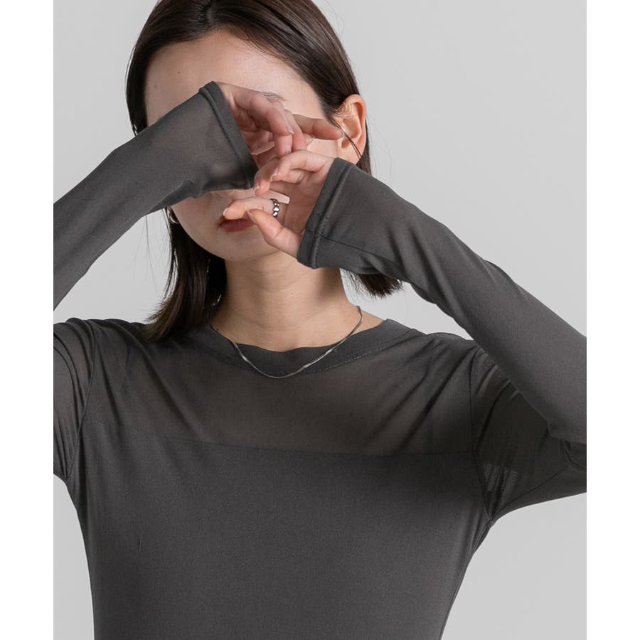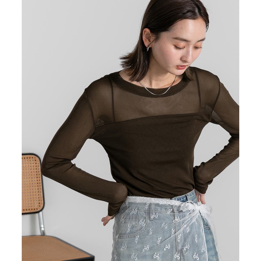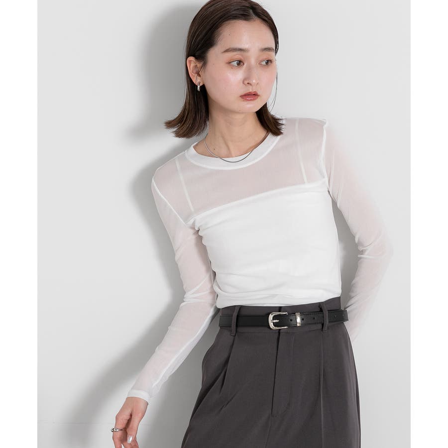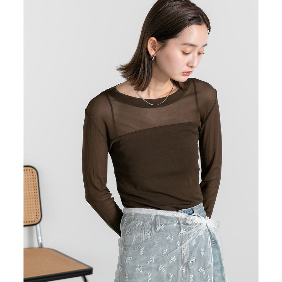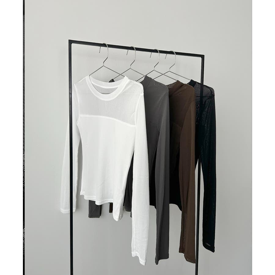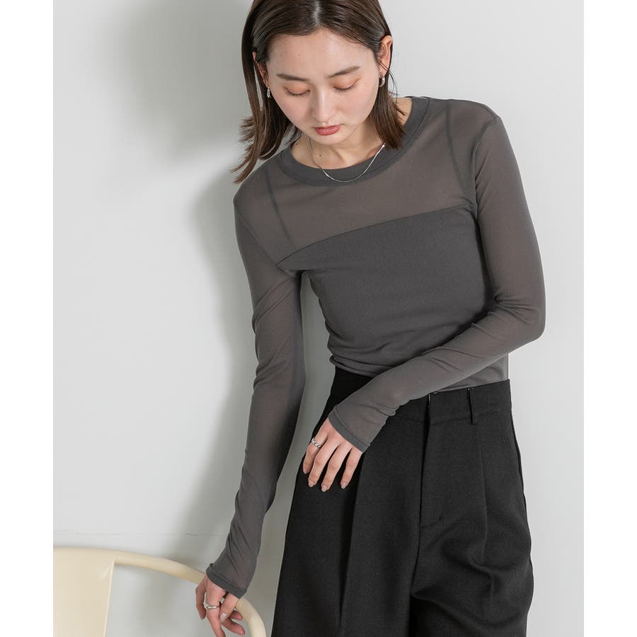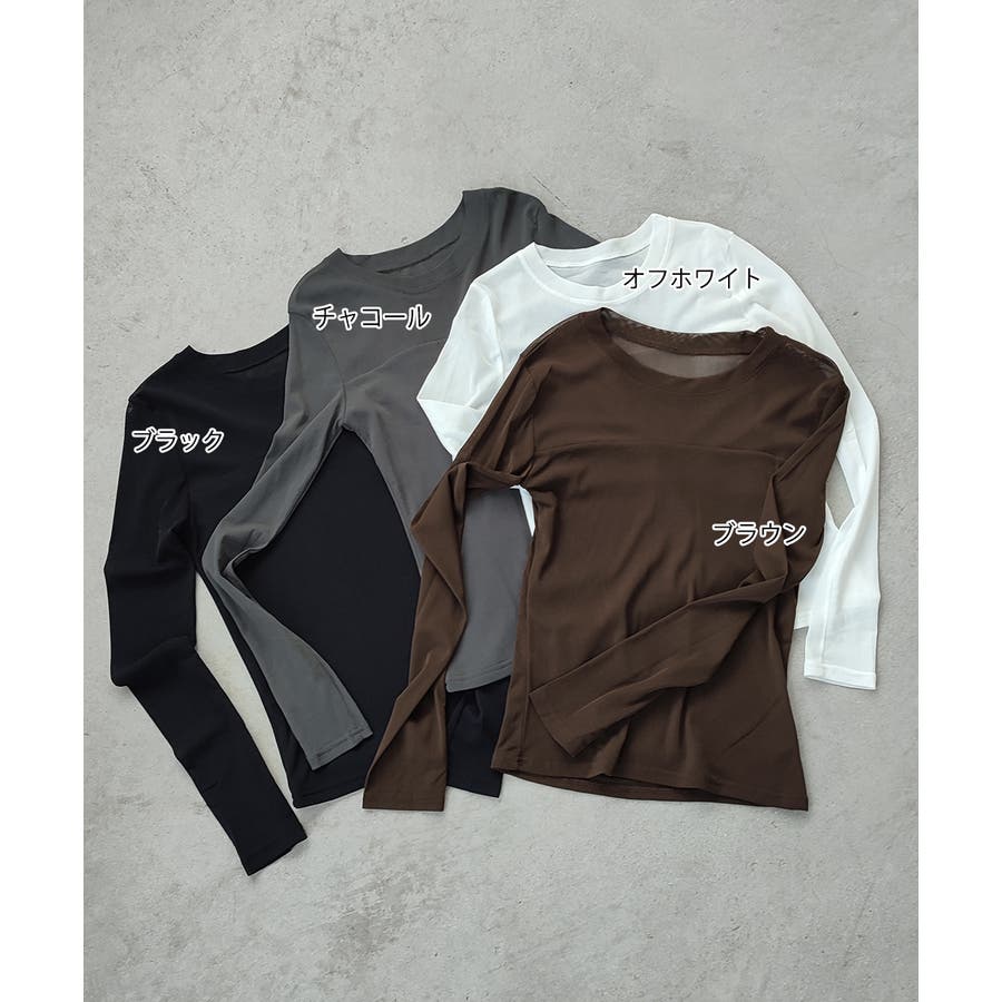 秋 秋コーデ 秋ファッション 秋服 夏 夏コーデ 夏ファッション 夏服 カジュアル カジュアルコーデ 大人 大人カジュアル オフィスカジュアル オフィス オフィスファッション オフィススタイル 韓国 韓国ファッション 韓国コーデ プチプラ プチプラファッション レディース Y2K 量産型 キレイめ 綺麗め きれい きちんと 長袖 長袖トップス 長袖プルオーバー カットソー Tシャツ ロンT トップス シースルー 透け感 シアー シアーブラウス シアートップス オフィスブラウス お呼ばれ 結婚式 パーティ 切替 切り替え 異素材 ストレッチ 伸縮性 薄手 無地 シンプル ベーシック 重ね着 レイヤード オフホワイト 白 チャコール グレー ブラック 黒 ブラウン
