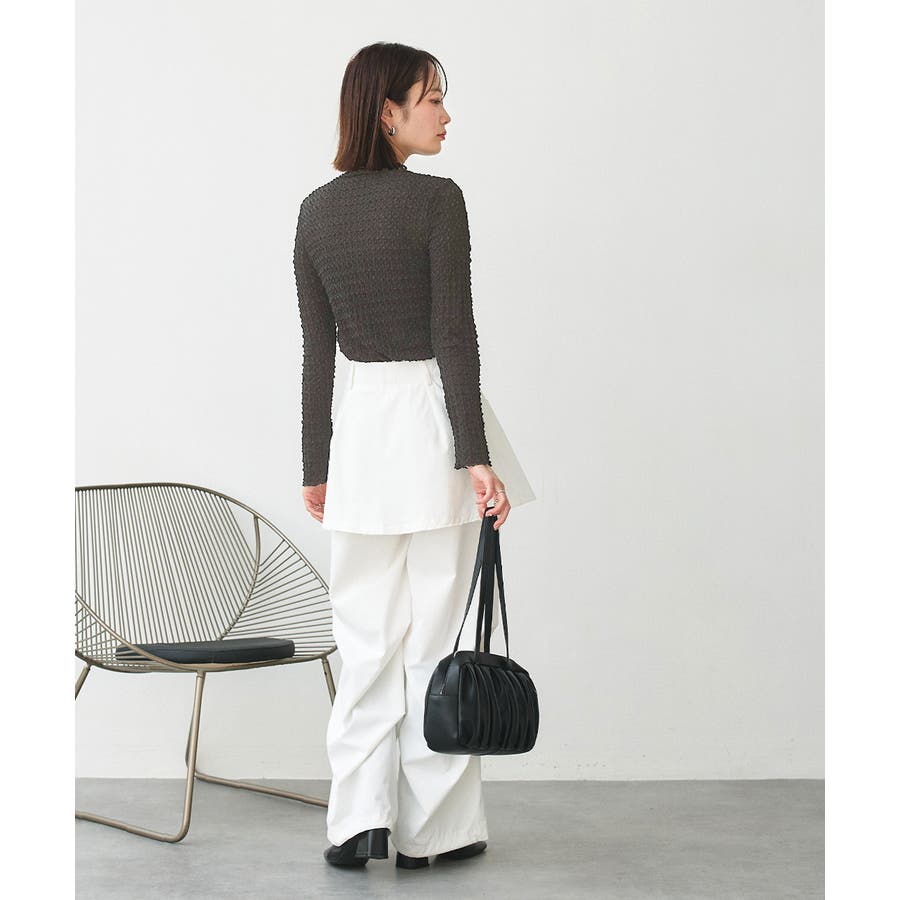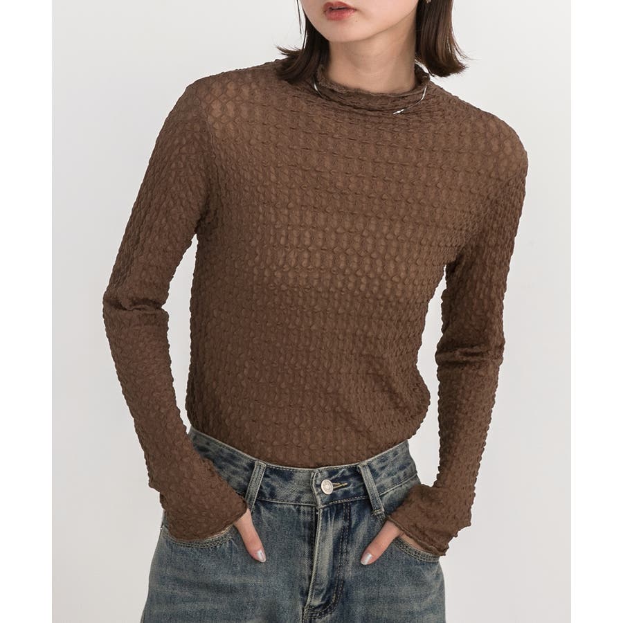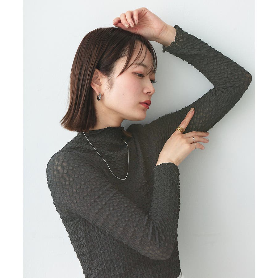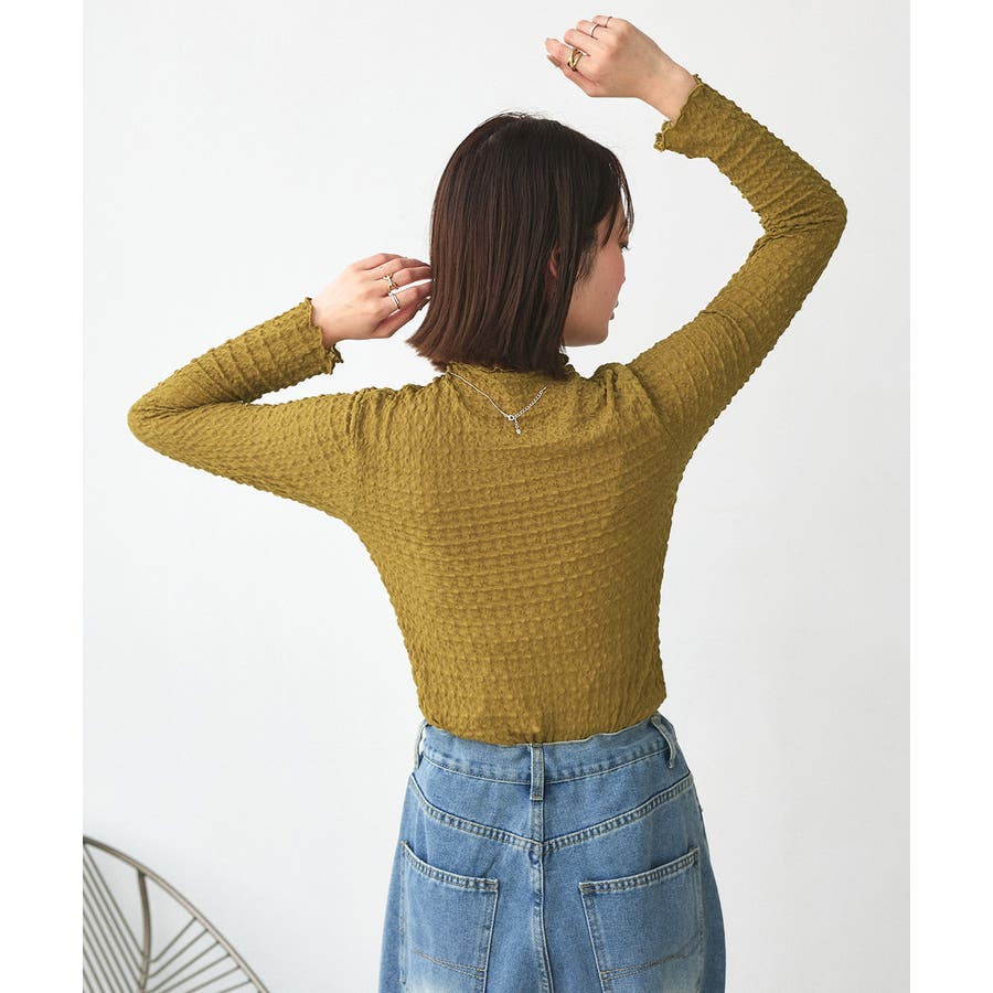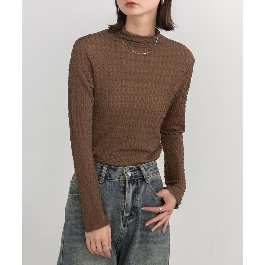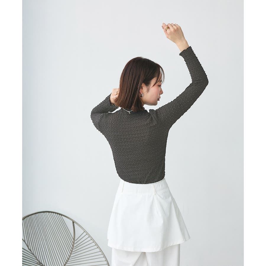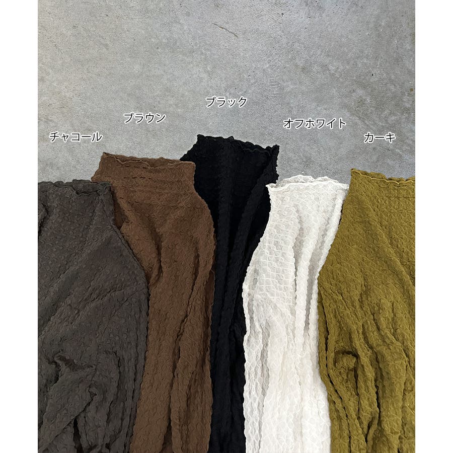 秋 秋コーデ 秋ファッション 秋服 夏 夏コーデ 夏ファッション 夏服 カジュアル カジュアルコーデ 大人 大人カジュアル オフィスカジュアル オフィス オフィスファッション オフィススタイル 韓国 韓国ファッション 韓国コーデ プチプラ プチプラファッション レディース Y2K 量産型 キレイめ 綺麗め きれい きちんと 長袖 長袖トップス ハイネック ハイネックトップス ハイネックカットソー ぽこぽこ ポップコーン レイヤード レイヤードコーデ 重ね着 ストレッチ ブラック 黒 オフホワイト 白 チャコールグレー チャコール グレー カーキ ブラウン