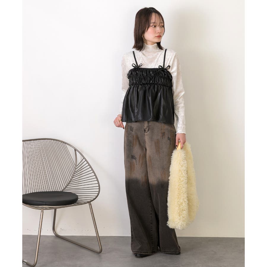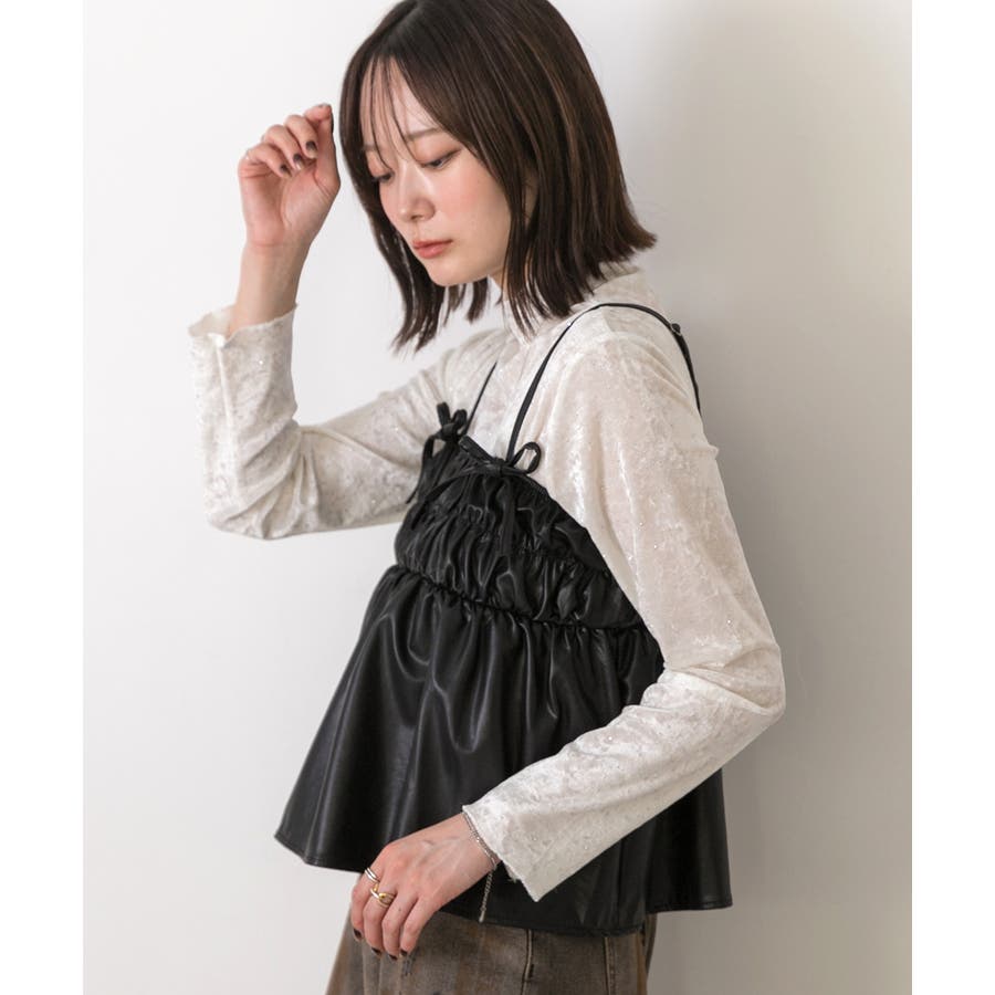ビスチェやワンピースとのレイヤードコーディネートでこなれ感のある雰囲気に。