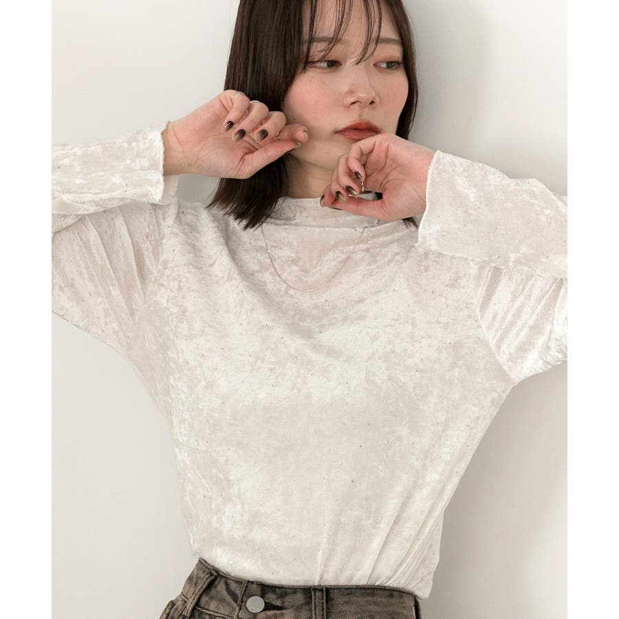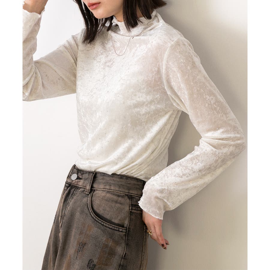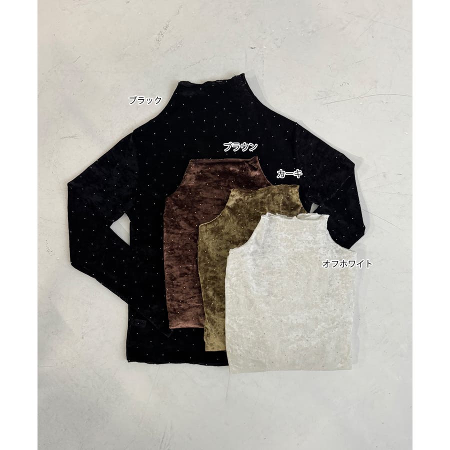 春 春コーデ 春ファッション 春服 冬 冬コーデ 冬ファッション 冬服 カジュアル カジュアルコーデ 大人 大人カジュアル オフィスカジュアル オフィス オフィスファッション オフィススタイル 韓国 韓国ファッション 韓国コーデ プチプラ プチプラファッション レディース Y2K 量産型 キレイめ 綺麗め きれい きちんと 長袖 長袖トップス シアー ベロア ラインストーン 重ね着 レイヤード レイヤー 透け感 透け シアートップス ベロアトップス ハイネック モックネック ドット オフホワイト 白 黒 ブラック ブラウン カーキ