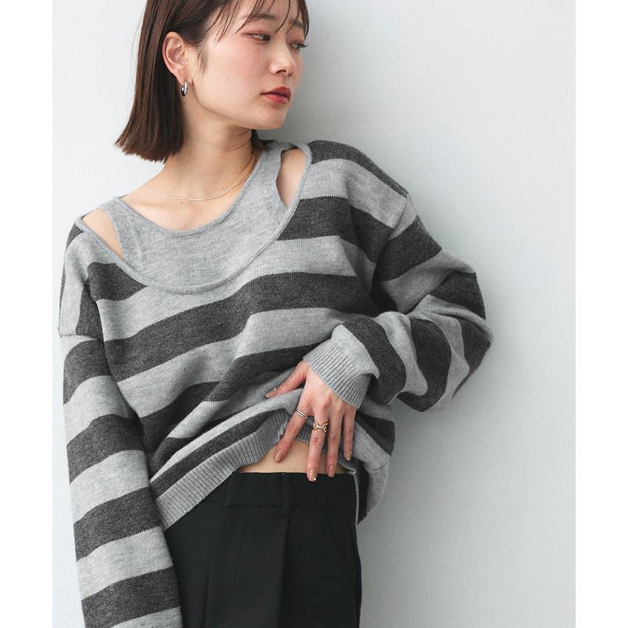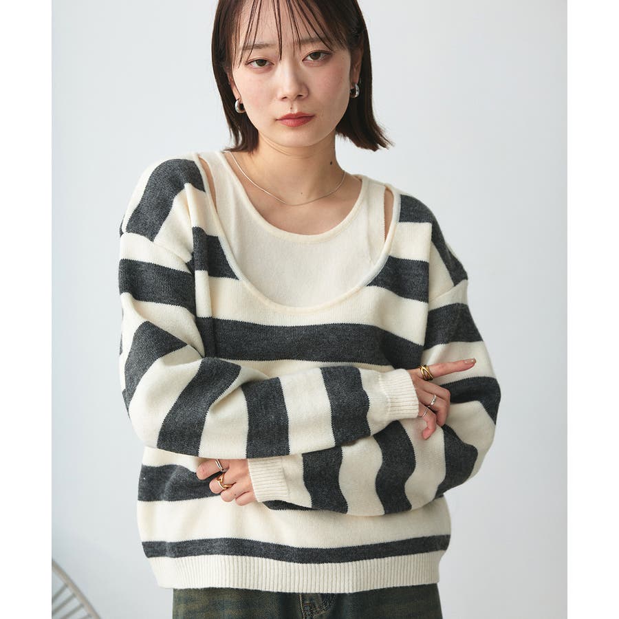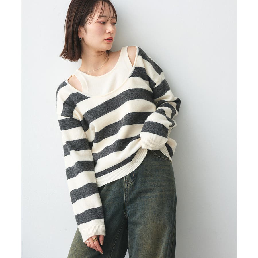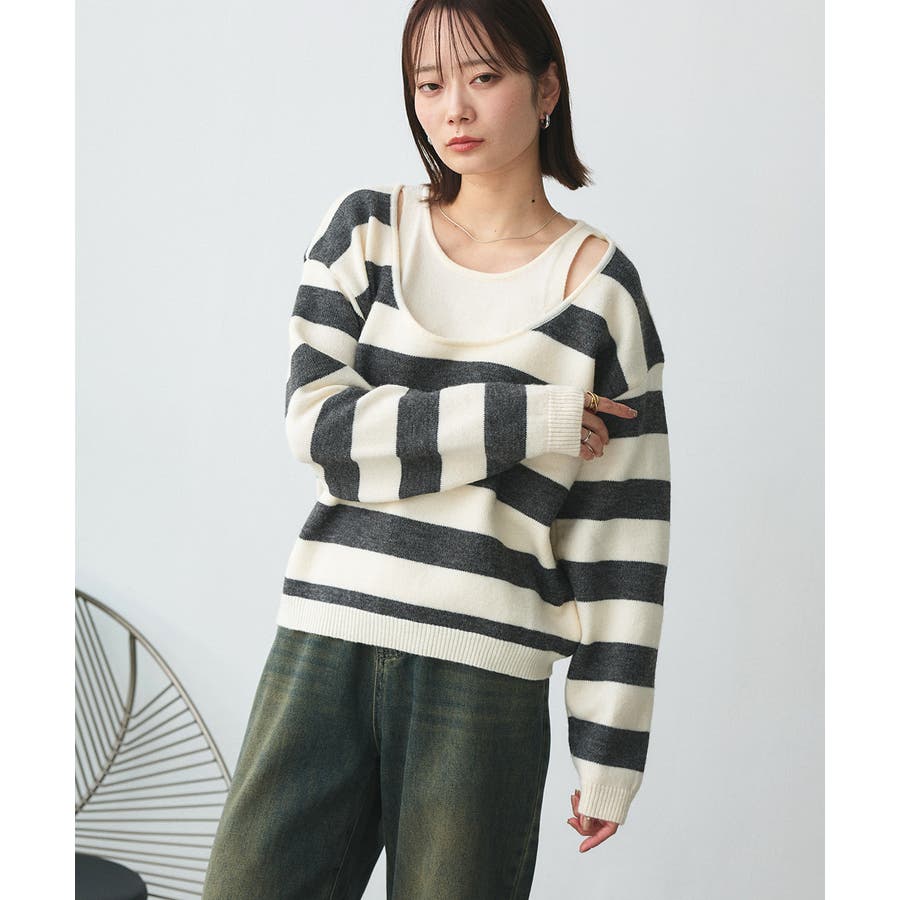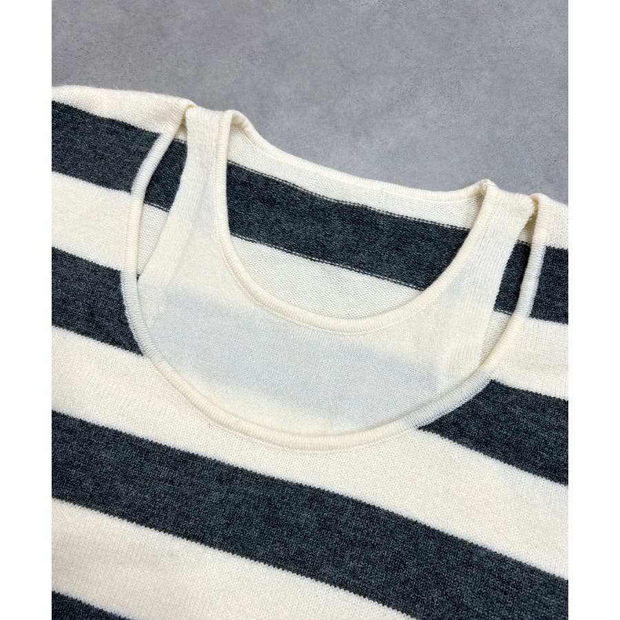 春 春コーデ 春ファッション 春服 夏 夏コーデ 夏ファッション 夏服 秋服 冬服 秋ファッション 冬ファッション カジュアル カジュアルコーデ 大人 大人カジュアル オフィスカジュアル オフィス オフィスファッション オフィススタイル 韓国 韓国ファッション 韓国コーデ プチプラ プチプラファッション レディース Y2K 量産型 キレイめ 綺麗め きれい きちんと 長袖 長袖トップス 長袖ニット ニット ニットトップス ボーダートップス ボーダー 柄アイテム 柄トップス ゆるニット 柄ニット ニットプルオーバー オーバーサイズ 太ボーダー レイヤード風 レイヤード 重ね着 ショルダースリット スリット ふわふわ オフホワイト 白 グレー