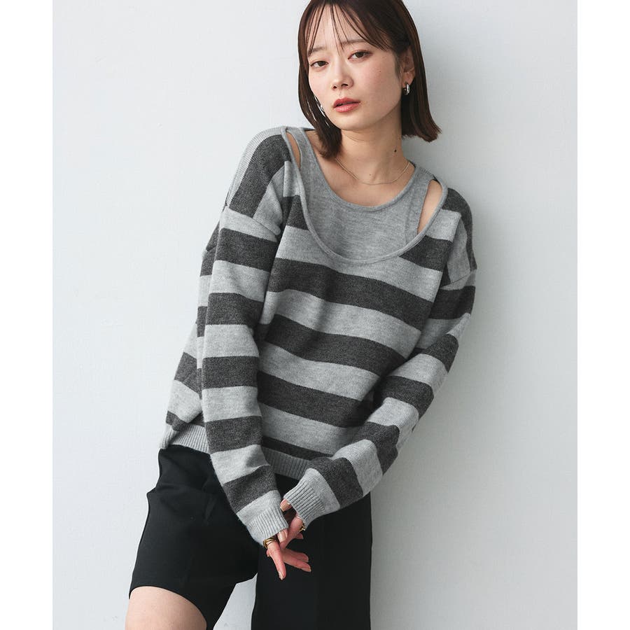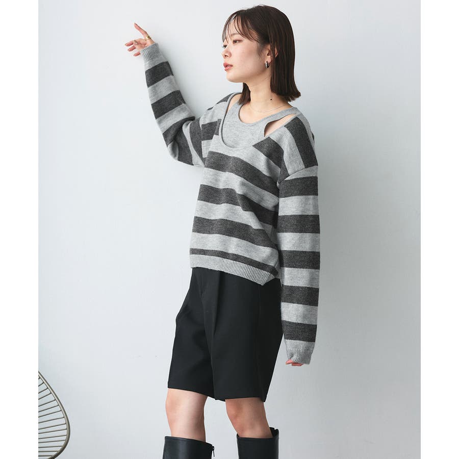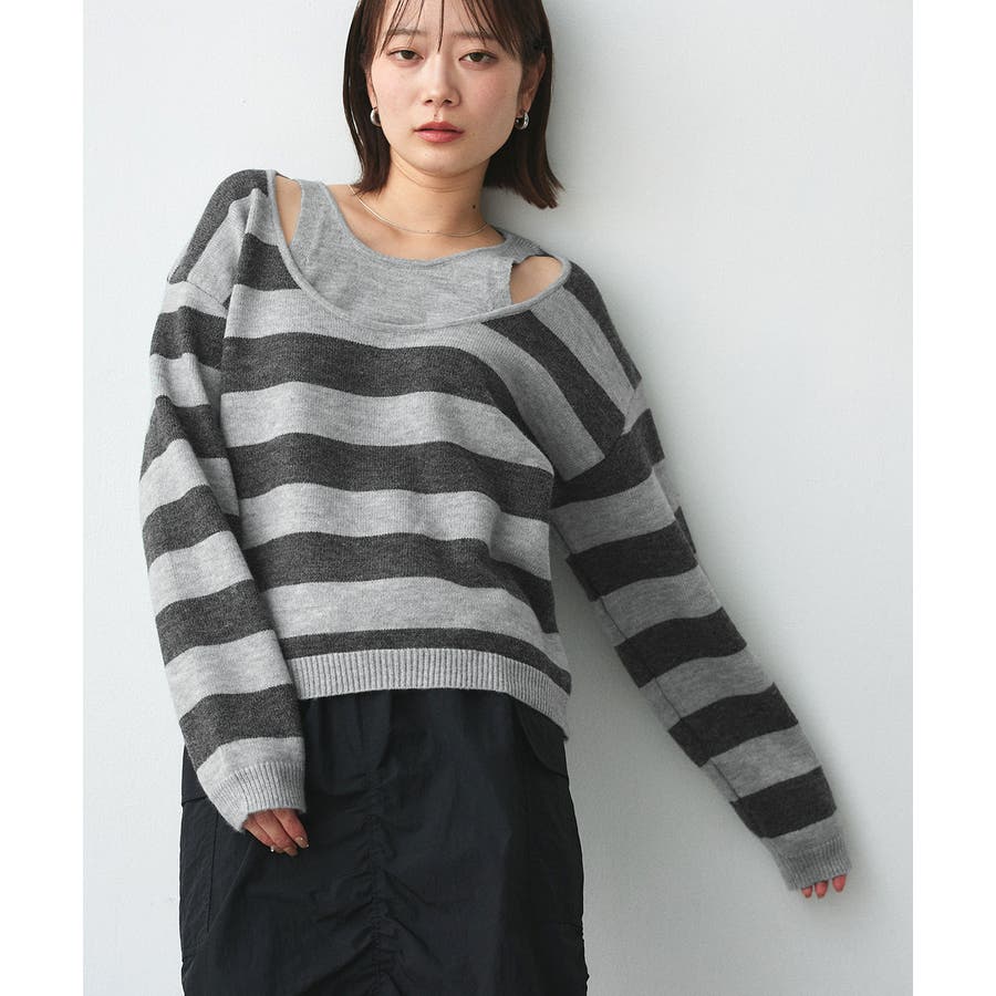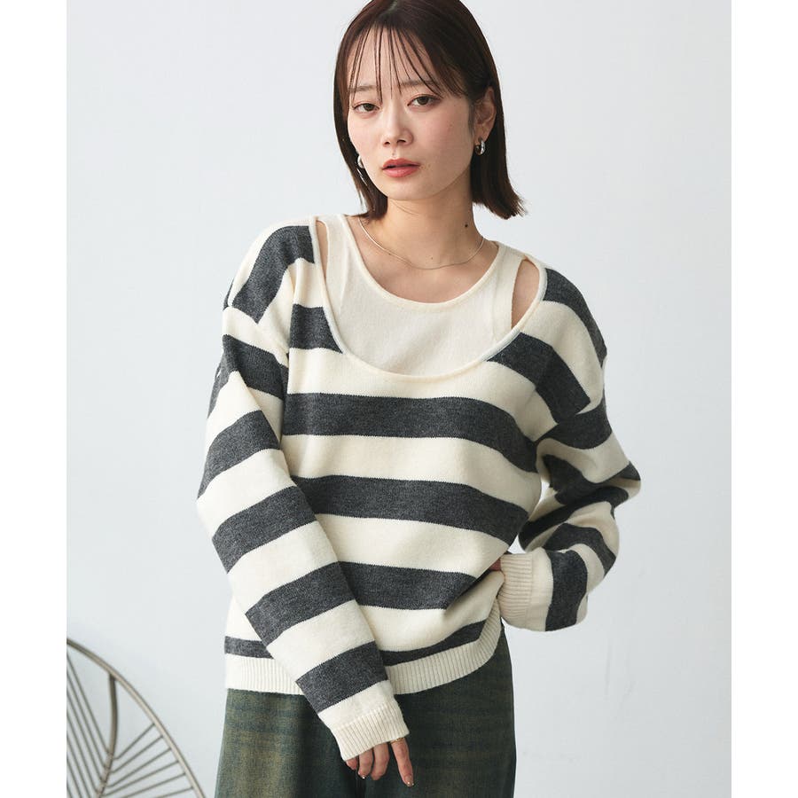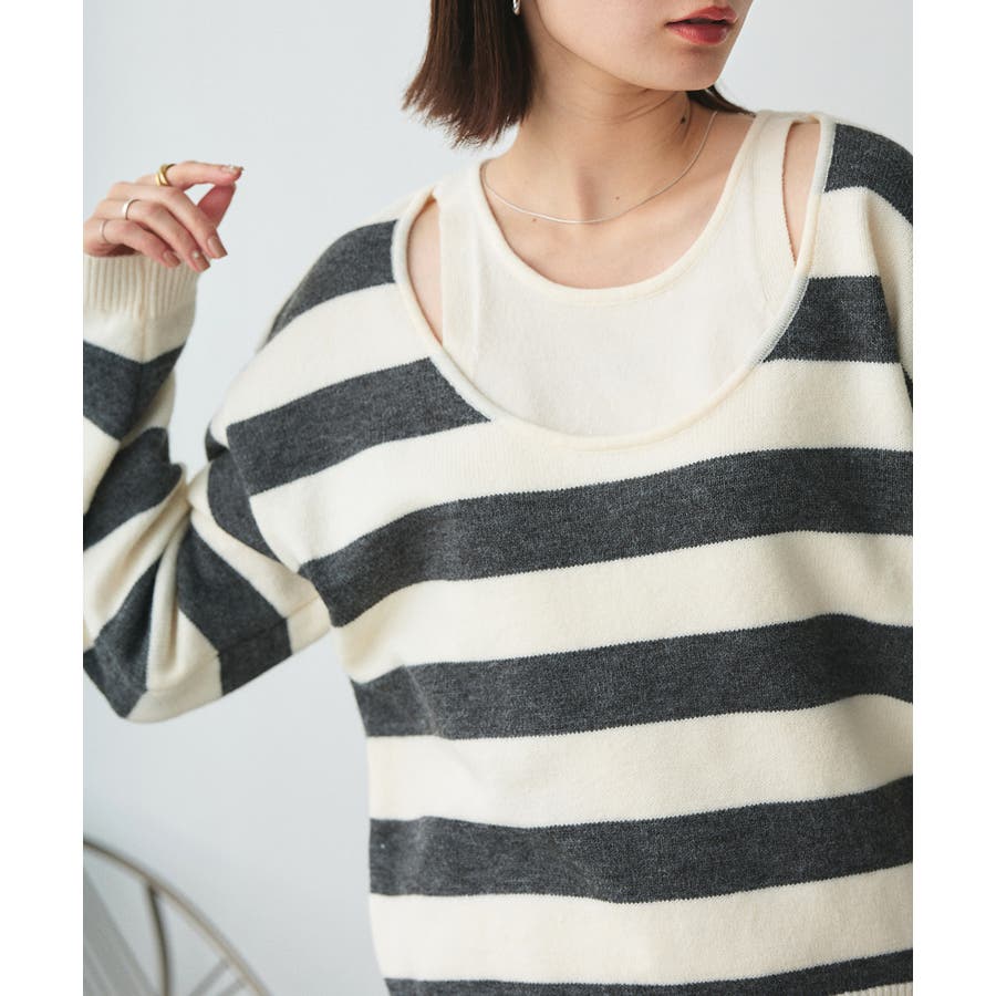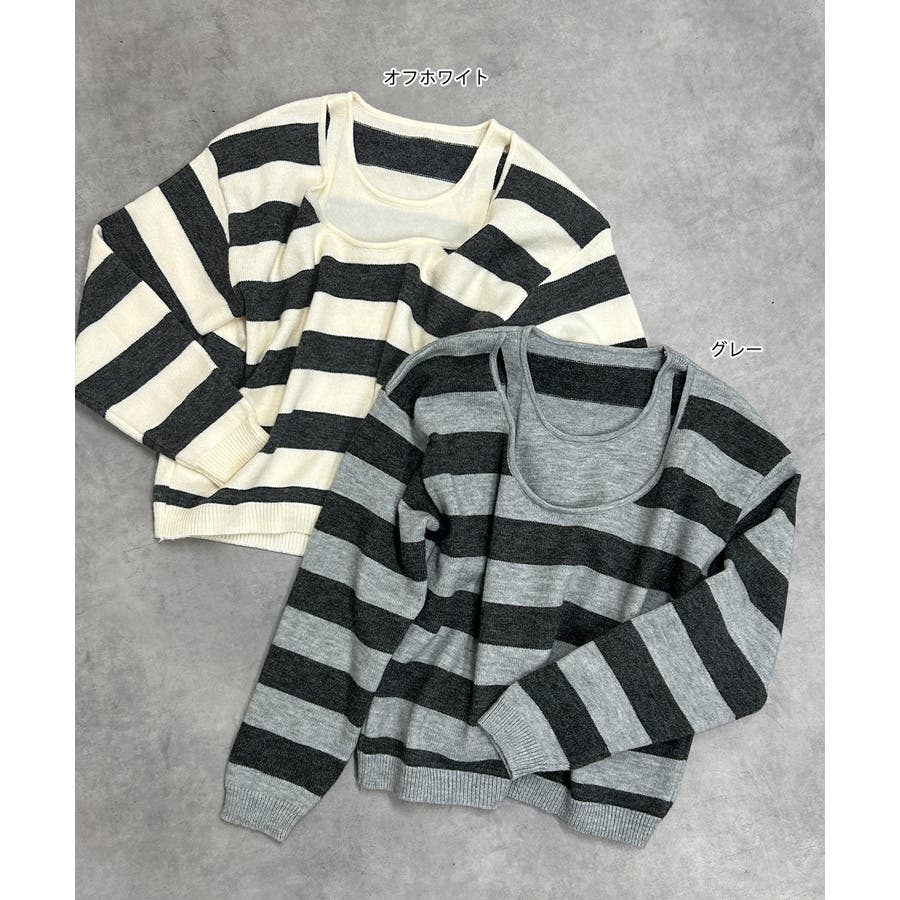 春 春コーデ 春ファッション 春服 夏 夏コーデ 夏ファッション 夏服 秋服 冬服 秋ファッション 冬ファッション カジュアル カジュアルコーデ 大人 大人カジュアル オフィスカジュアル オフィス オフィスファッション オフィススタイル 韓国 韓国ファッション 韓国コーデ プチプラ プチプラファッション レディース Y2K 量産型 キレイめ 綺麗め きれい きちんと 長袖 長袖トップス 長袖ニット ニット ニットトップス ボーダートップス ボーダー 柄アイテム 柄トップス ゆるニット 柄ニット ニットプルオーバー オーバーサイズ 太ボーダー レイヤード風 レイヤード 重ね着 ショルダースリット スリット ふわふわ オフホワイト 白 グレー