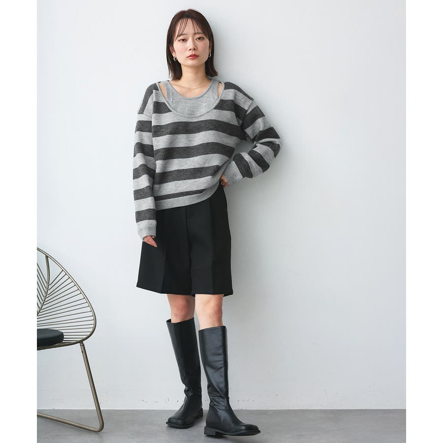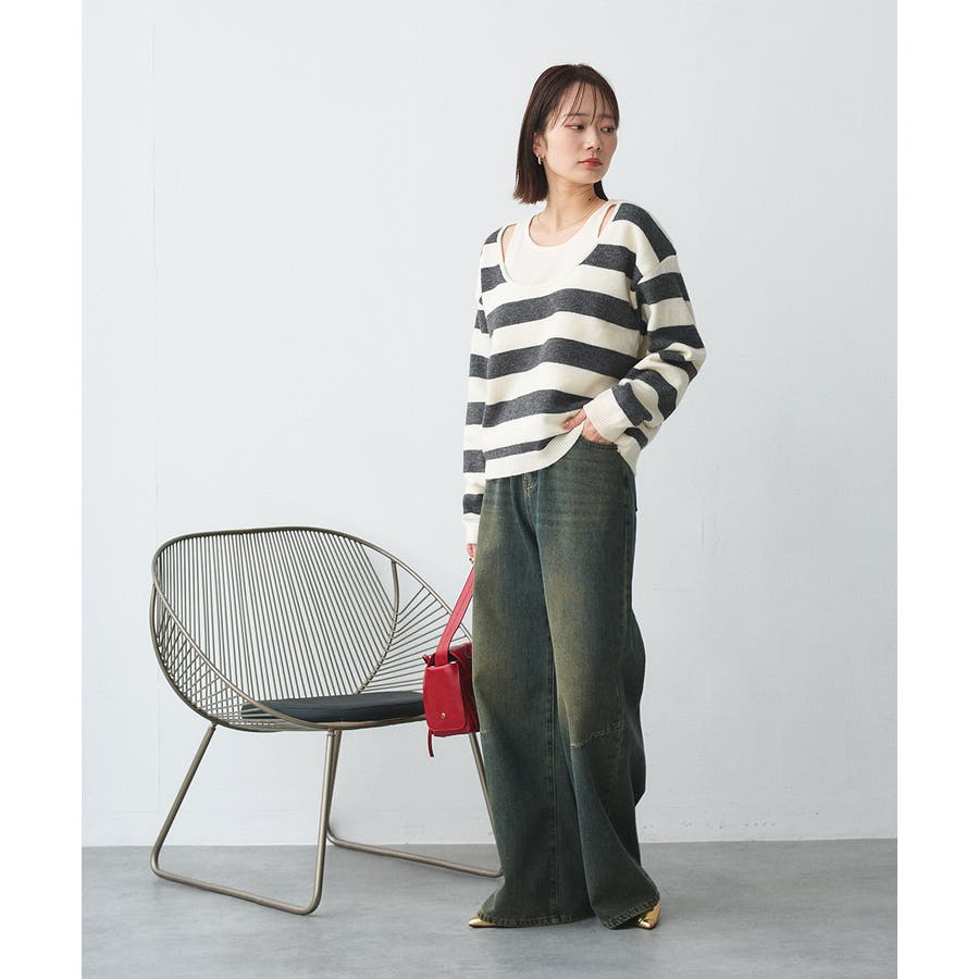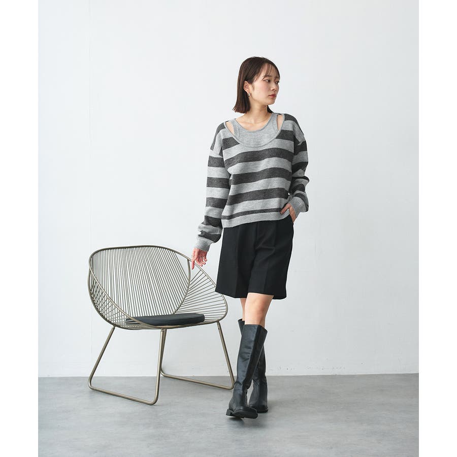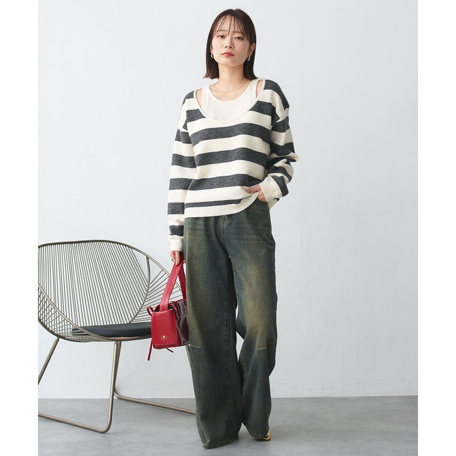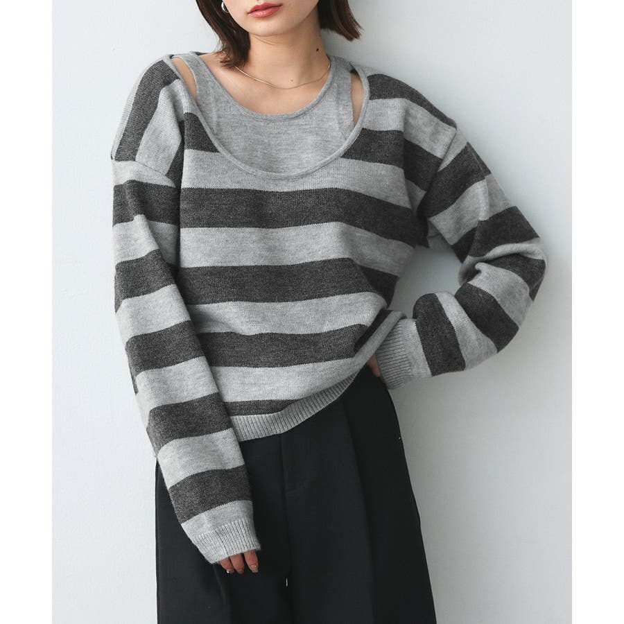 春 春コーデ 春ファッション 春服 夏 夏コーデ 夏ファッション 夏服 秋服 冬服 秋ファッション 冬ファッション カジュアル カジュアルコーデ 大人 大人カジュアル オフィスカジュアル オフィス オフィスファッション オフィススタイル 韓国 韓国ファッション 韓国コーデ プチプラ プチプラファッション レディース Y2K 量産型 キレイめ 綺麗め きれい きちんと 長袖 長袖トップス 長袖ニット ニット ニットトップス ボーダートップス ボーダー 柄アイテム 柄トップス ゆるニット 柄ニット ニットプルオーバー オーバーサイズ 太ボーダー レイヤード風 レイヤード 重ね着 ショルダースリット スリット ふわふわ オフホワイト 白 グレー