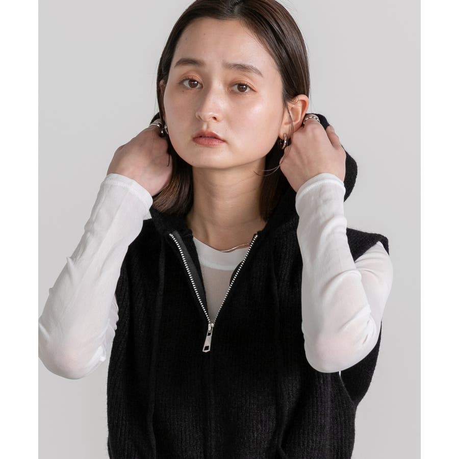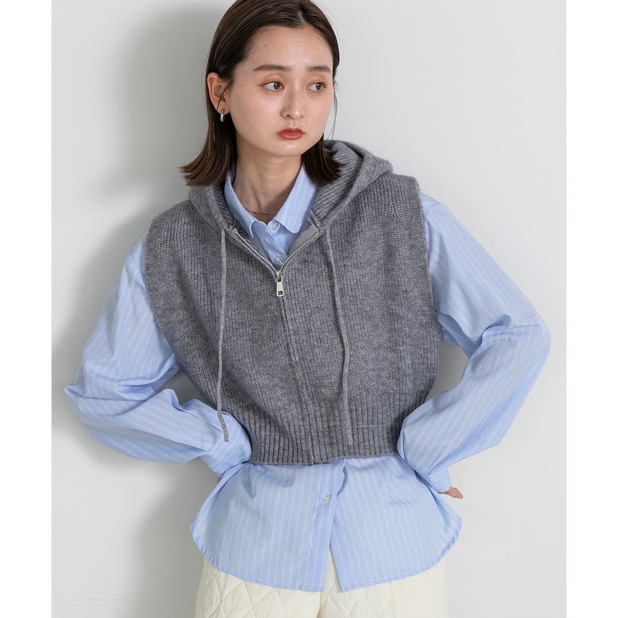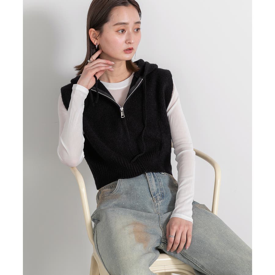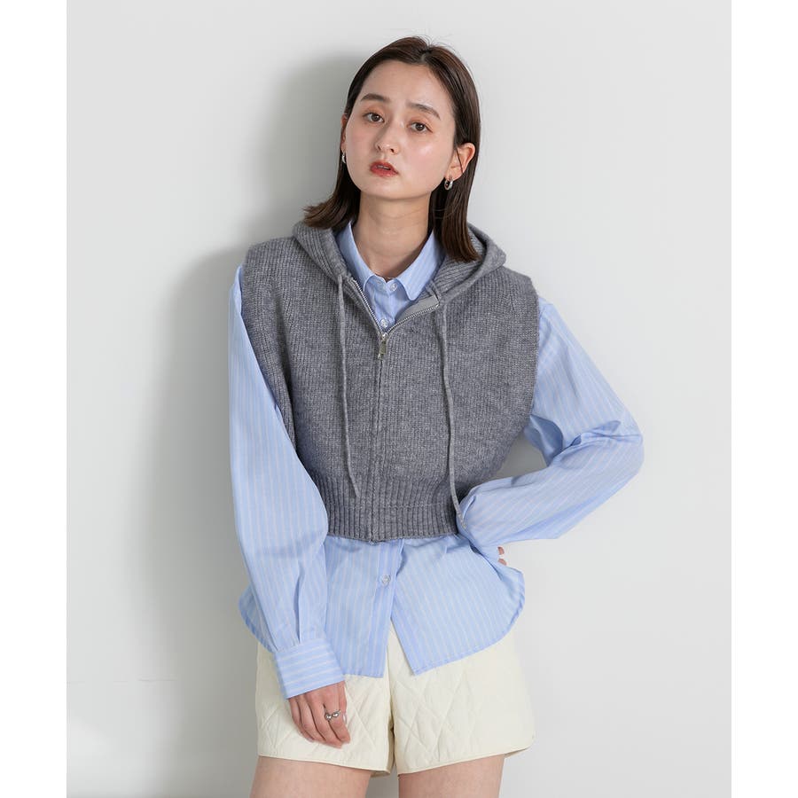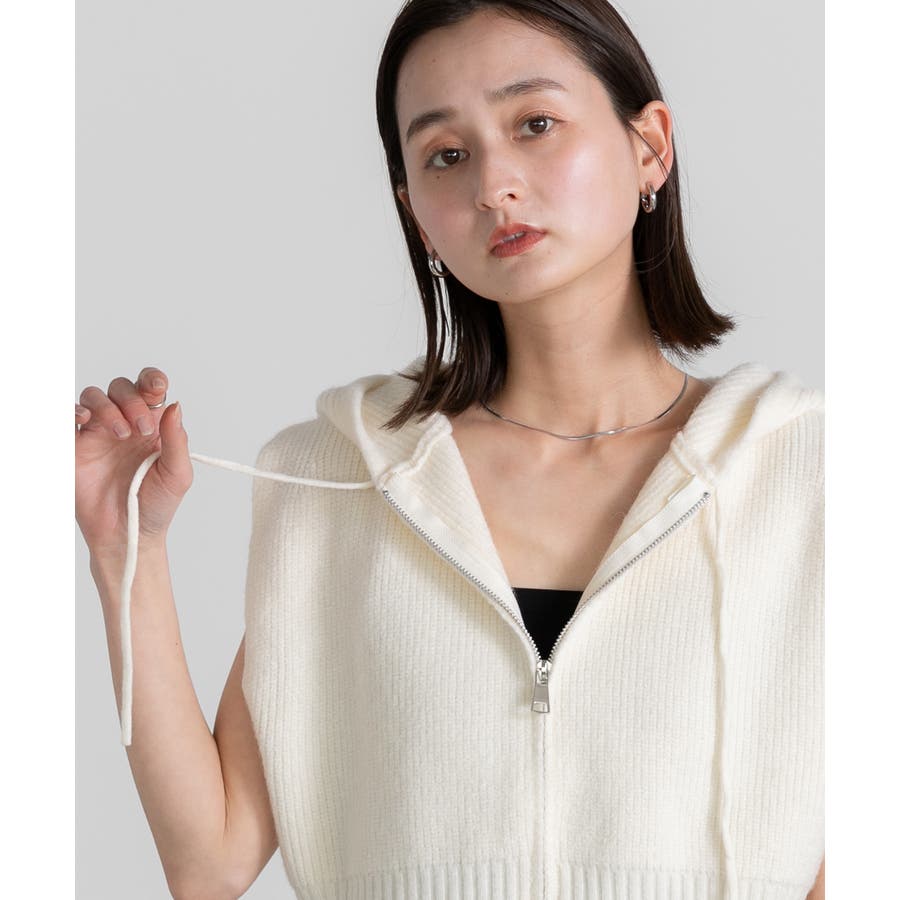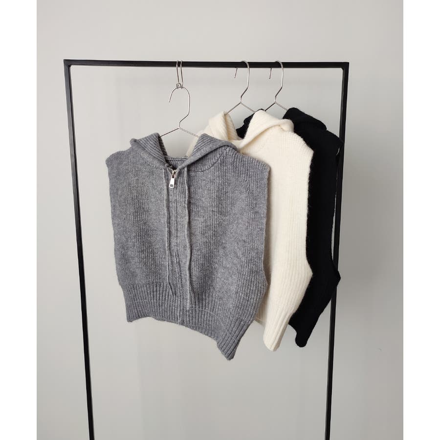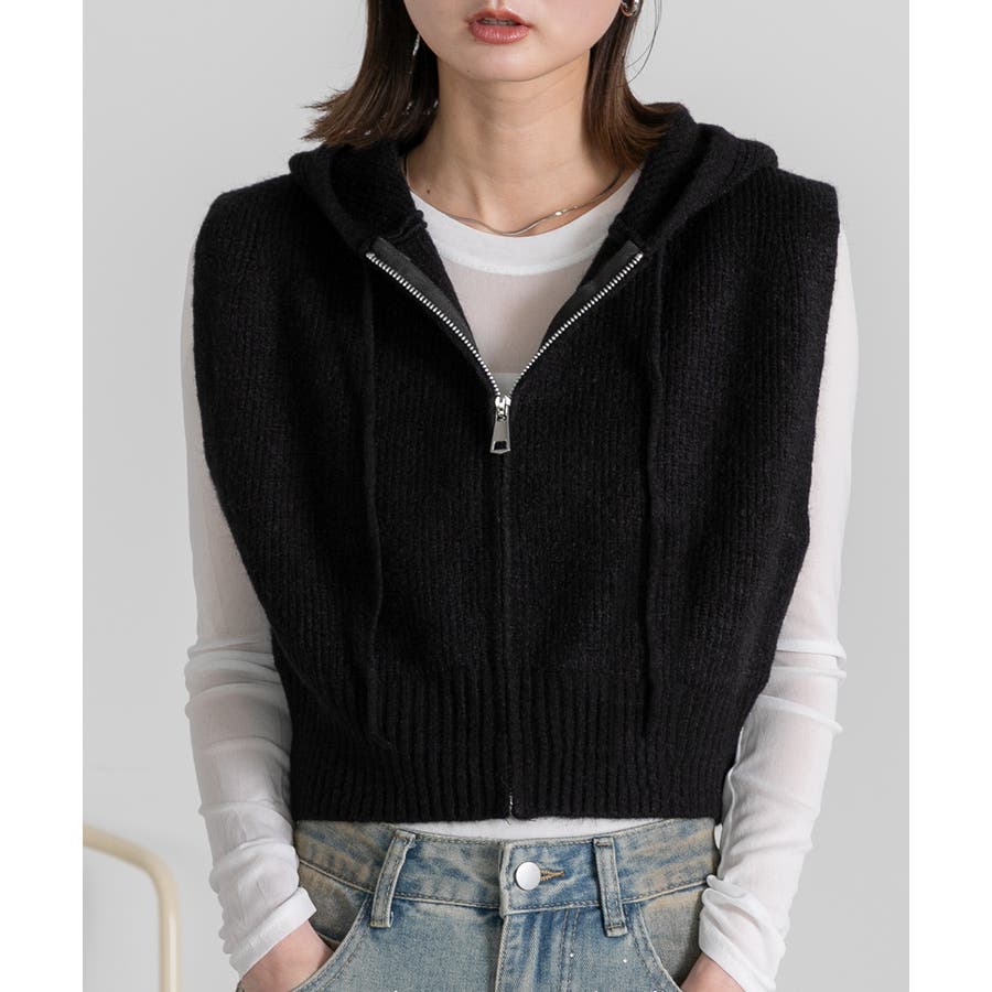 春 春コーデ 春ファッション 春服 夏 夏ファッション 夏服 カジュアル カジュアルコーデ 大人 大人カジュアル オフィスカジュアル オフィス オフィスファッション オフィススタイル 韓国 韓国ファッション 韓国コーデ プチプラ プチプラファッション レディース Y2K 量産型 キレイめ 綺麗め きれい きちんと ニット ベスト ニットベスト ジレ チョッキ ノースリーブ ジップベスト フード付き フーディ 無地 シンプル ショート丈 クロップド丈 重ね着 レイヤードコーデ 短め オフホワイト 白 グレー ブラック 黒