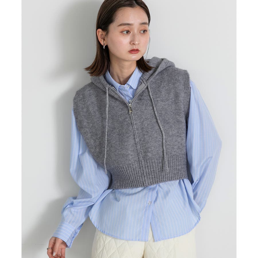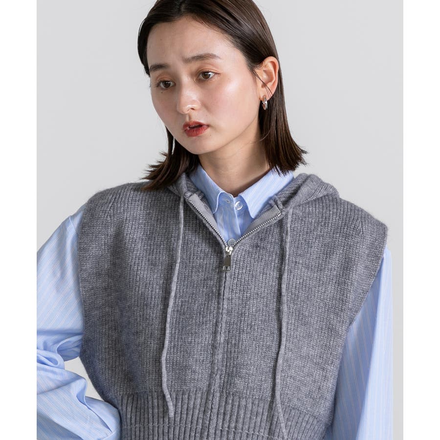 フード付きジップアップニットベスト