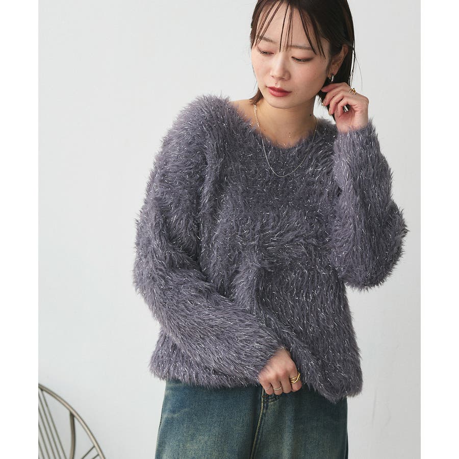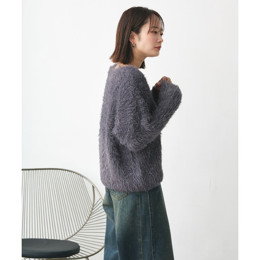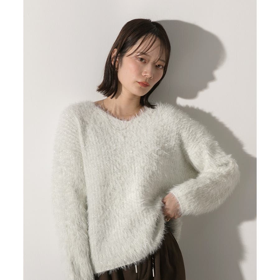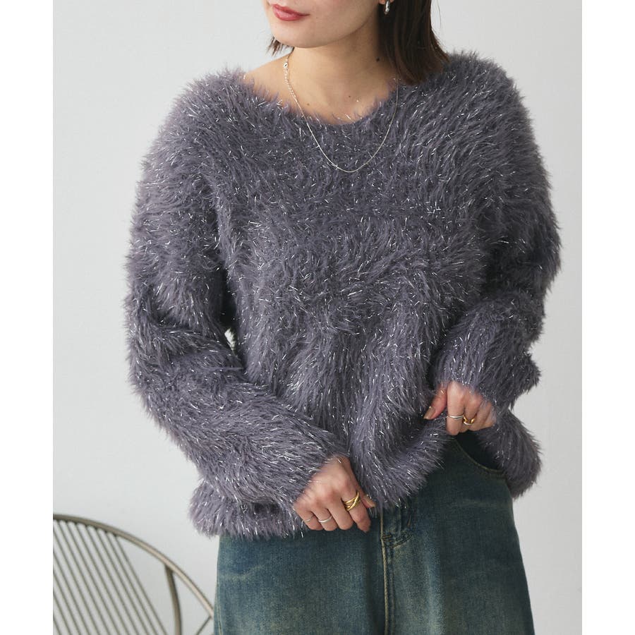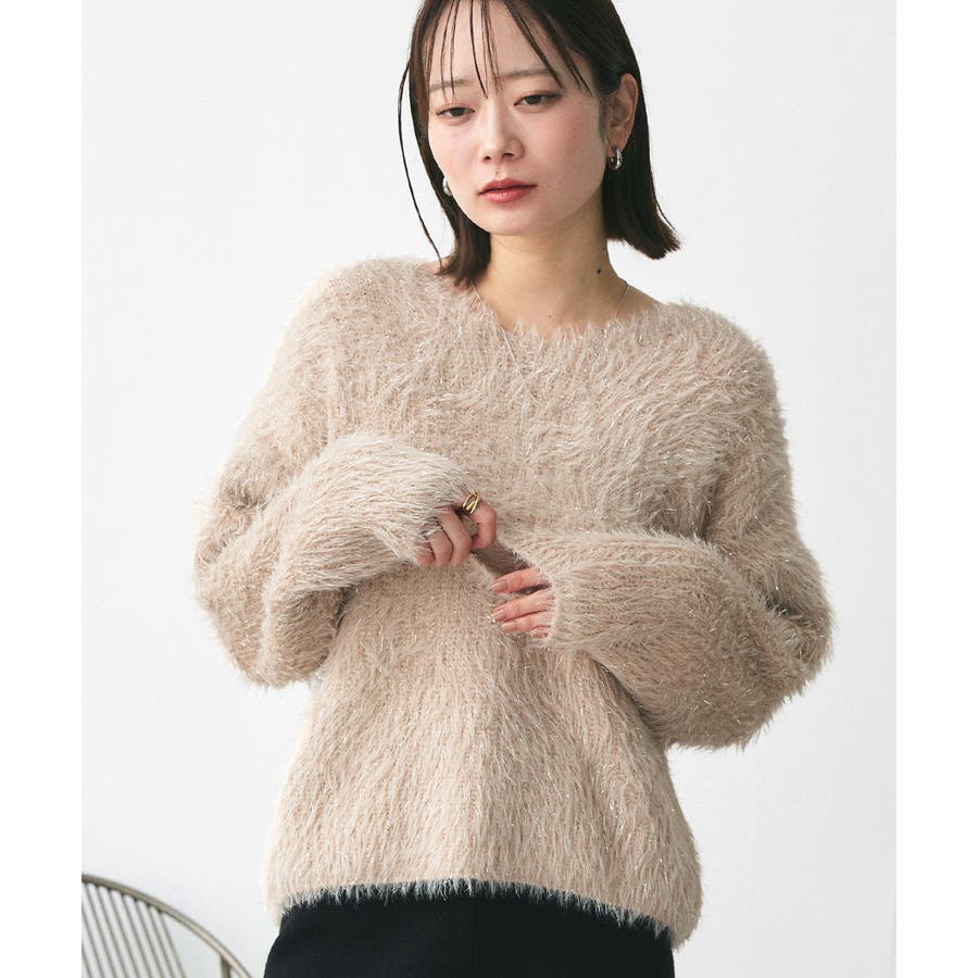 ふんわりとしたシャギーに、きらきらとしたラメ糸を使用した存在感のあるニット