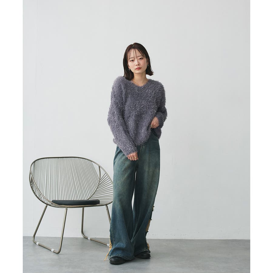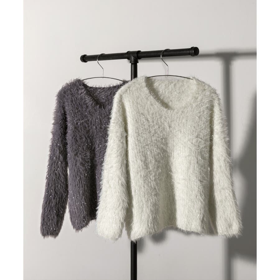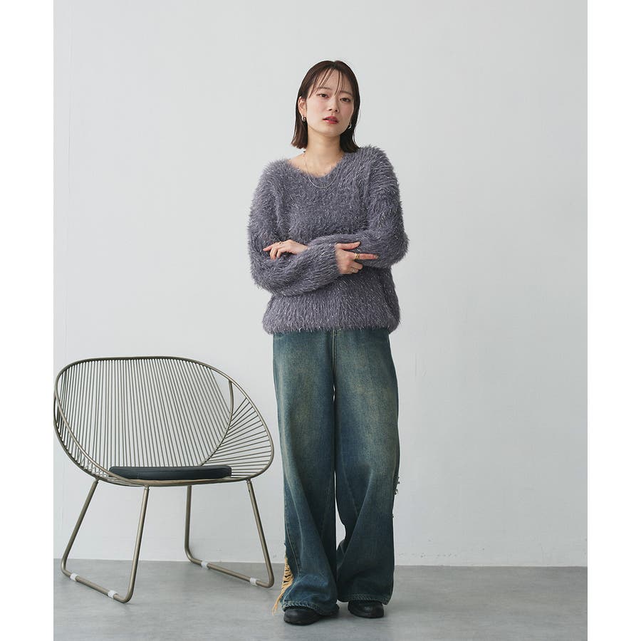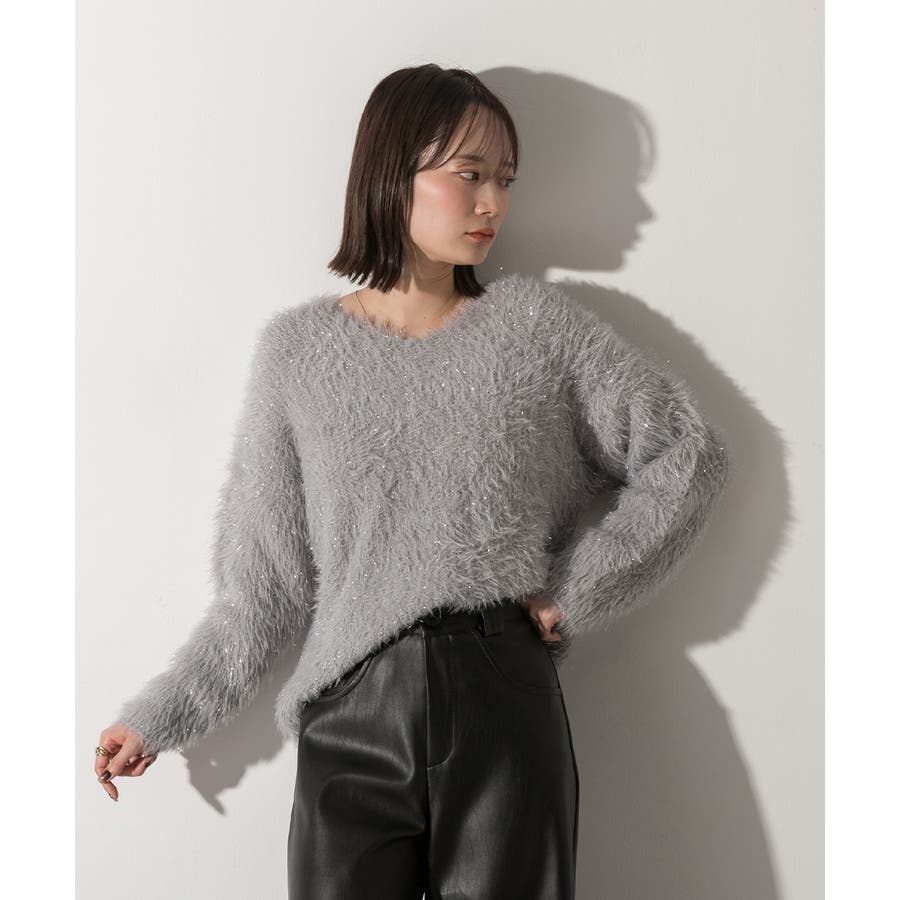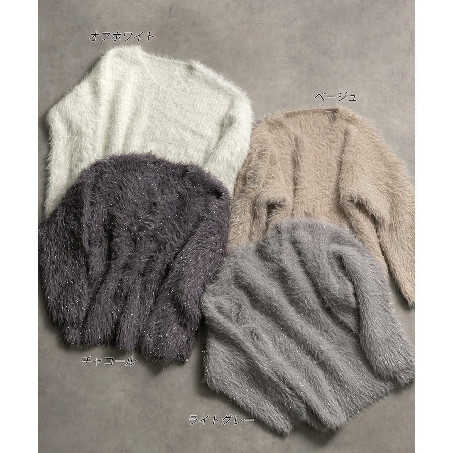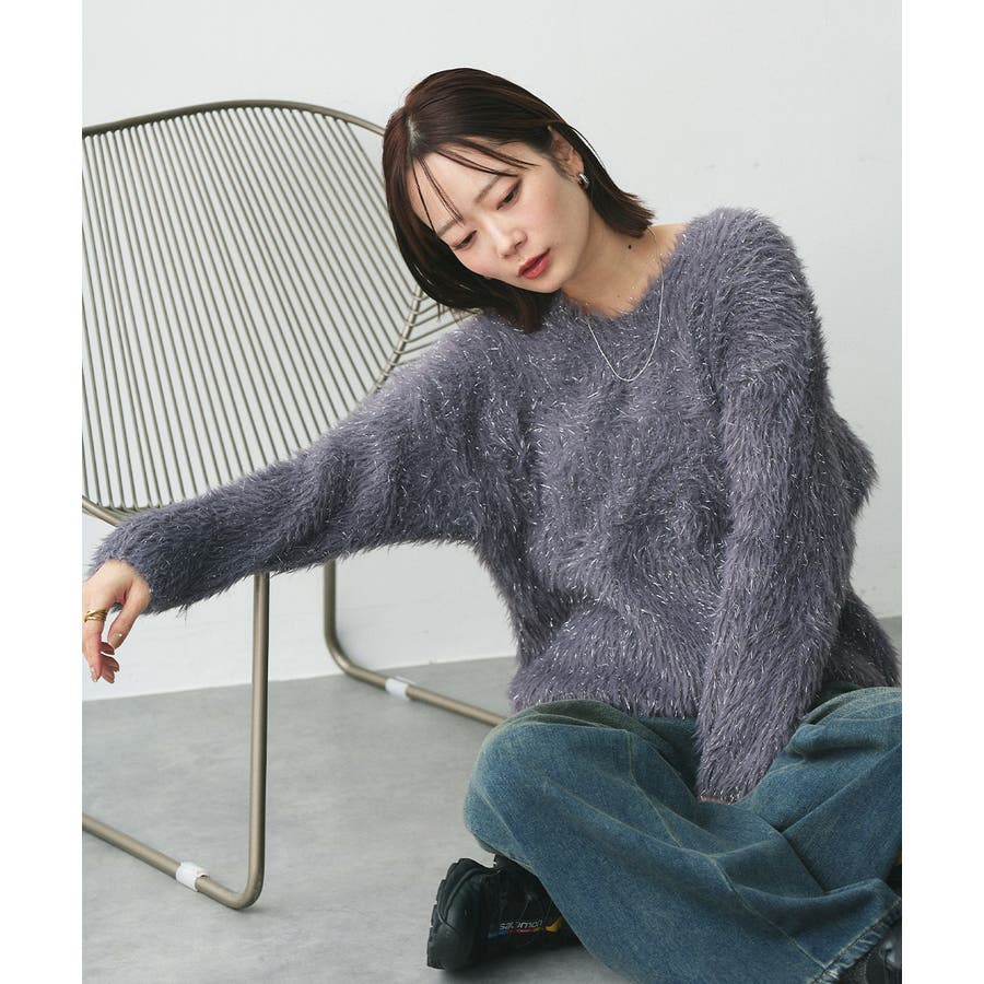 ふんわりとしたシャギーに、きらきらとしたラメ糸を使用した存在感のあるニット