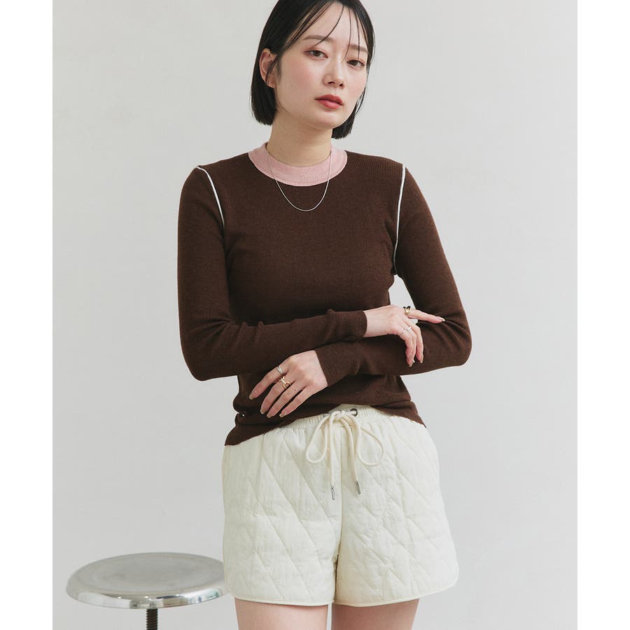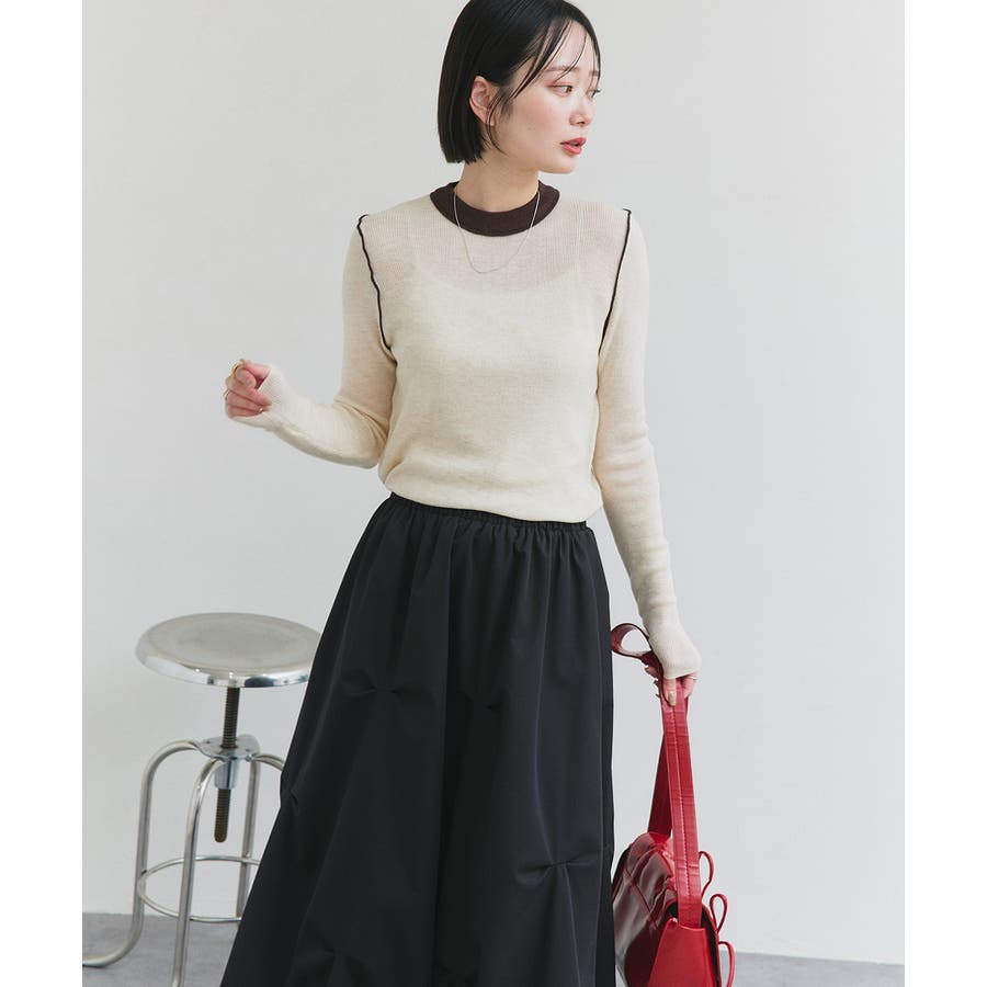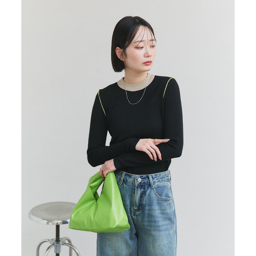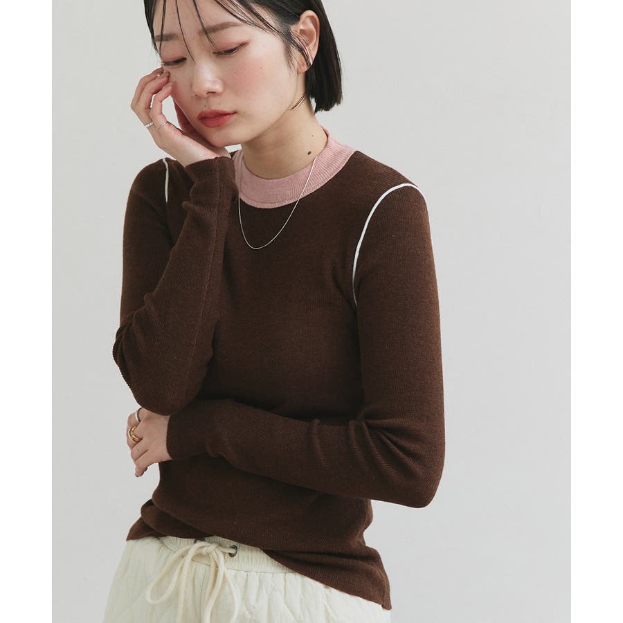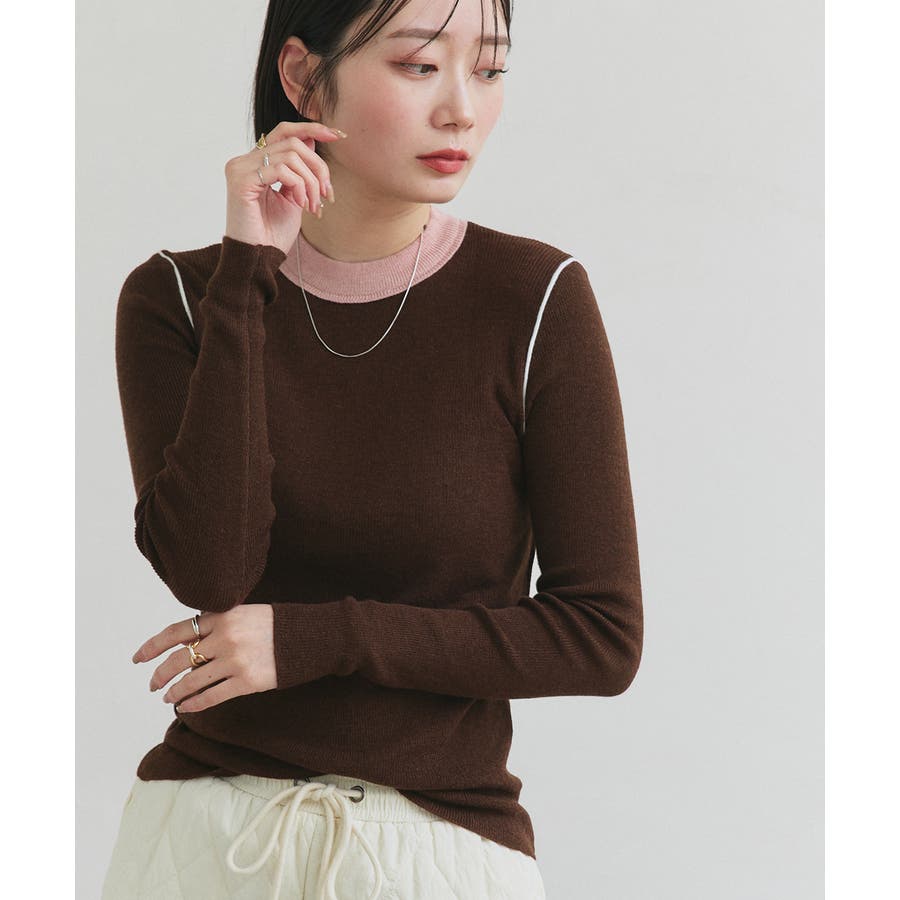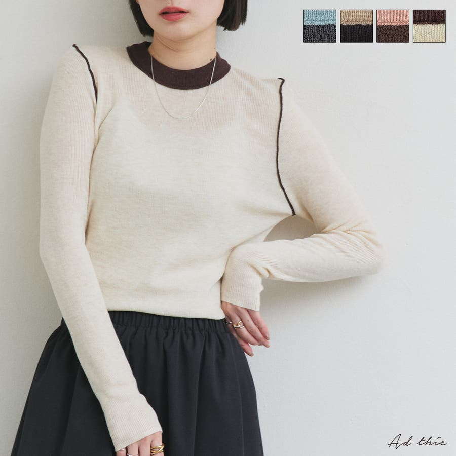 伸縮性のある着心地の良いニットで、太めの配色切り替えがトレンド感ある1着。