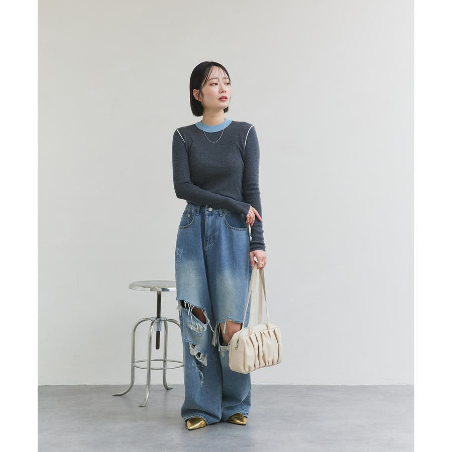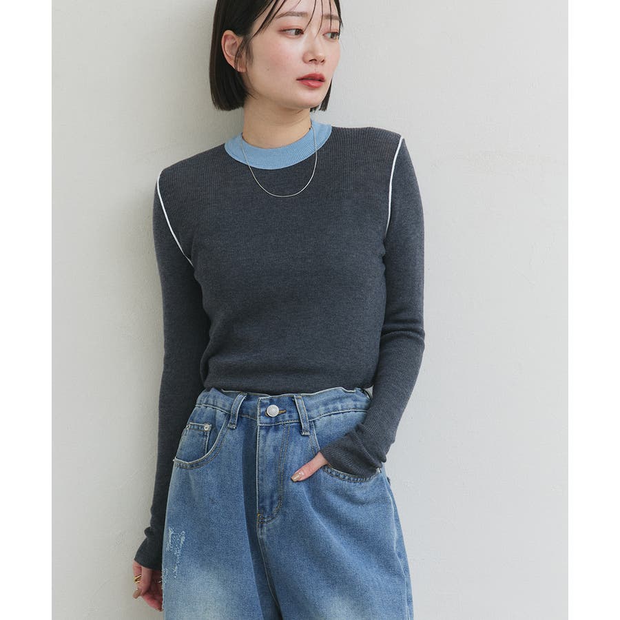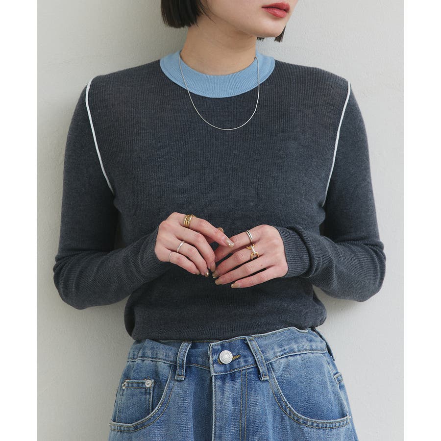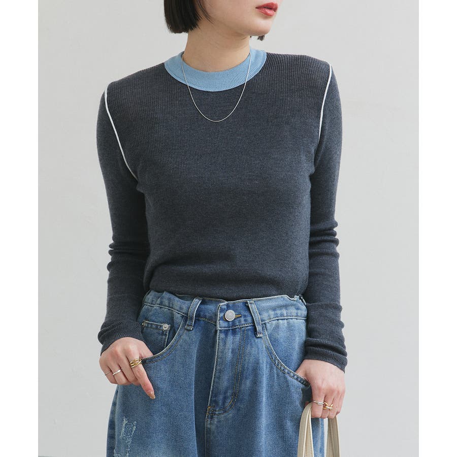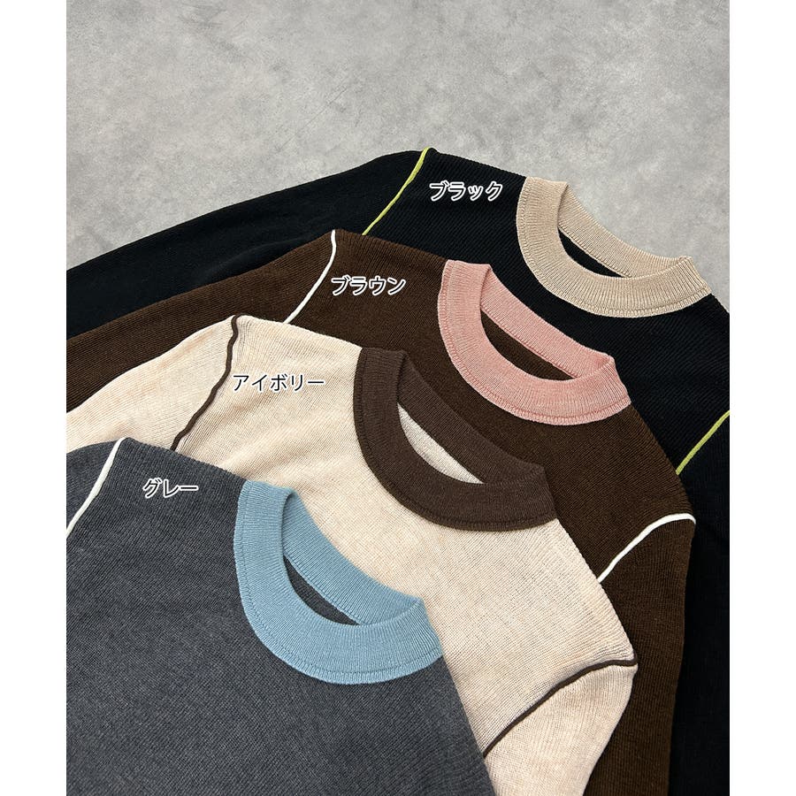秋 秋コーデ 秋ファッション 秋服 夏 夏コーデ 夏ファッション 夏服 カジュアル カジュアルコーデ 大人 大人カジュアル オフィスカジュアル オフィス オフィスファッション オフィススタイル 韓国 韓国ファッション 韓国コーデ プチプラ プチプラファッション レディース Y2K 量産型 キレイめ 綺麗め きれい きちんと 長袖 長袖トップス 長袖ニット ニット ニットトップス セーター ニットプルオーバー プルオーバー 春ニット 薄手ニット 配色 切替 切り替え ライン カラフル 配色切り替え クルーネック グレー ブラック 黒 ブラウン アイボリー