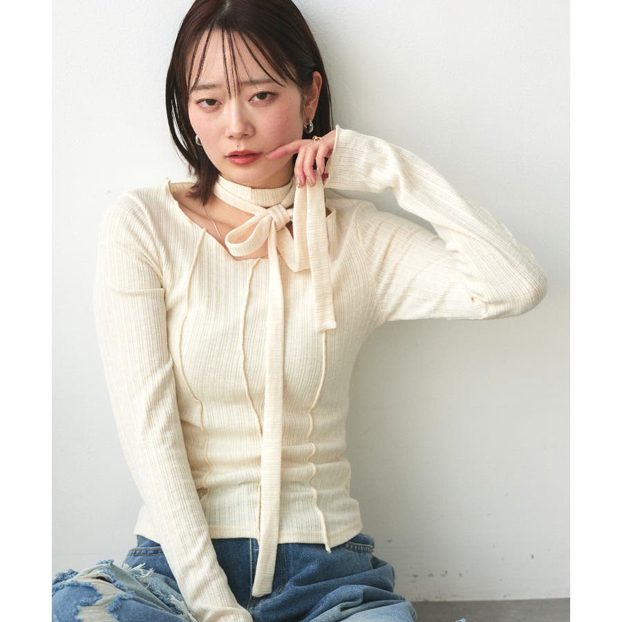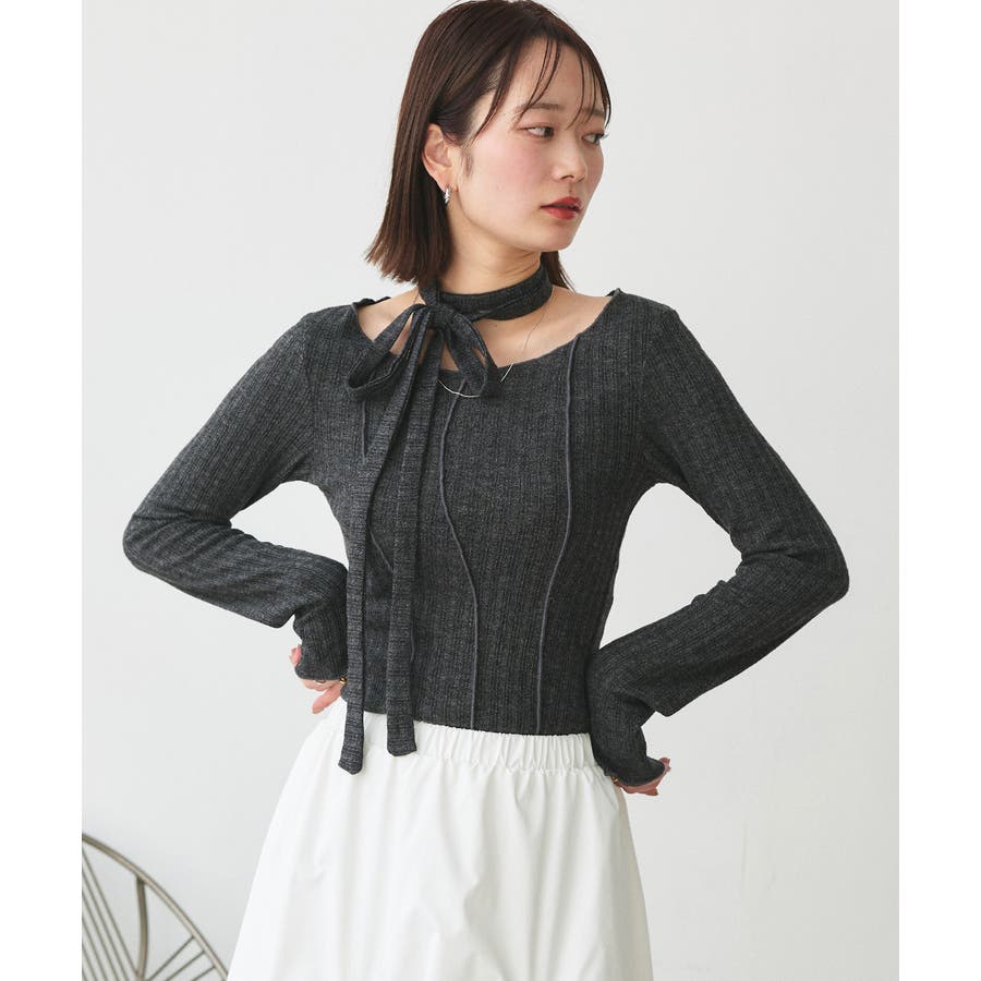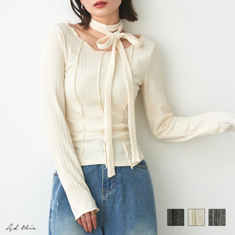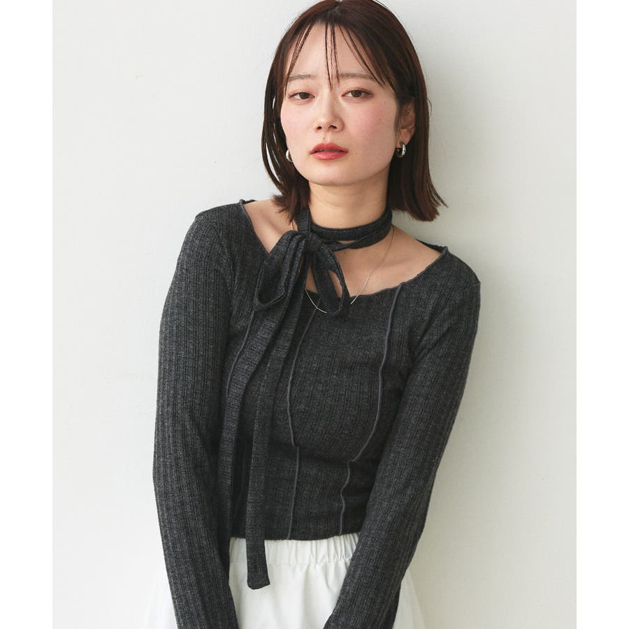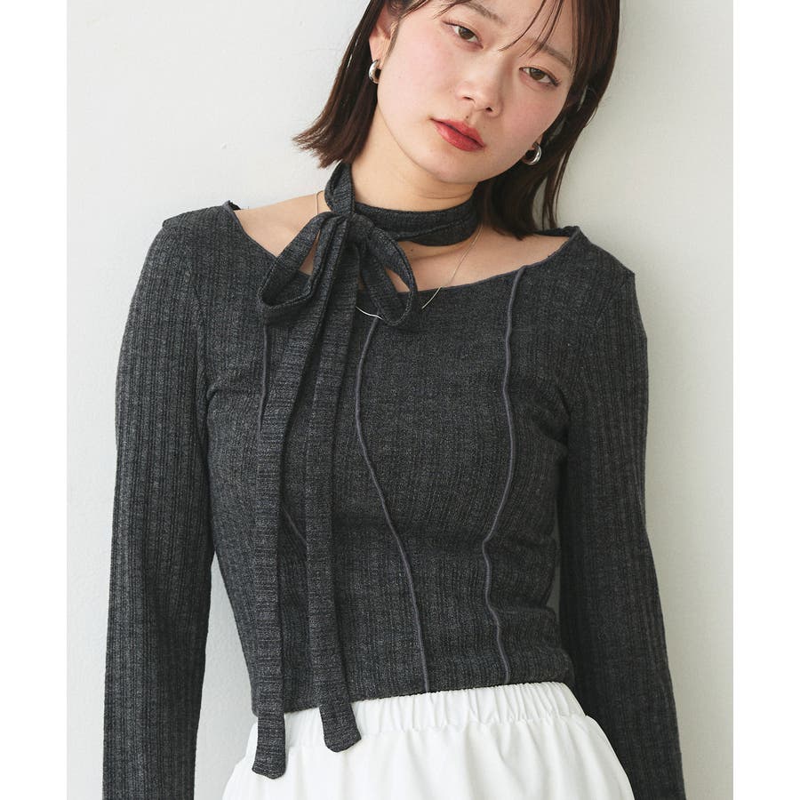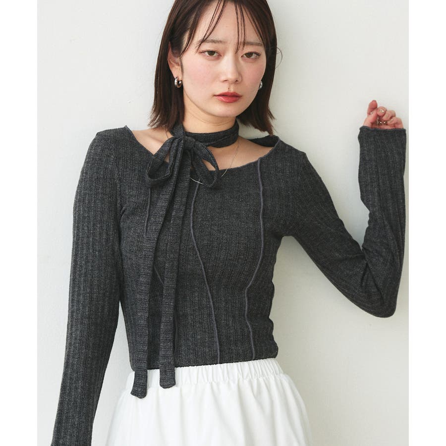 秋 秋コーデ 秋ファッション 秋服 夏 夏コーデ 夏ファッション 夏服 カジュアル カジュアルコーデ 大人 大人カジュアル オフィスカジュアル オフィス オフィスファッション オフィススタイル 韓国 韓国ファッション 韓国コーデ プチプラ プチプラファッション レディース Y2K 量産型 キレイめ 綺麗め きれい きちんと 長袖 長袖トップス アシンメトリー アシメ アシメトップス ニット リブニット リブトップス メロー チョーカー リボン タイ マルチウェイ オフホワイト 白 グレー ブラック 黒