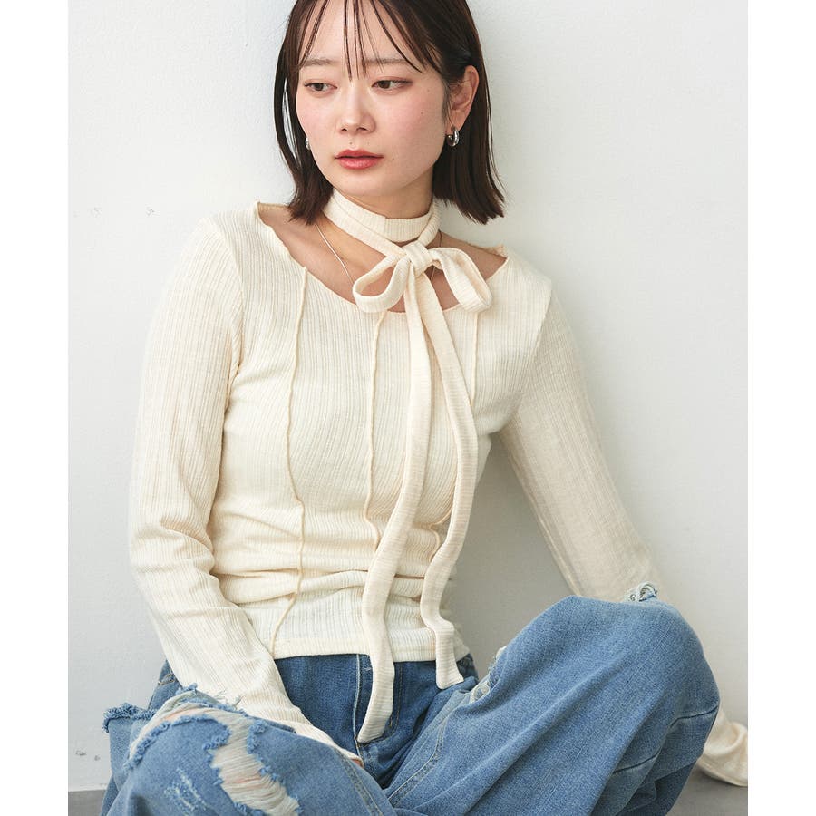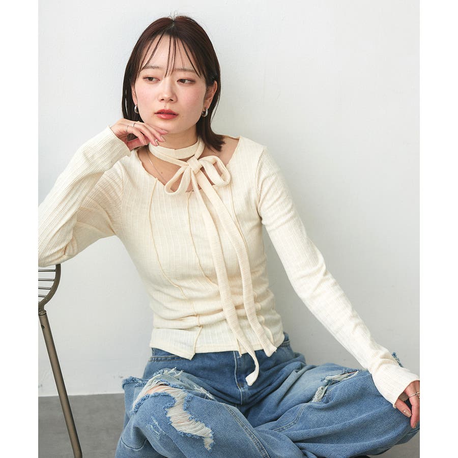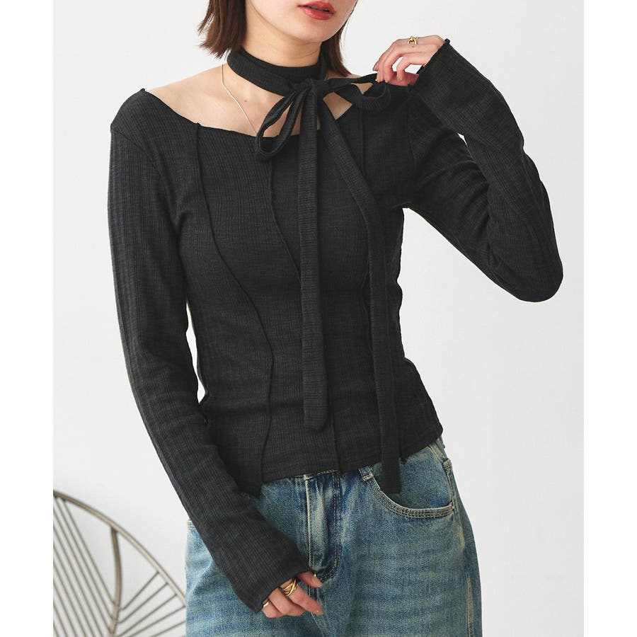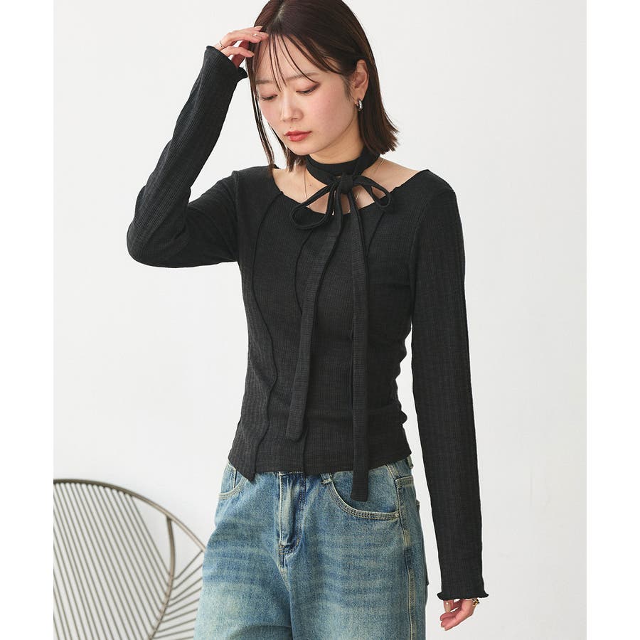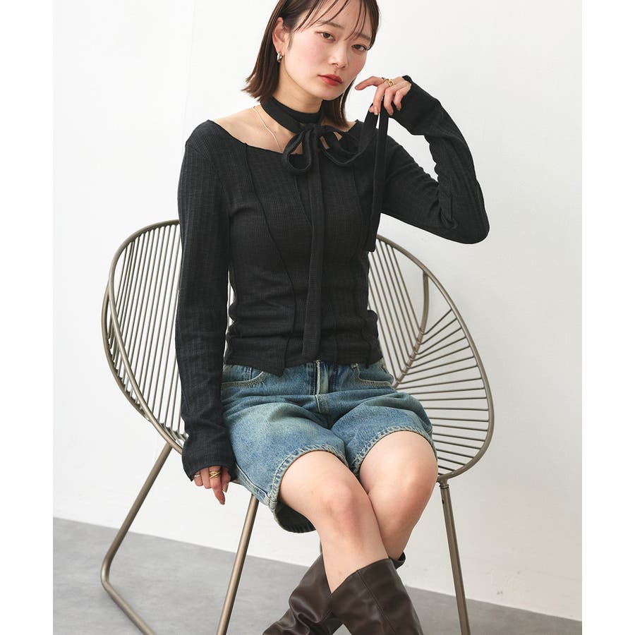 秋 秋コーデ 秋ファッション 秋服 夏 夏コーデ 夏ファッション 夏服 カジュアル カジュアルコーデ 大人 大人カジュアル オフィスカジュアル オフィス オフィスファッション オフィススタイル 韓国 韓国ファッション 韓国コーデ プチプラ プチプラファッション レディース Y2K 量産型 キレイめ 綺麗め きれい きちんと 長袖 長袖トップス アシンメトリー アシメ アシメトップス ニット リブニット リブトップス メロー チョーカー リボン タイ マルチウェイ オフホワイト 白 グレー ブラック 黒
