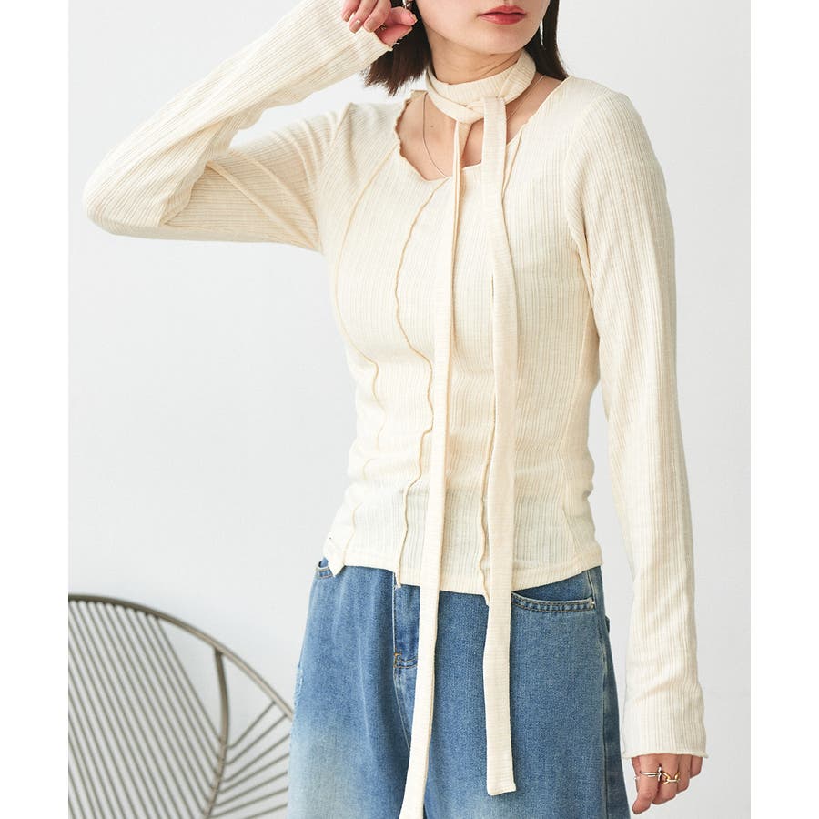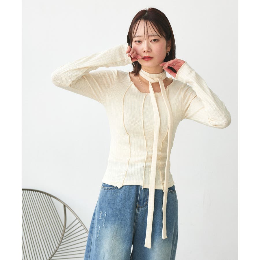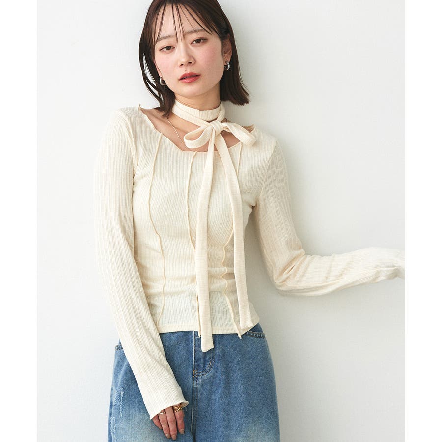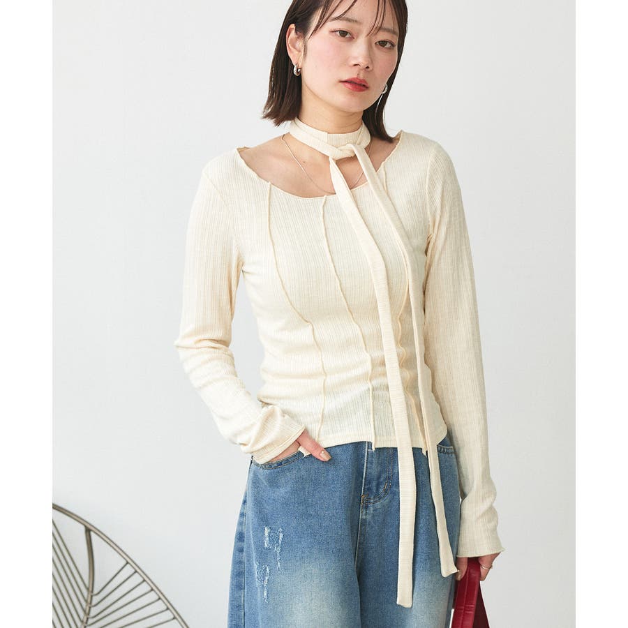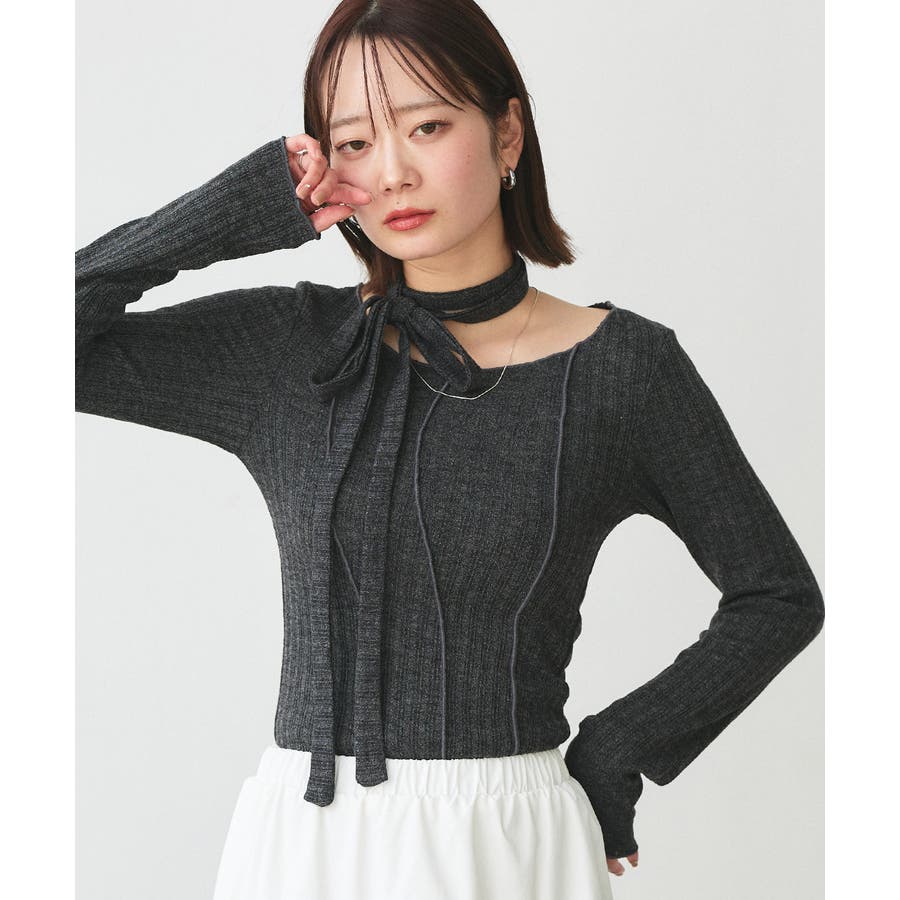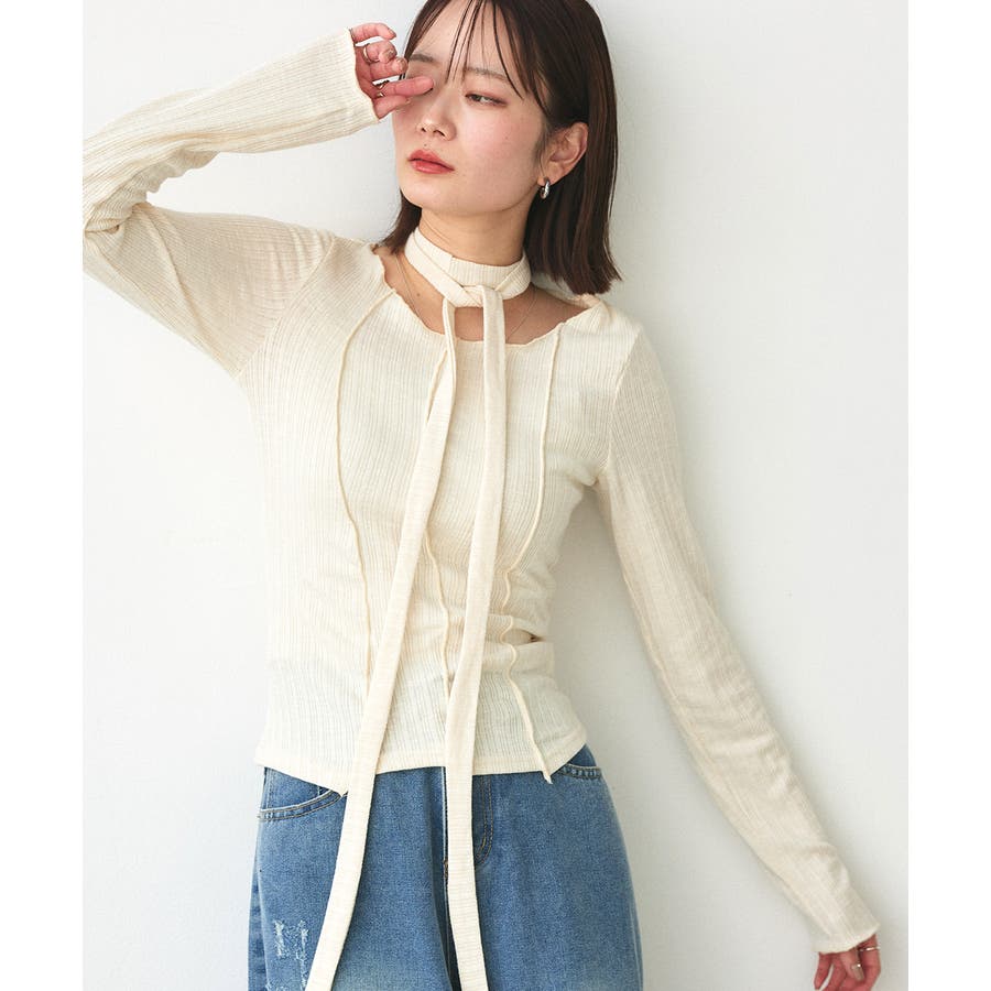 秋 秋コーデ 秋ファッション 秋服 夏 夏コーデ 夏ファッション 夏服 カジュアル カジュアルコーデ 大人 大人カジュアル オフィスカジュアル オフィス オフィスファッション オフィススタイル 韓国 韓国ファッション 韓国コーデ プチプラ プチプラファッション レディース Y2K 量産型 キレイめ 綺麗め きれい きちんと 長袖 長袖トップス アシンメトリー アシメ アシメトップス ニット リブニット リブトップス メロー チョーカー リボン タイ マルチウェイ オフホワイト 白 グレー ブラック 黒