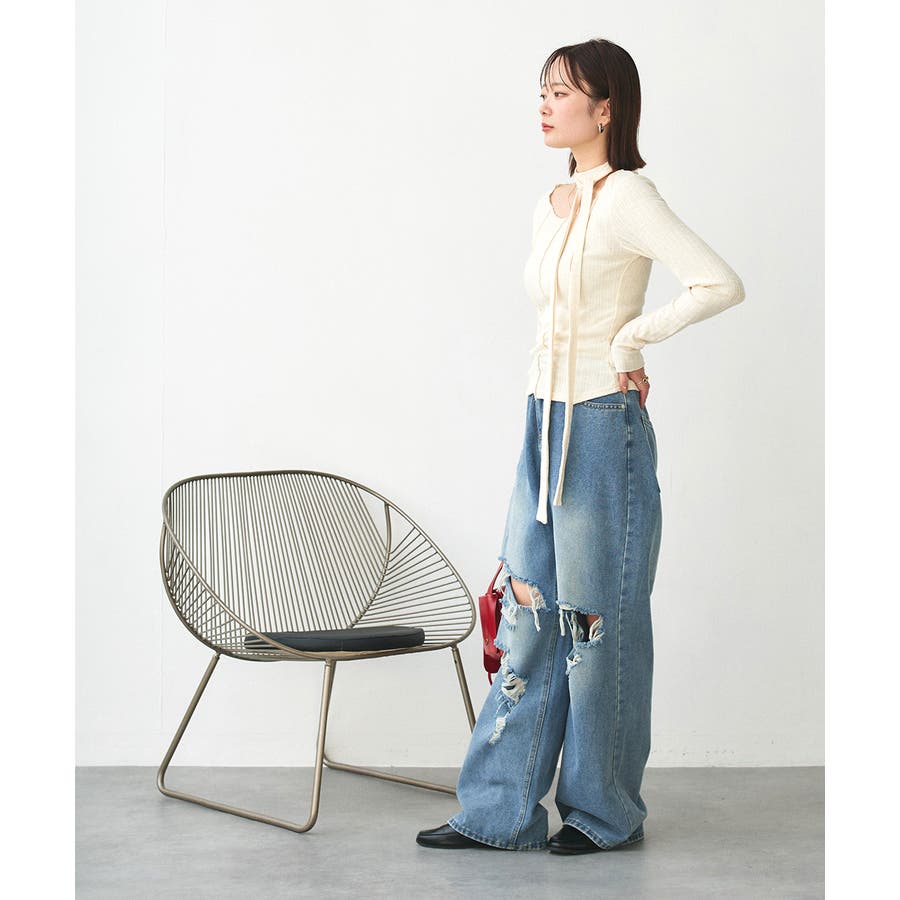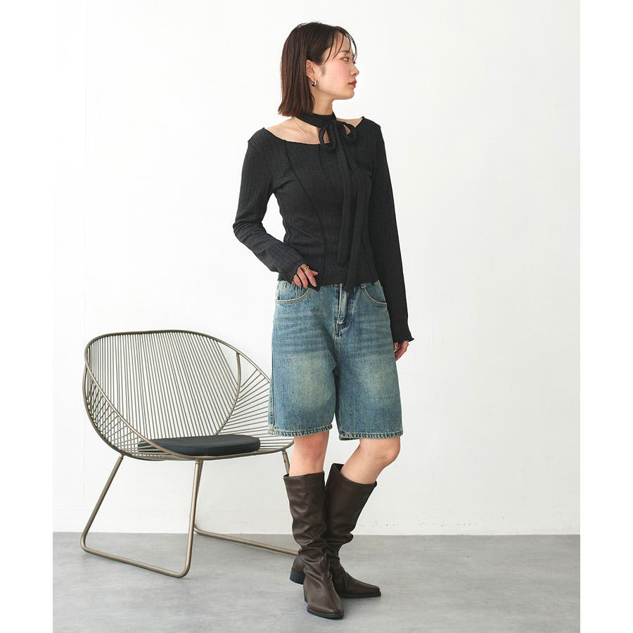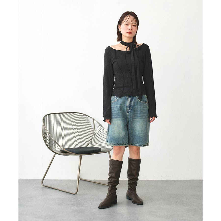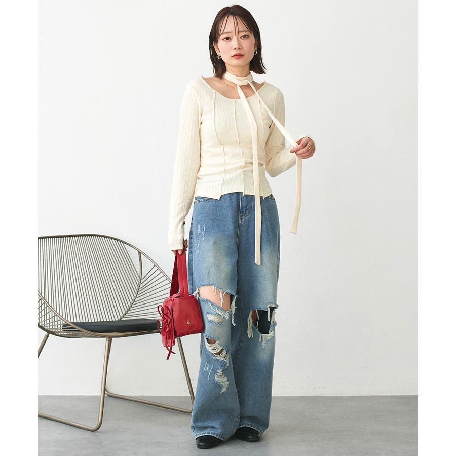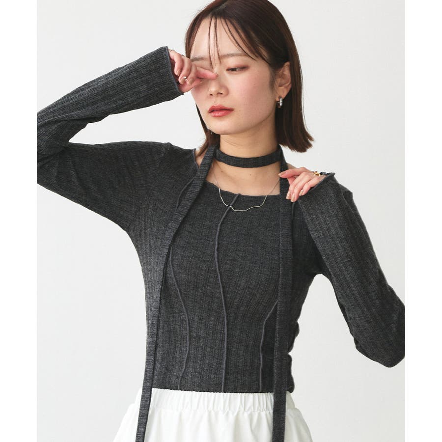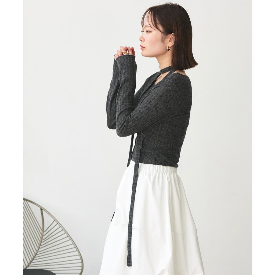 秋 秋コーデ 秋ファッション 秋服 夏 夏コーデ 夏ファッション 夏服 カジュアル カジュアルコーデ 大人 大人カジュアル オフィスカジュアル オフィス オフィスファッション オフィススタイル 韓国 韓国ファッション 韓国コーデ プチプラ プチプラファッション レディース Y2K 量産型 キレイめ 綺麗め きれい きちんと 長袖 長袖トップス アシンメトリー アシメ アシメトップス ニット リブニット リブトップス メロー チョーカー リボン タイ マルチウェイ オフホワイト 白 グレー ブラック 黒