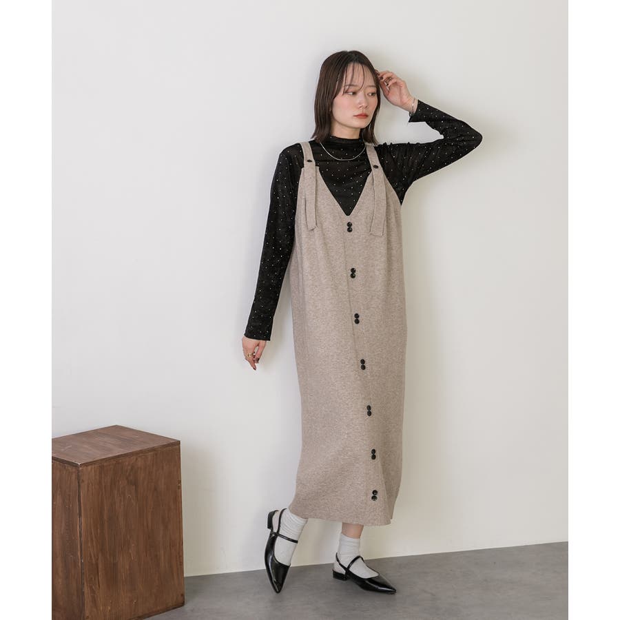 春 春コーデ 春ファッション 春服 冬 冬コーデ 冬ファッション 冬服 カジュアル カジュアルコーデ 大人 大人カジュアル オフィスカジュアル オフィス オフィスファッション オフィススタイル 韓国 韓国ファッション 韓国コーデ プチプラ プチプラファッション レディース Y2K 量産型 キレイめ 綺麗め きれい きちんと ニット ワンピース キャミソール キャミ キャミソールワンピース キャミワンピ ワンピ ニットワンピ Vネック レイヤー レイヤード 重ね着 グレー ブラック 黒 ブラウン ベージュ
