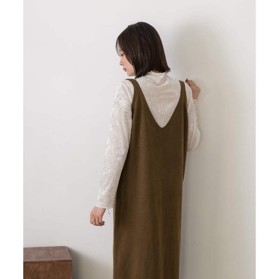 サロペットのような肩ストラップでカジュアル感もありつつ、すとんと落ち感のあるIラインシルエットで大人カジュアルな雰囲気に仕上げてくれるワンピース。