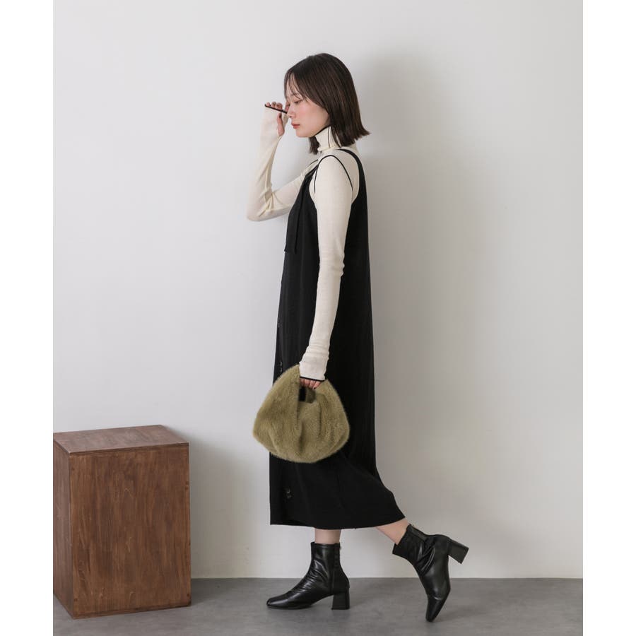 ハイネックなどのシンプルなトップスと合わせて、ニットキャップやファーバッグなど小物をアクセントにしたシンプルな秋冬コーデがおすすめです。