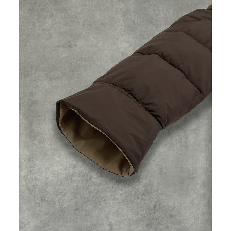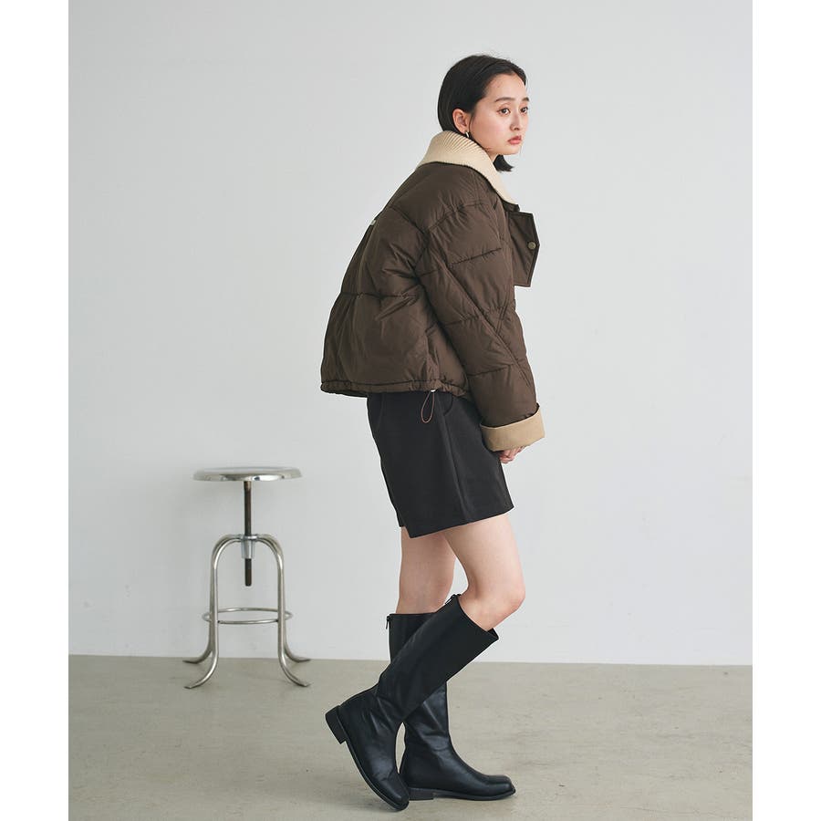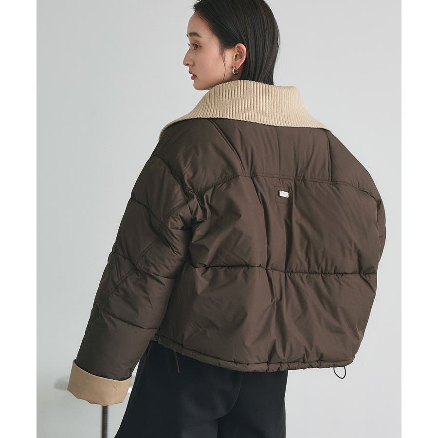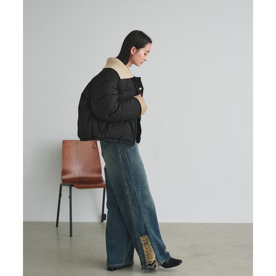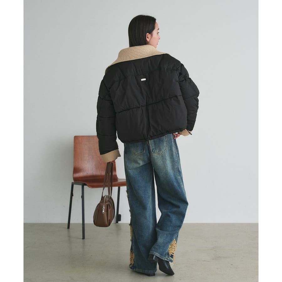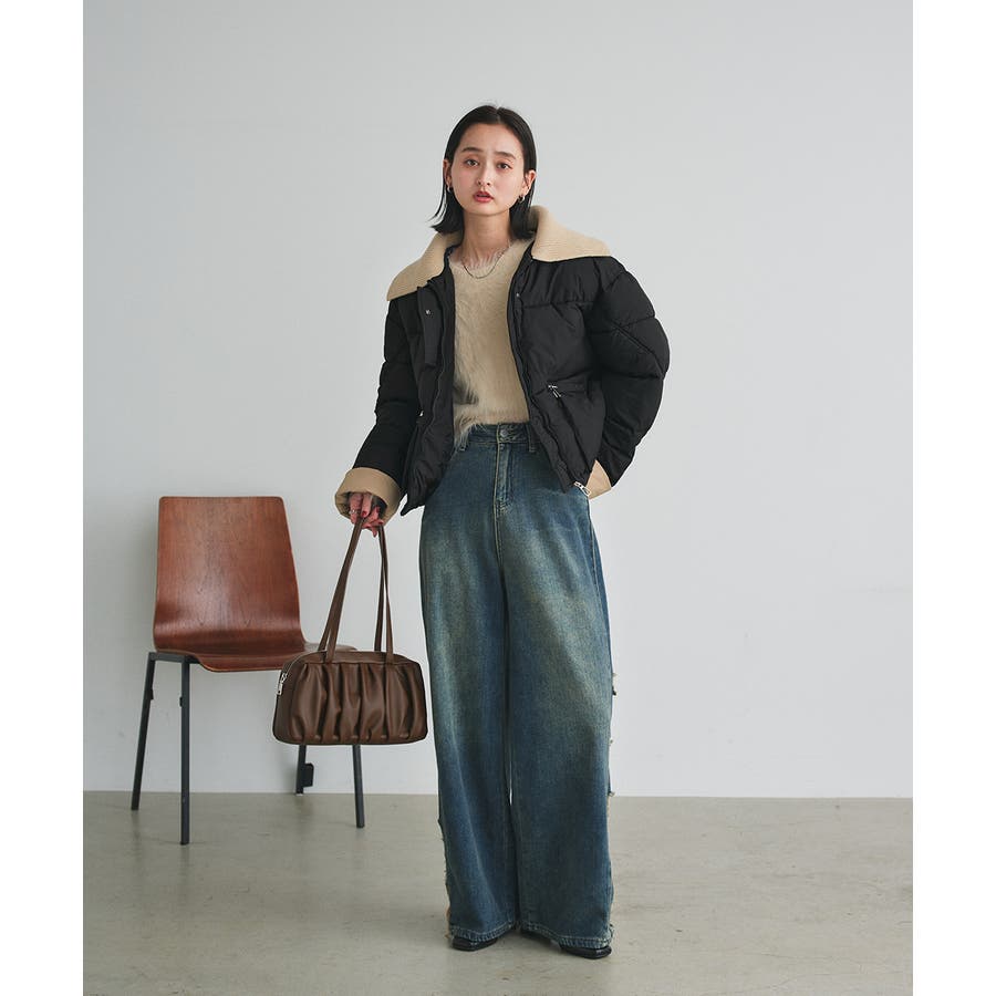 大きな襟とバイカラーデザインがポイントになる、あたたか中綿ブルゾン