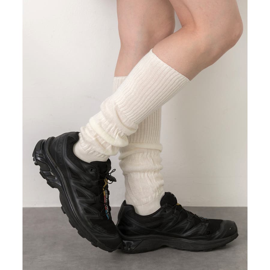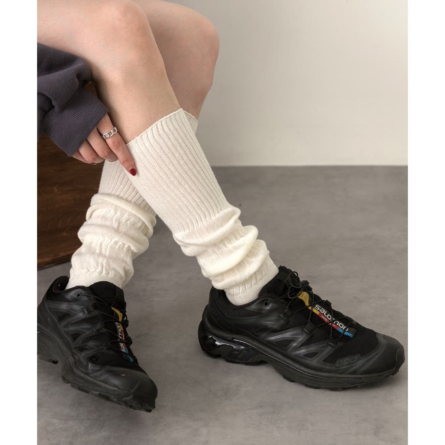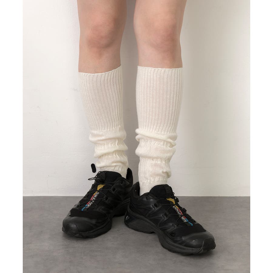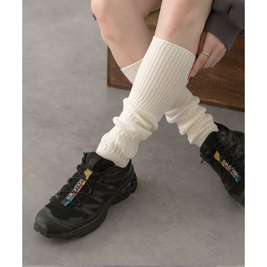 ショートボトムと相性抜群の長め丈のソックス、くしゅくしゅルーズなシルエットで足のラインを拾いにくいので細見えも期待できそう!
