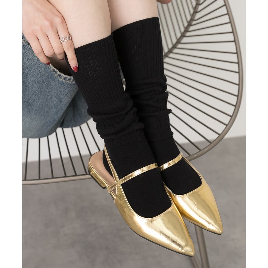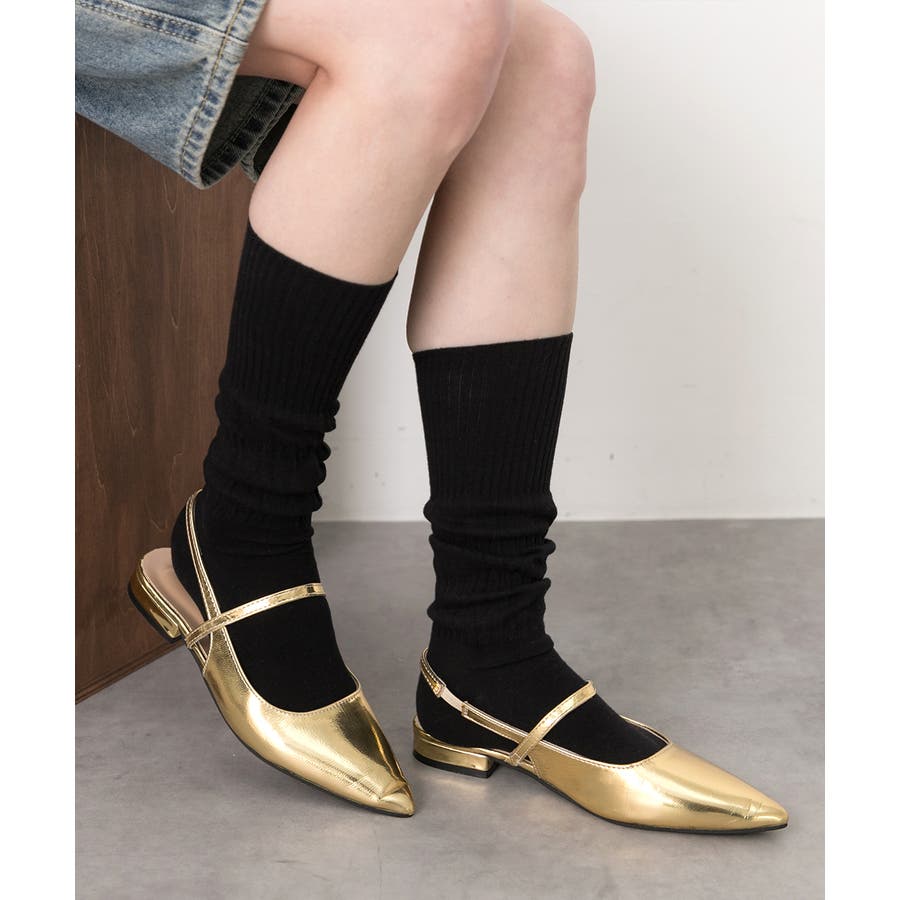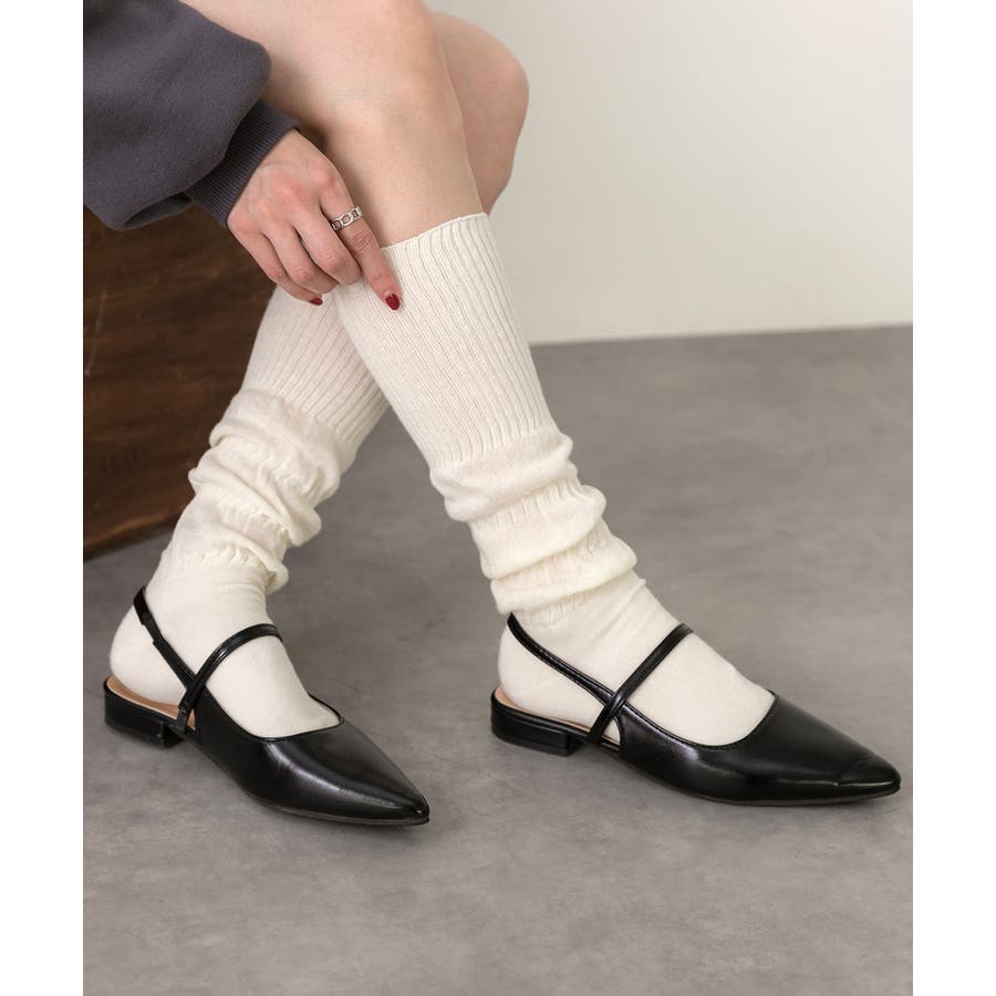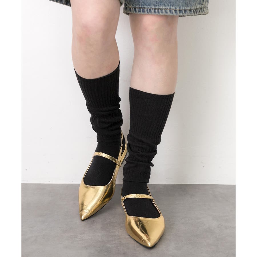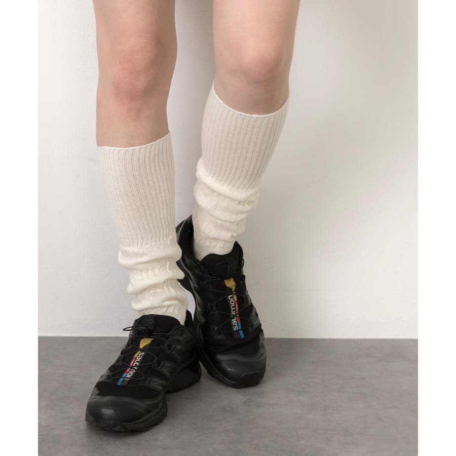 ショートボトムと相性抜群の長め丈のソックス、くしゅくしゅルーズなシルエットで足のラインを拾いにくいので細見えも期待できそう!