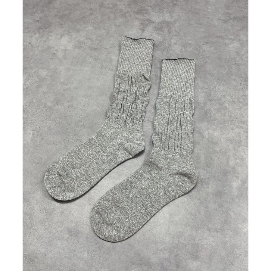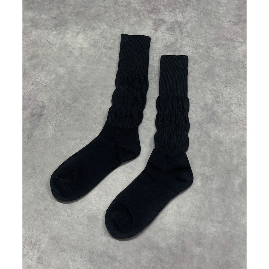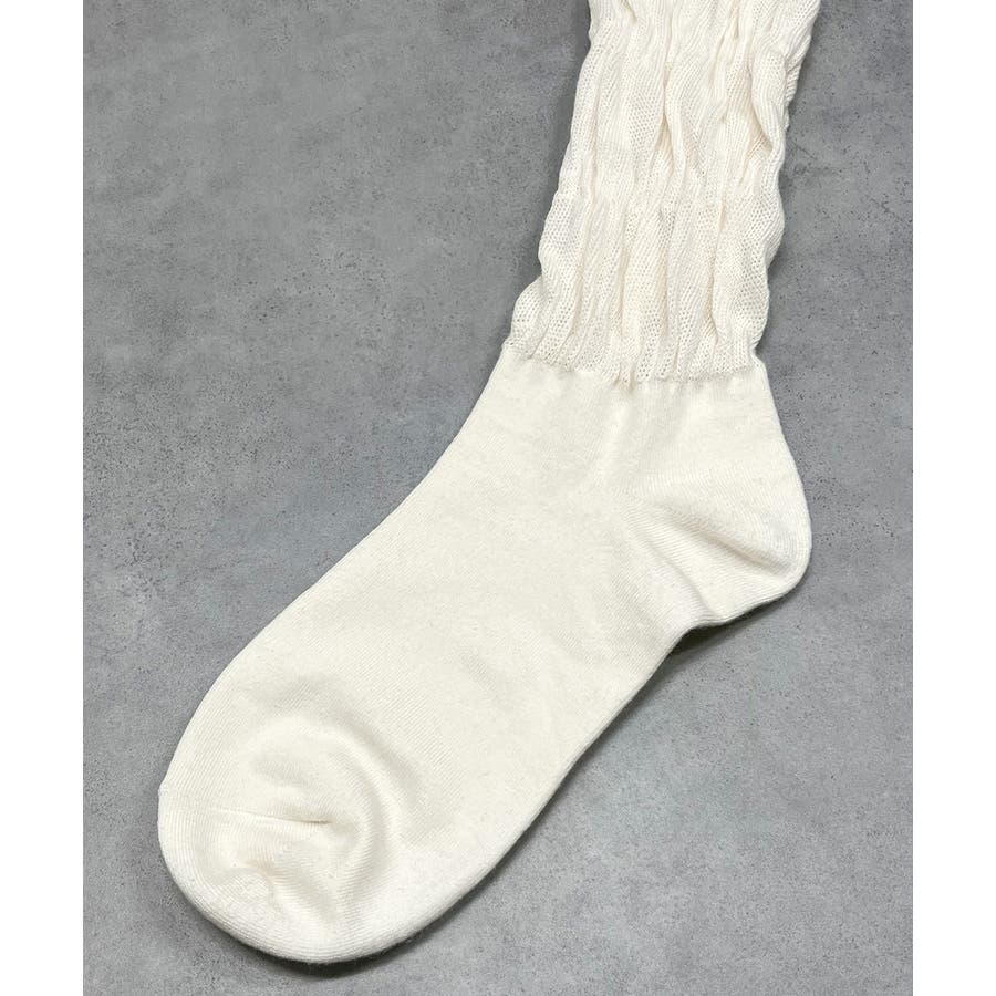 どんなスタイリングにも合わせやすいベーシックカラーの無地ソックスに、くしゅくしゅシルエットが足元のポイントになる1足