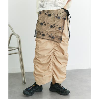 パンツにもスカートにも合わせられるレースラップスカート。
