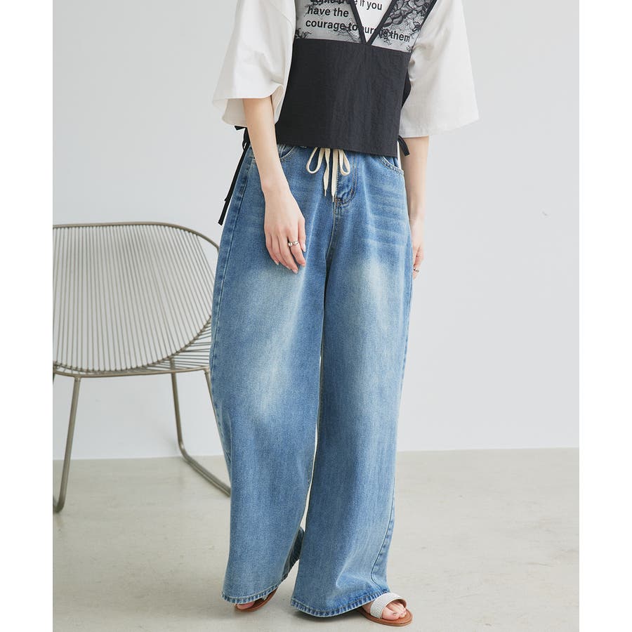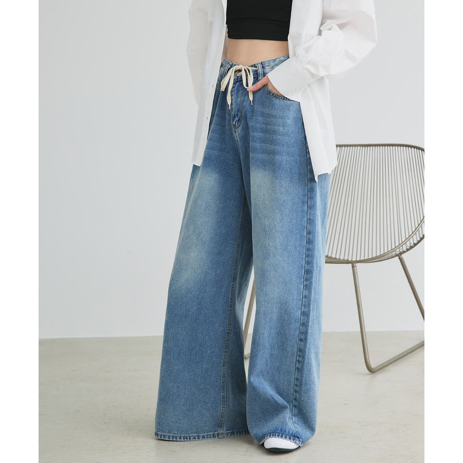 春 春コーデ 春ファッション 春服 夏 夏コーデ 夏ファッション 夏服 カジュアル カジュアルコーデ 大人 大人カジュアル オフィスカジュアル オフィス オフィスファッション オフィススタイル 韓国 韓国ファッション 韓国コーデ プチプラ プチプラファッション レディース Y2K 量産型 キレイめ 綺麗め きれい シンプル サイズ トールサイズ 10代 20代 30代 40代 デニム ジーンズ ウォッシュ 加工デニム ウォッシュ加工 グラデーション 色落ち ワイドデニム ワイド ワイドシルエット ゆったり ウエストリボン リボン ワンポイント 古着 ヴィンテージ風 ヴィンテージライク ストレート ハイウエスト 楽ちん 楽 Mサイズ Lサイズ ブルー