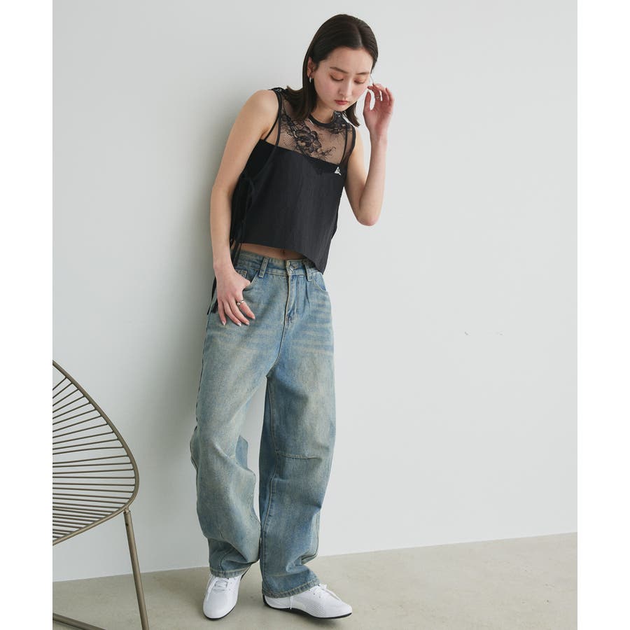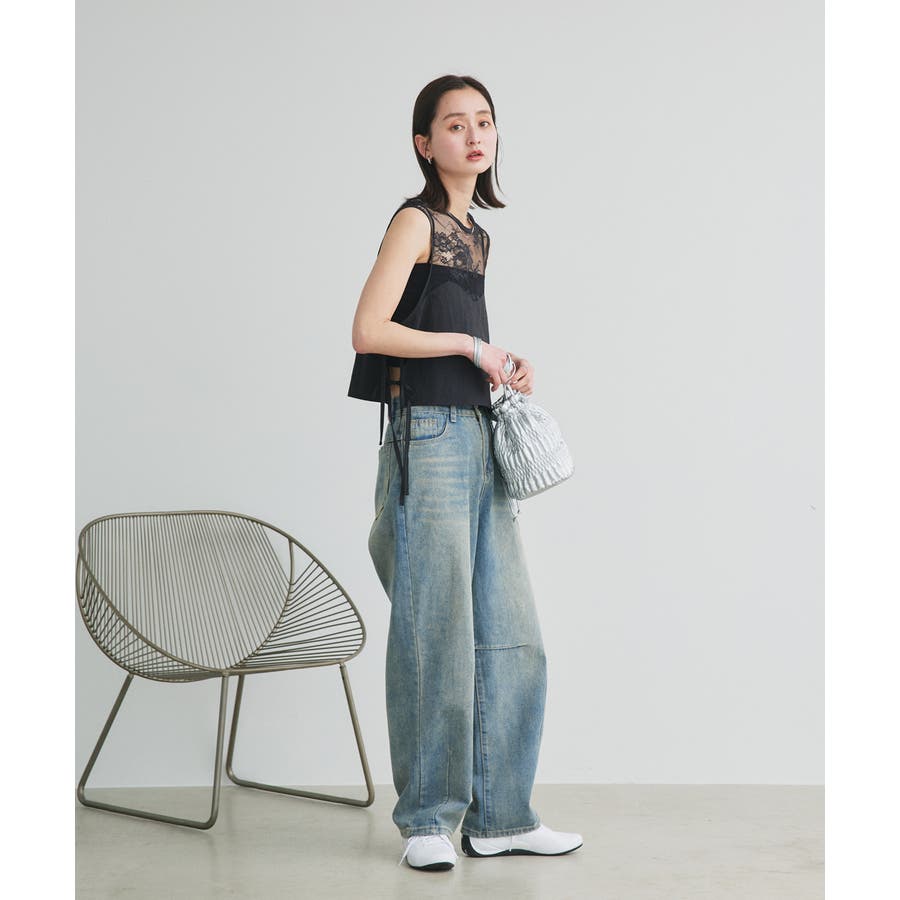 ルーズシルエットカーブデニムパンツ